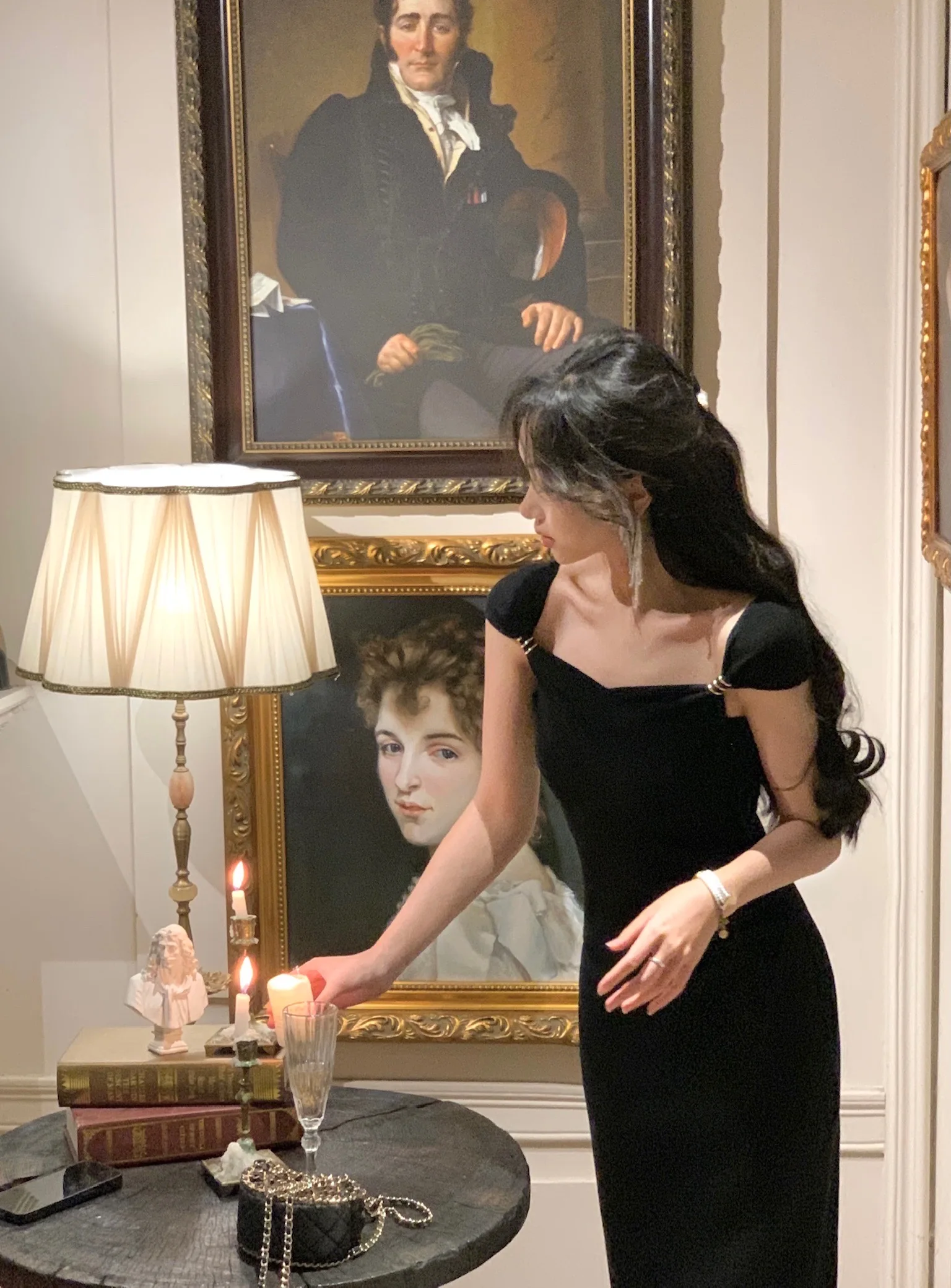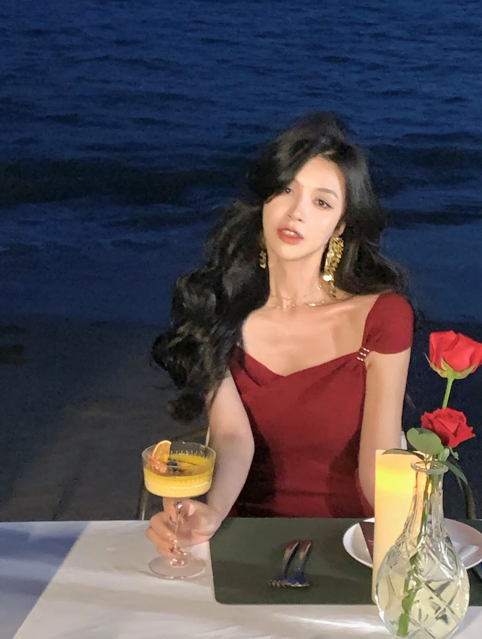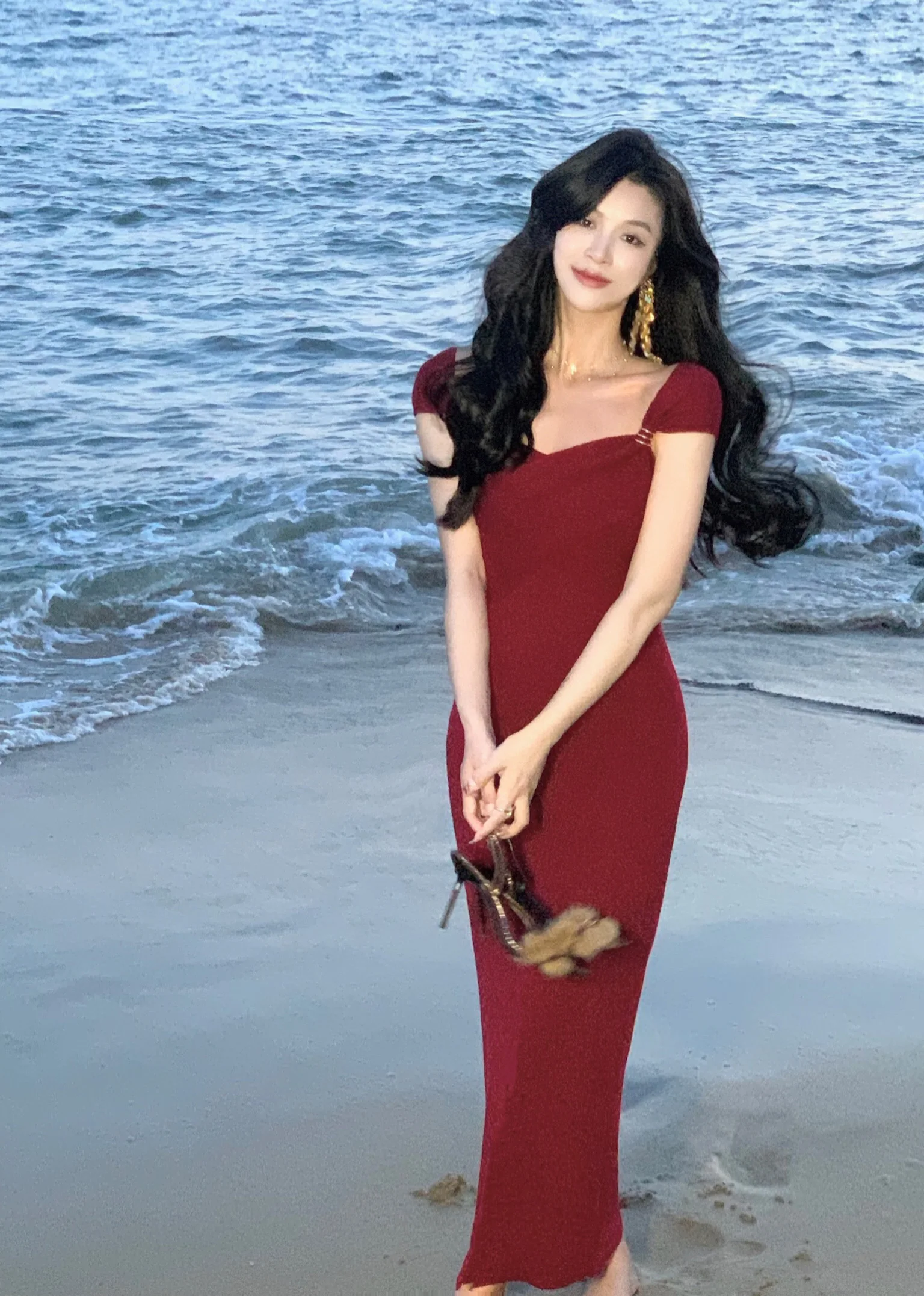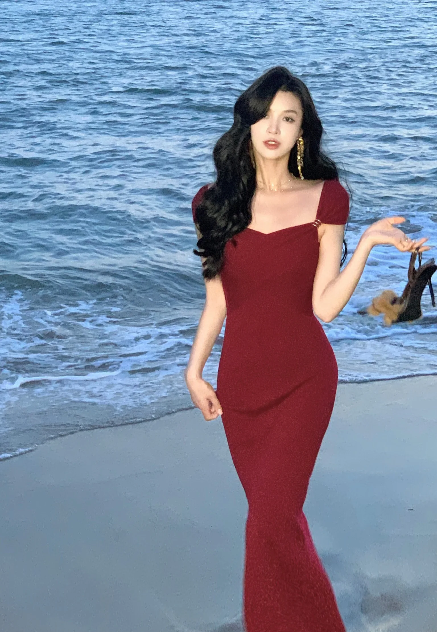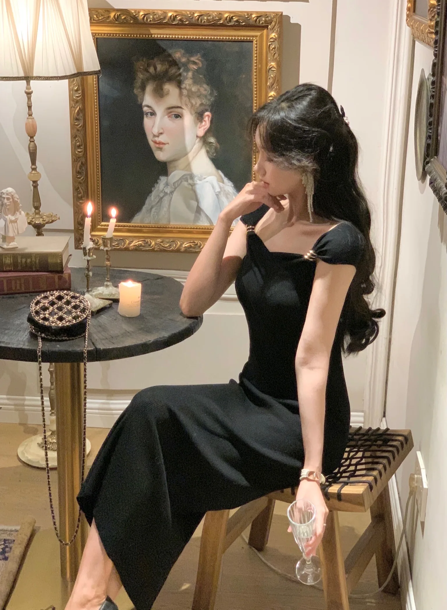Neckline: slash neck