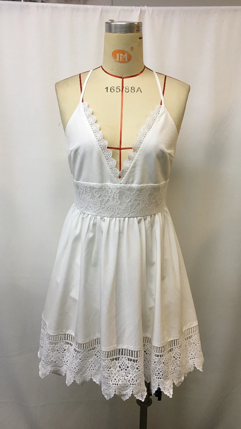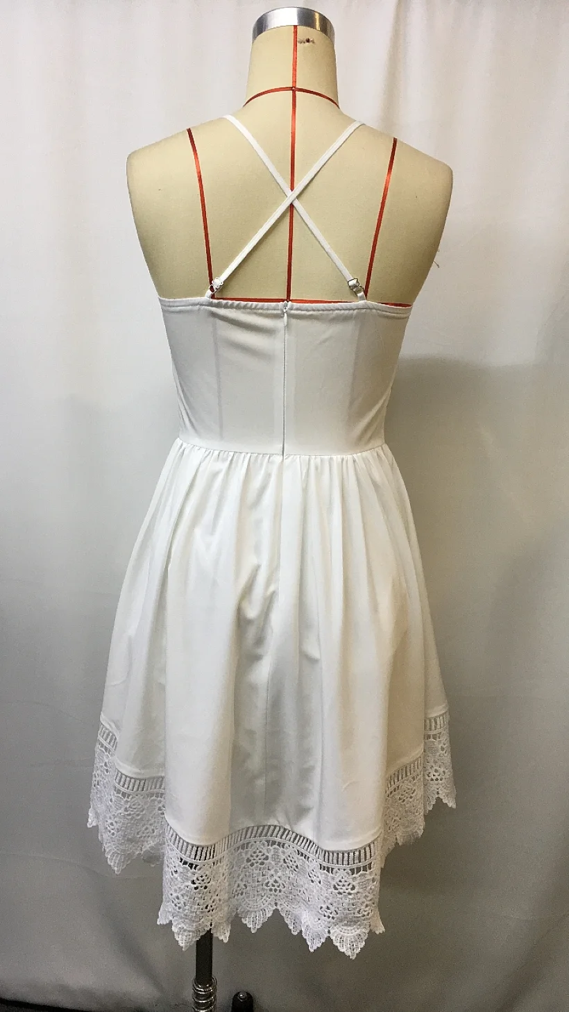 LIZAKOSHT - Elegant Bohemian White Lace Dress V Neck Suspender Midi Bridal Guest Party Wear Summer Wedding Reception Formal Evening Gow