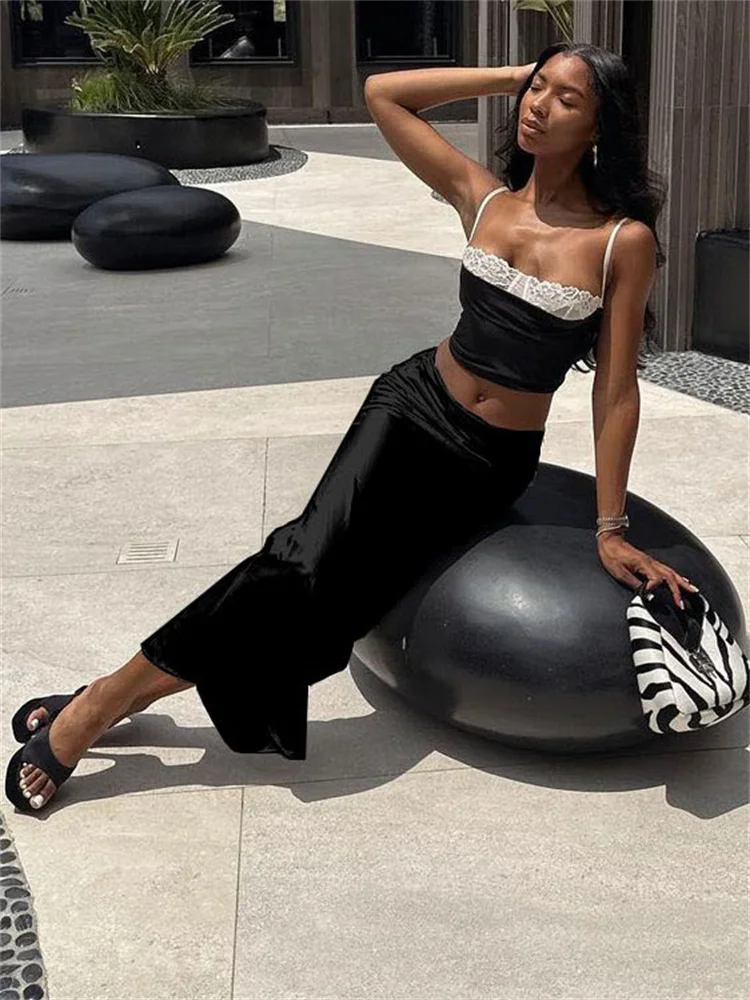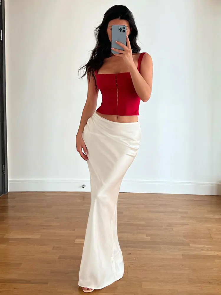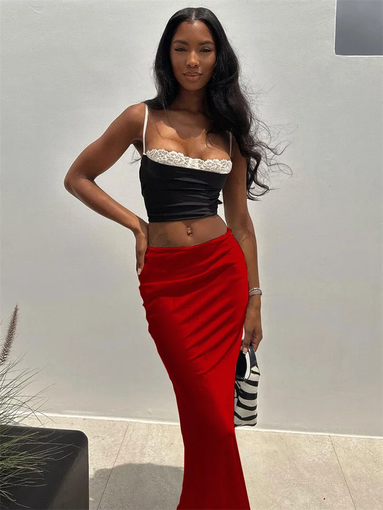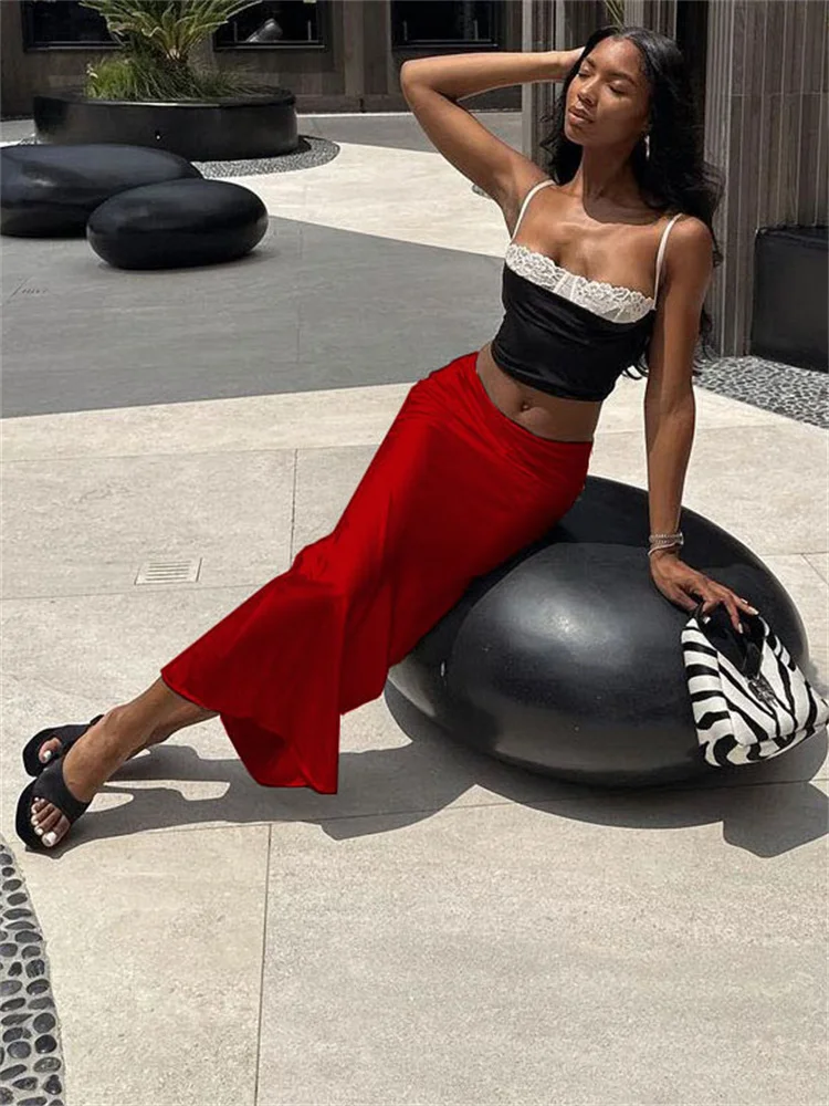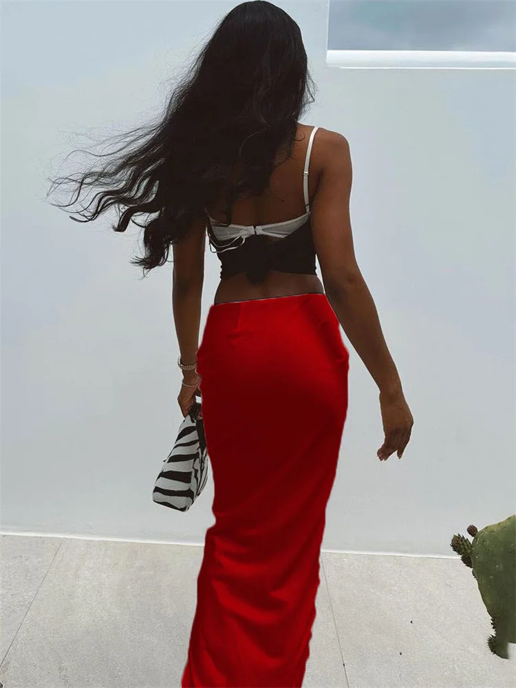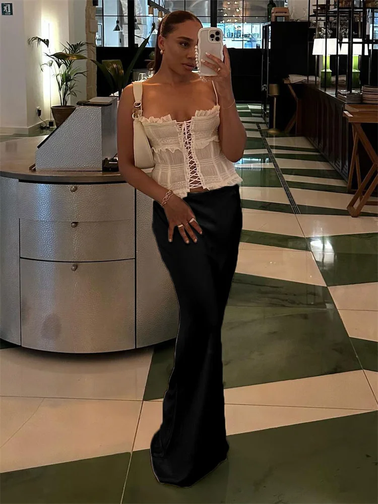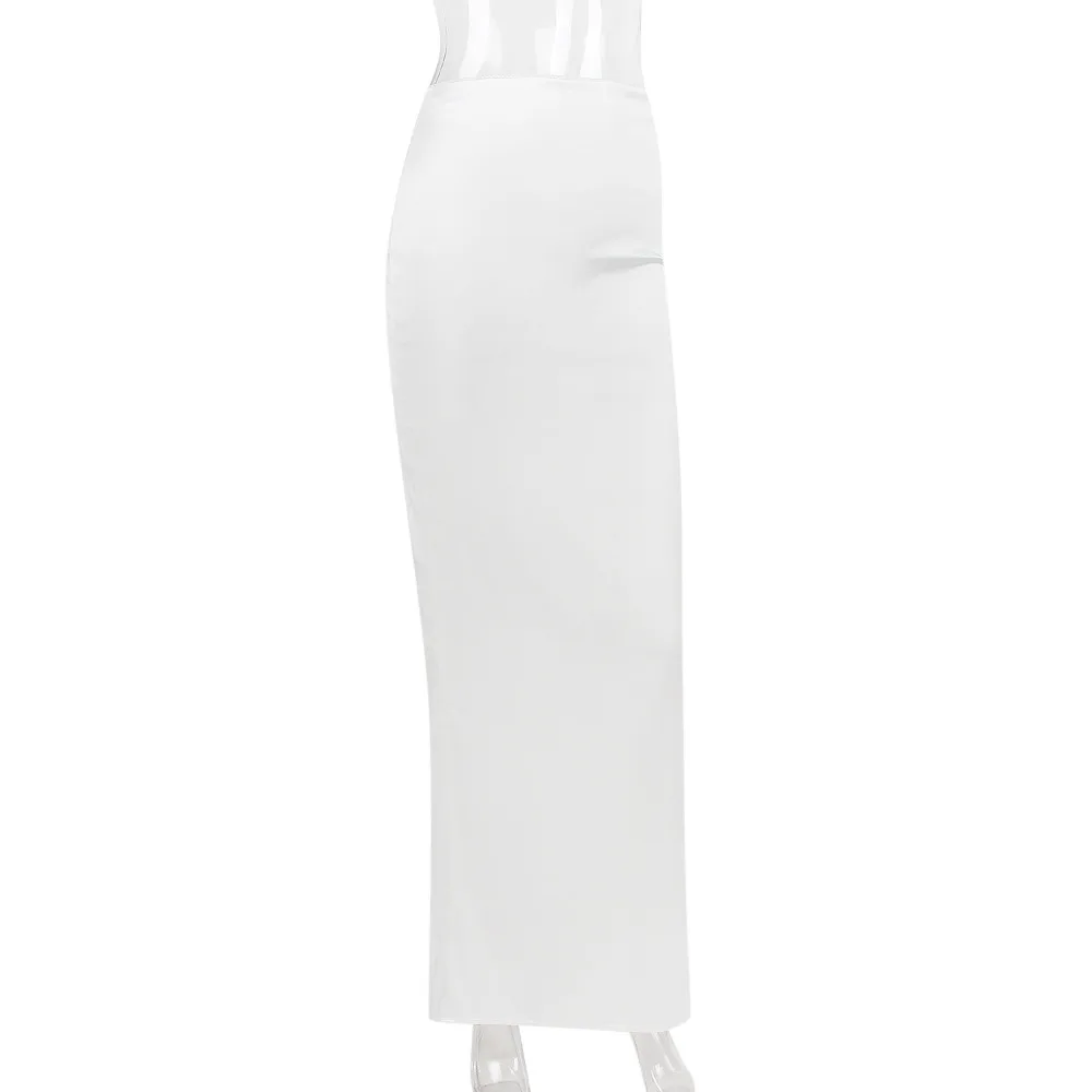 LIZAKOSHT - Elegant Casual Long Skirt Patchwork For Women Slim Party Gown Skirt Summer New High Waist Outfits White Y2k Skirt