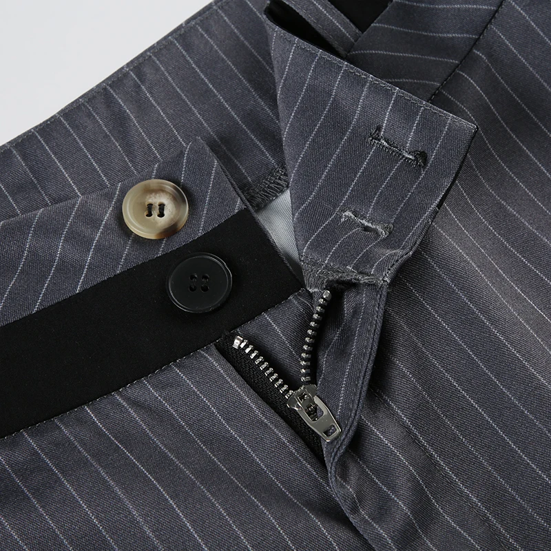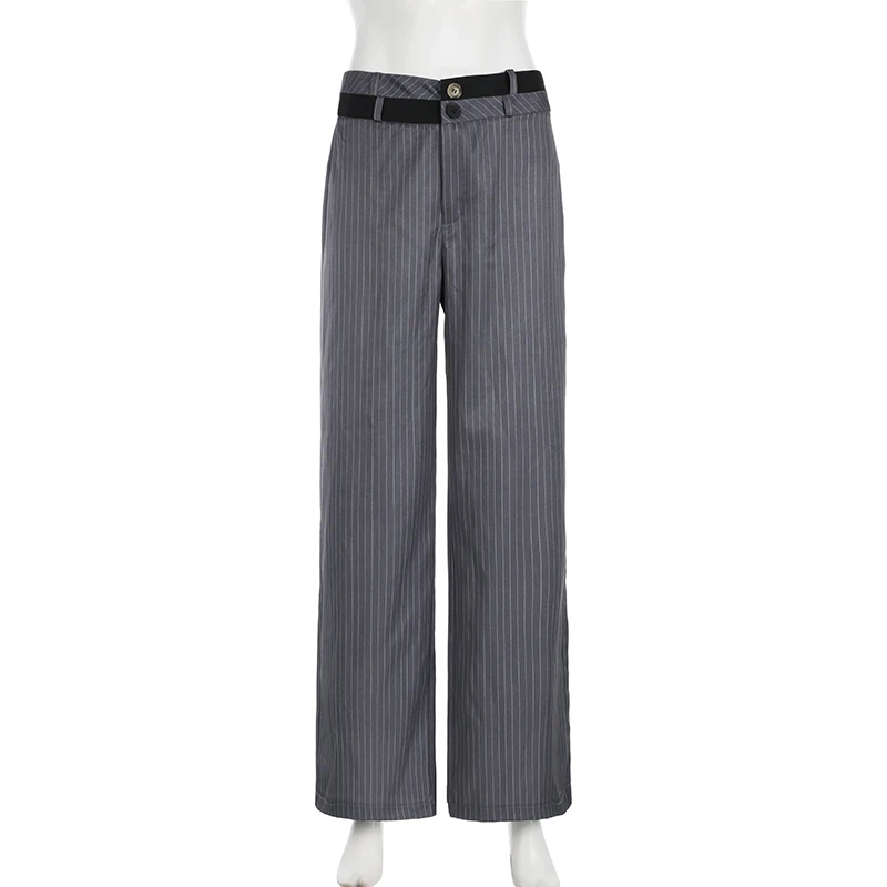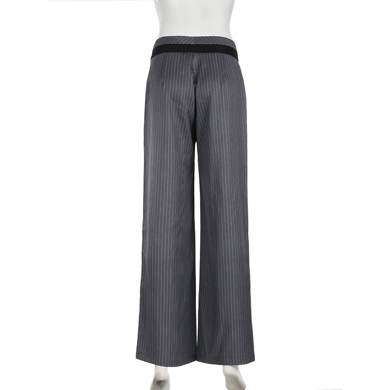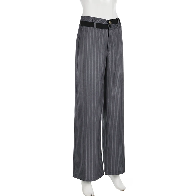 LIZAKOSHT - Elegant Fashion Striped Straight Pants Office Ladies Casual Loose Patchwork Wiede Leg Pants Women 2024 Summer Streetwear