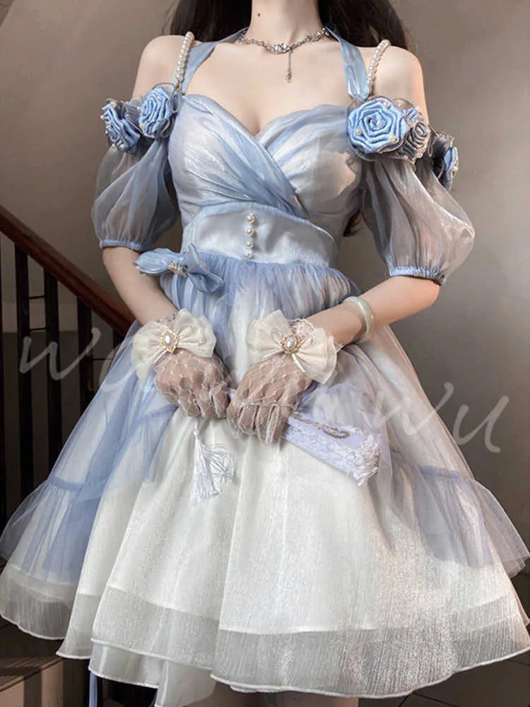 LIZAKOSHT - Elegant Gradient Blue Three-Dimensional Rose Lolita Dress Flower Wedding Birthday