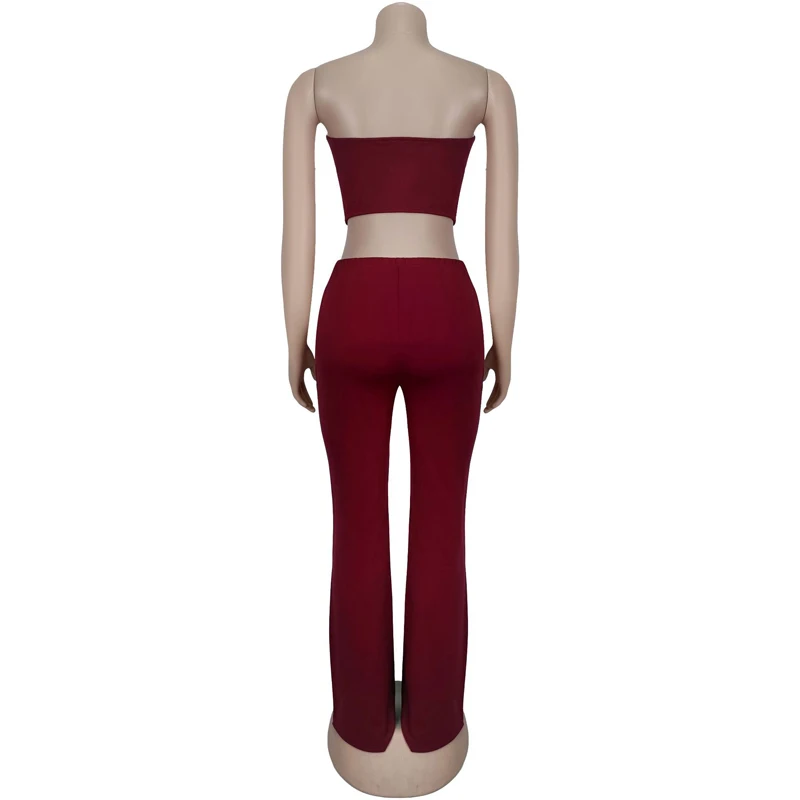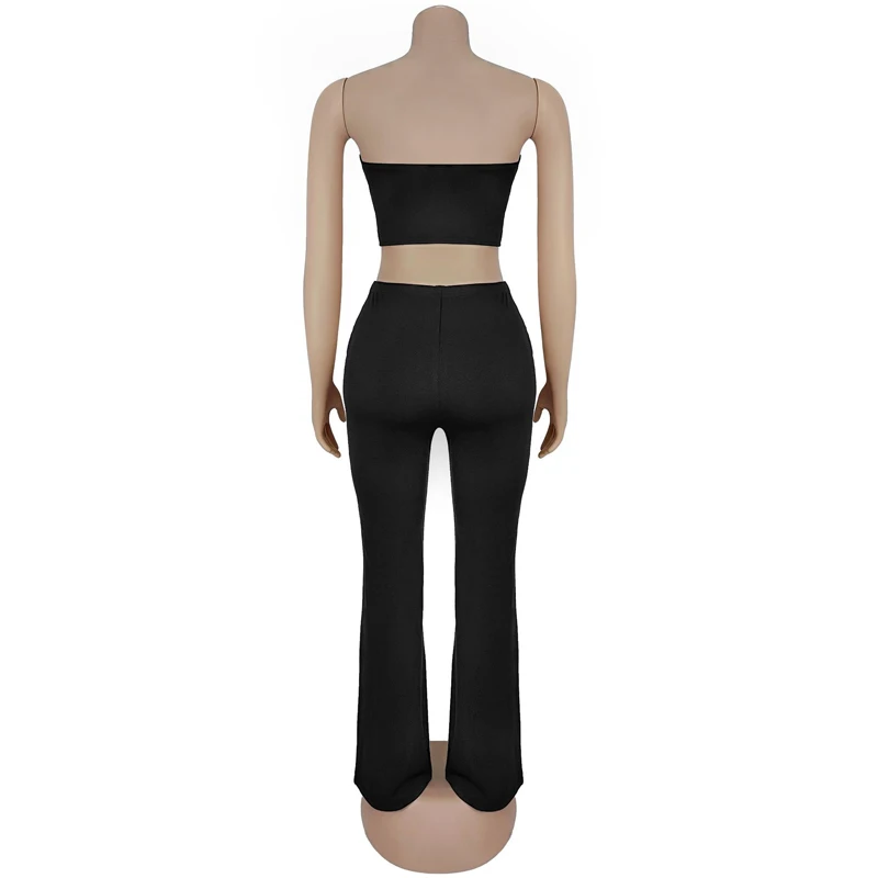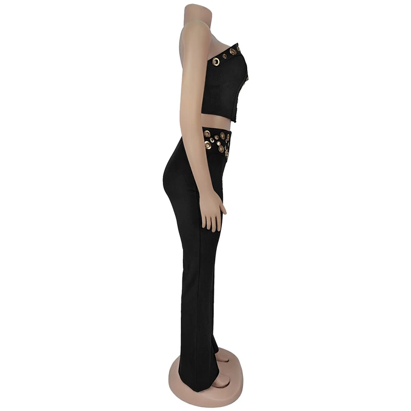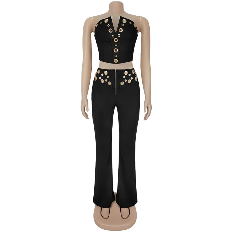 LIZAKOSHT  -  Elegant Hollow Out Patchwork Luxury 2 Piece Sets Woman Outfit Sleeveless Backless Crop Top and Pants Suit Female Party Clubwear