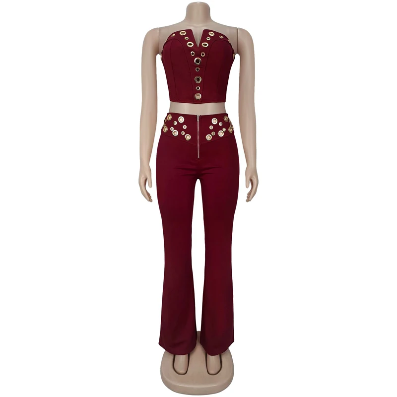 LIZAKOSHT - Elegant Hollow Out Patchwork Luxury 2 Piece Sets Woman Outfit Sleeveless Backless Crop Top and Pants Suit Female Party Clubwear