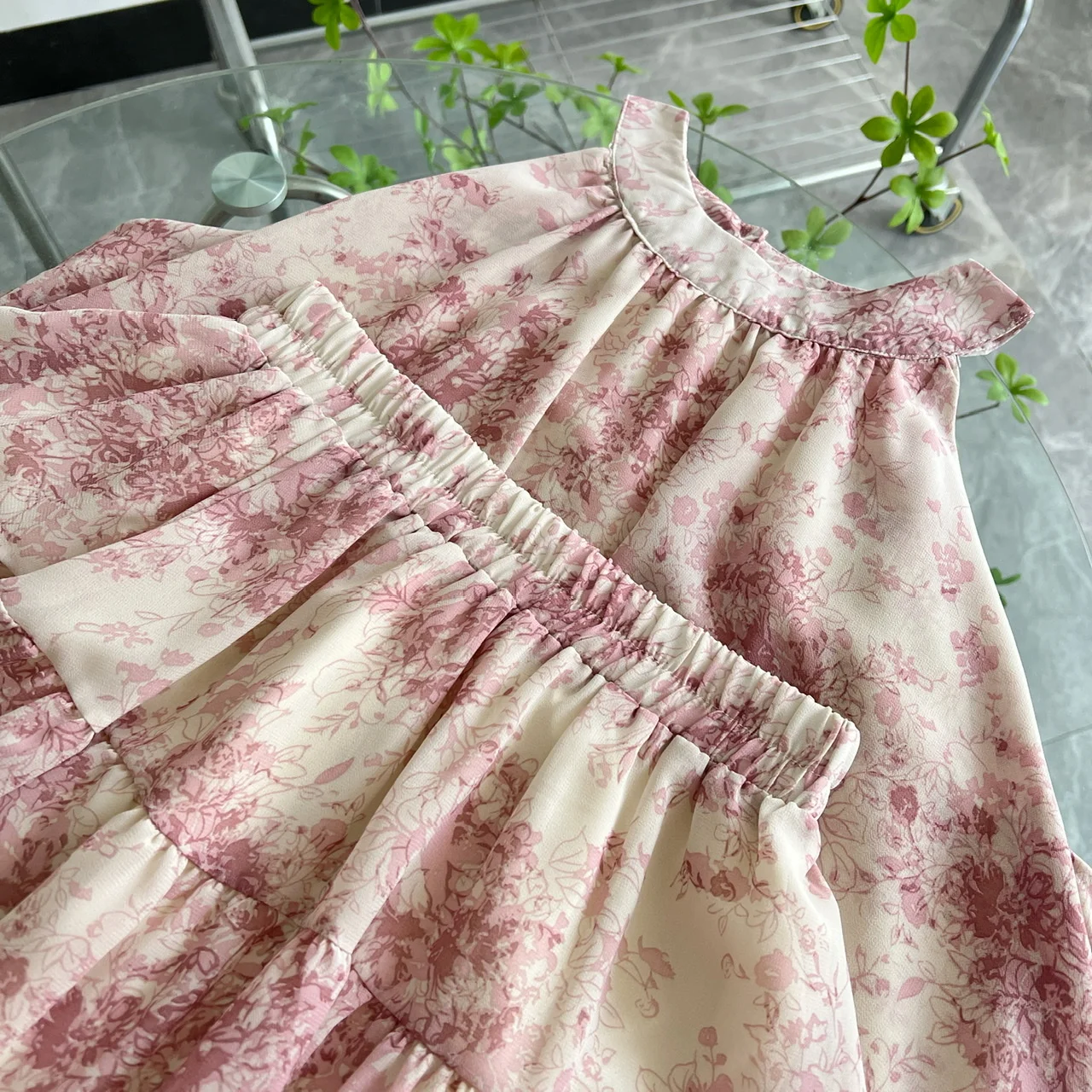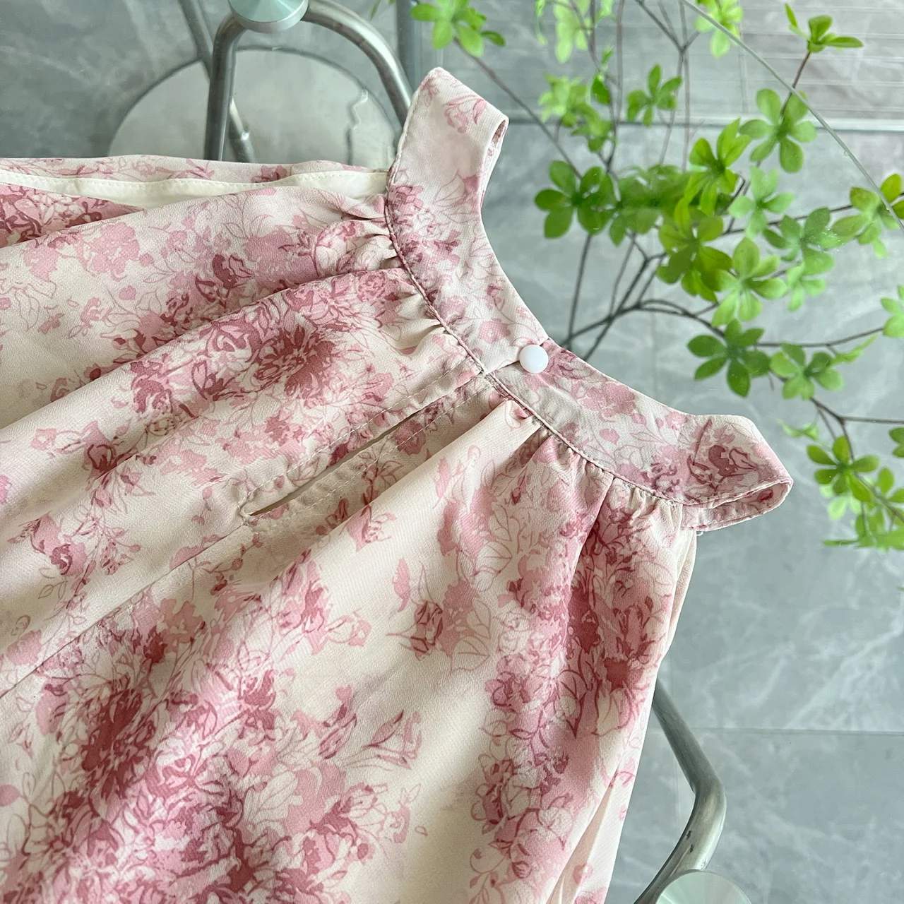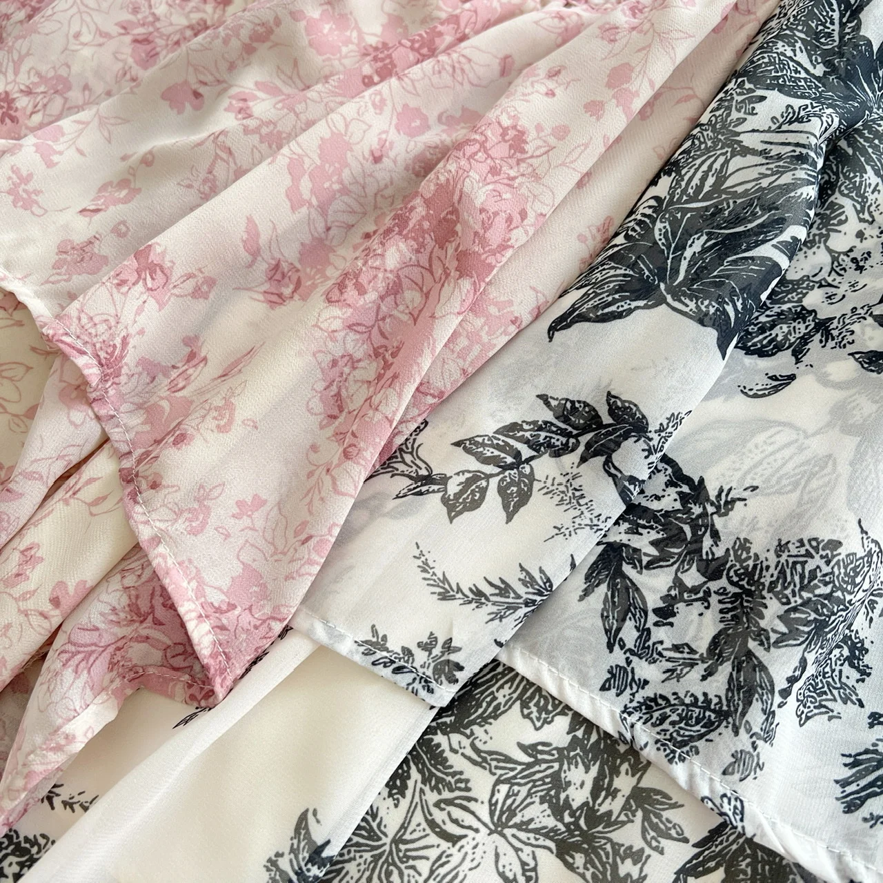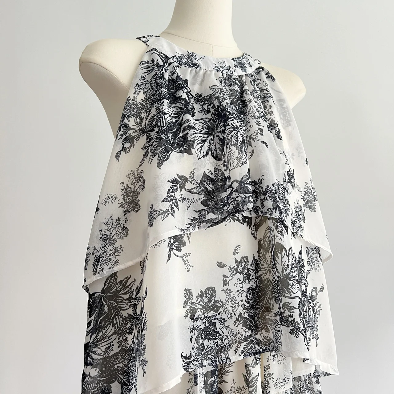 Lizakosht Elegant Ink Printed Skirt Suit Halter Swing Sleeveless Ruffles Top + Mini Pleated Skirt Casual Fashion Summer Two-piece Outfit