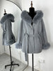 LIZAKOSHT - Elegant Lace Up Fur Patchwork Coat Women Loose Solid Long Sleeve V-neck Open Stitch Coats Female Autumn Fashion Jacket