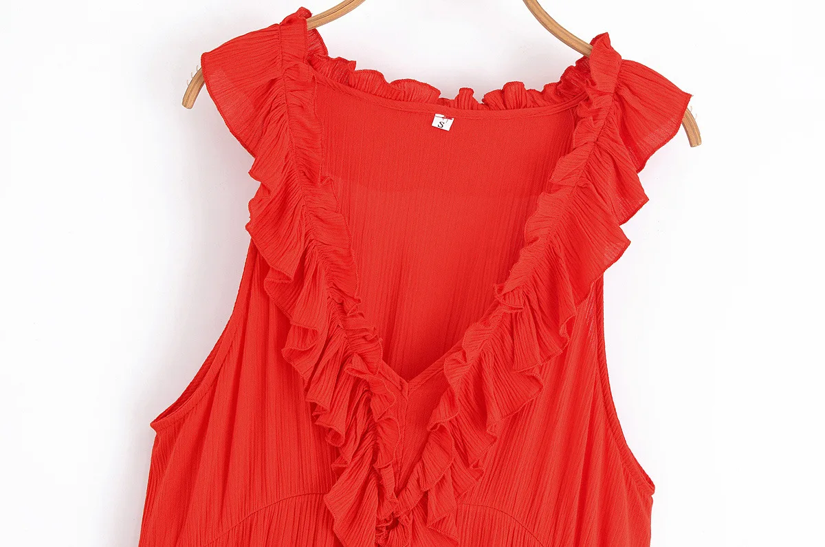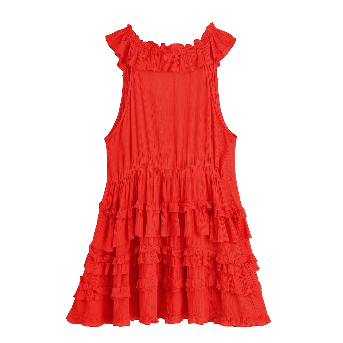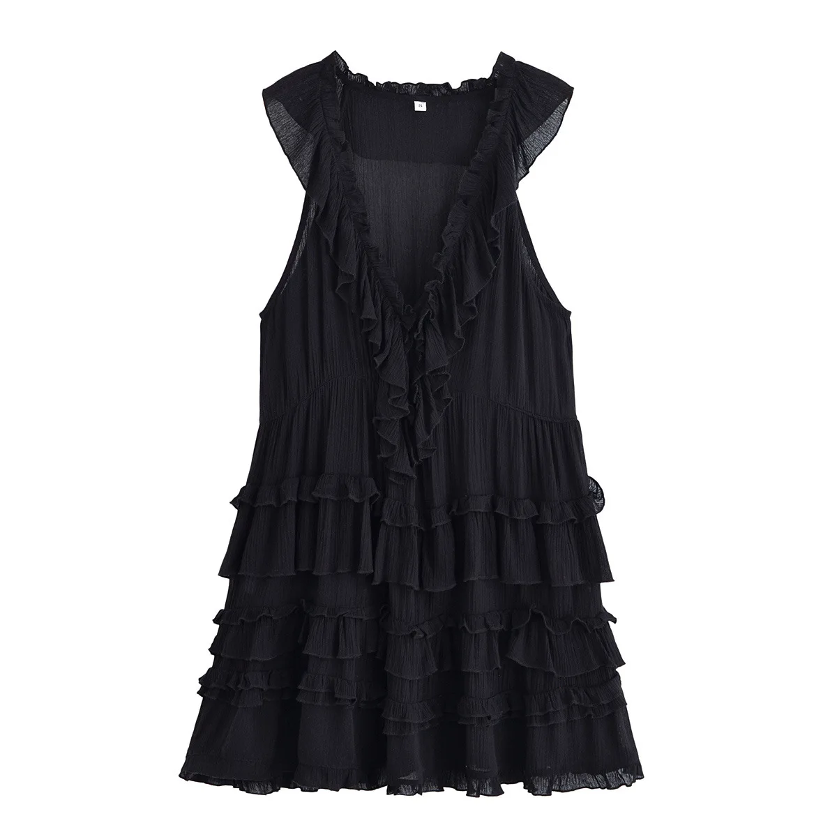 LIZAKOSHT - Elegant Layered Ruffle Dress Women 2025 New Summer Loose Sexy V-neck Sleeveless A-line Mini Dresses Vacation Party Evening Dress