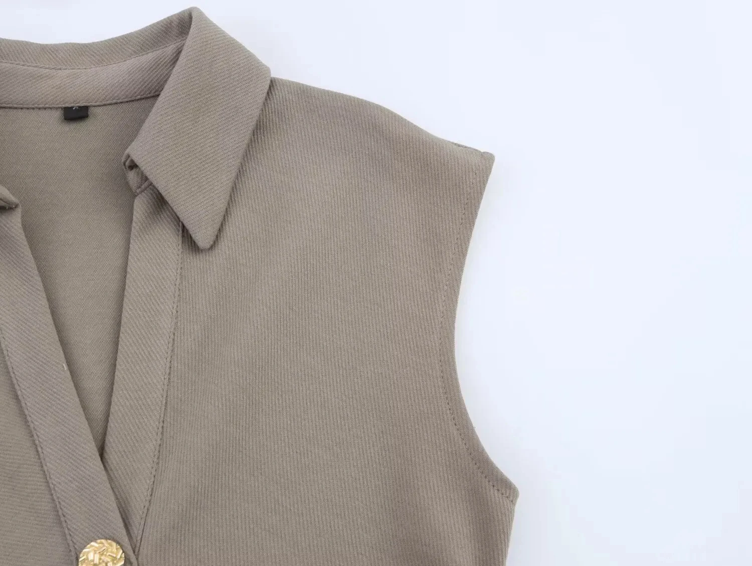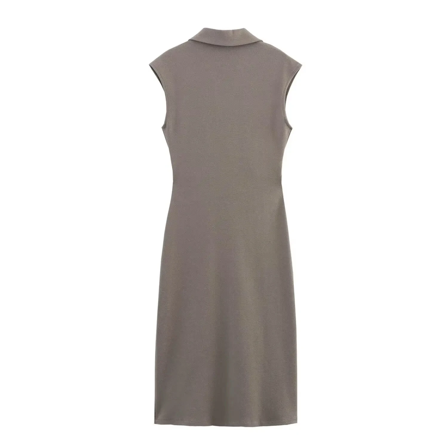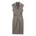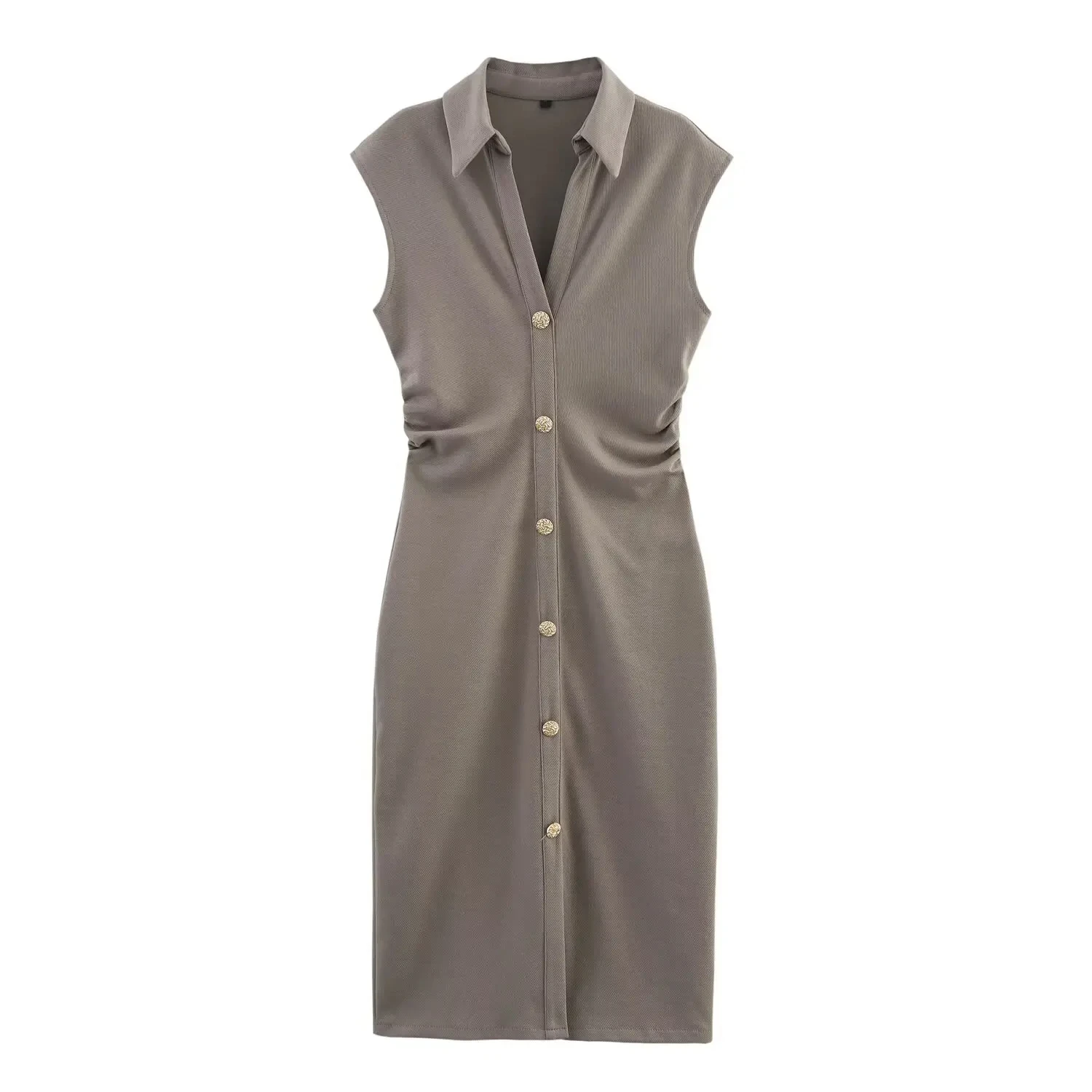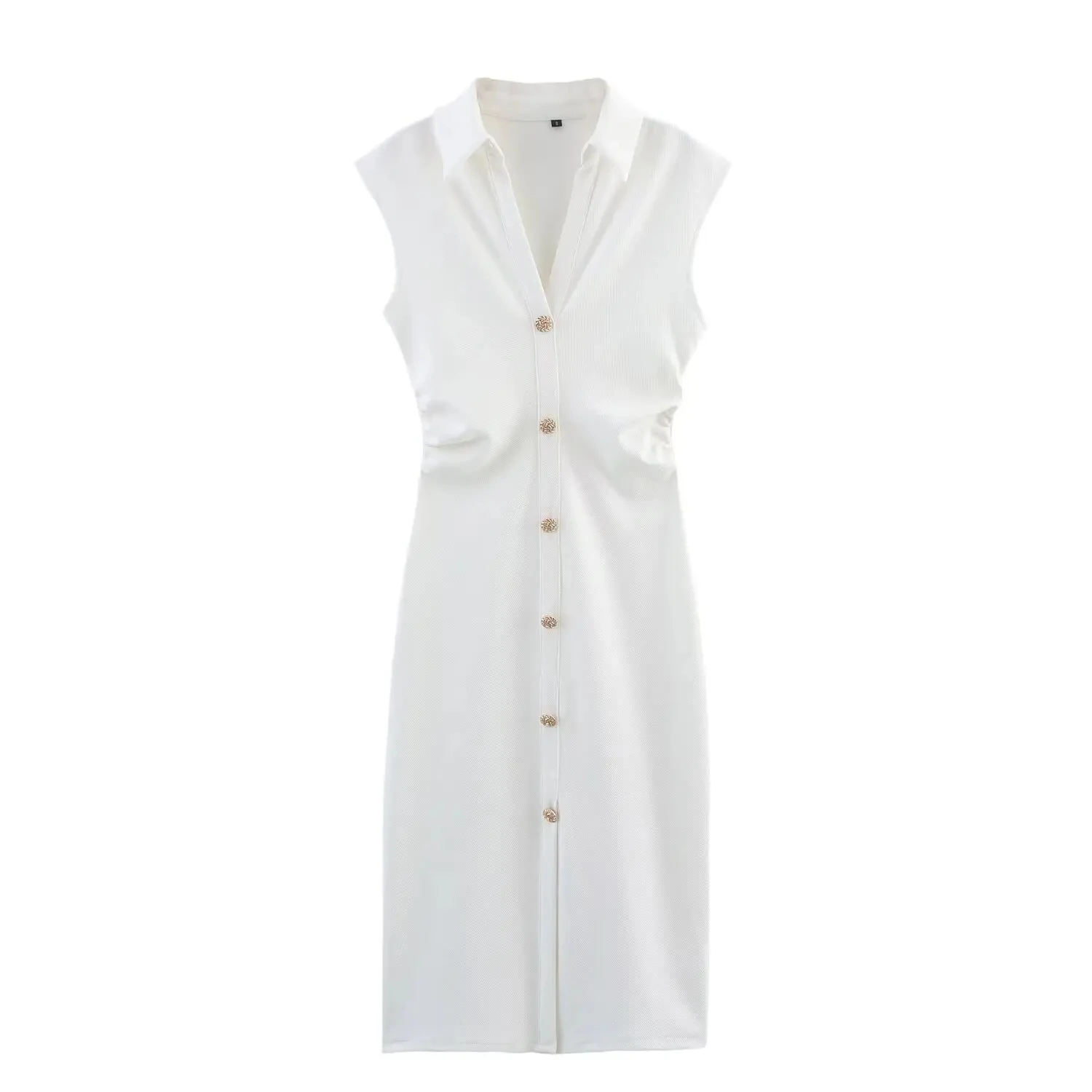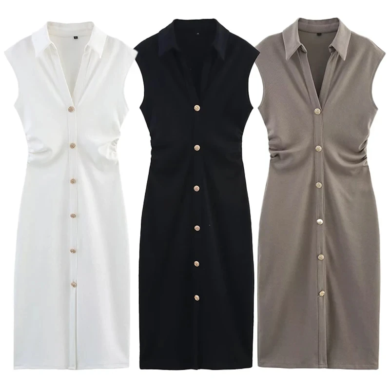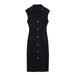 LIZAKOSHT - Elegant Long Dress Women 2025 New Summer Chic Sleeveless Ruched Single Breasted Midi Dresses Office Lady Vintage Causal Dress