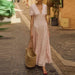 LIZAKOSHT - Elegant Polka Dot Printed Bohemian Women Long Dress Fashion Hight Wasit Party Dress V-neck Short Sleeve Seaside Vacation Dress