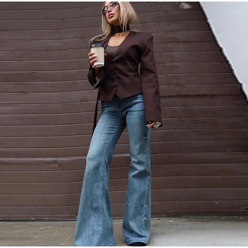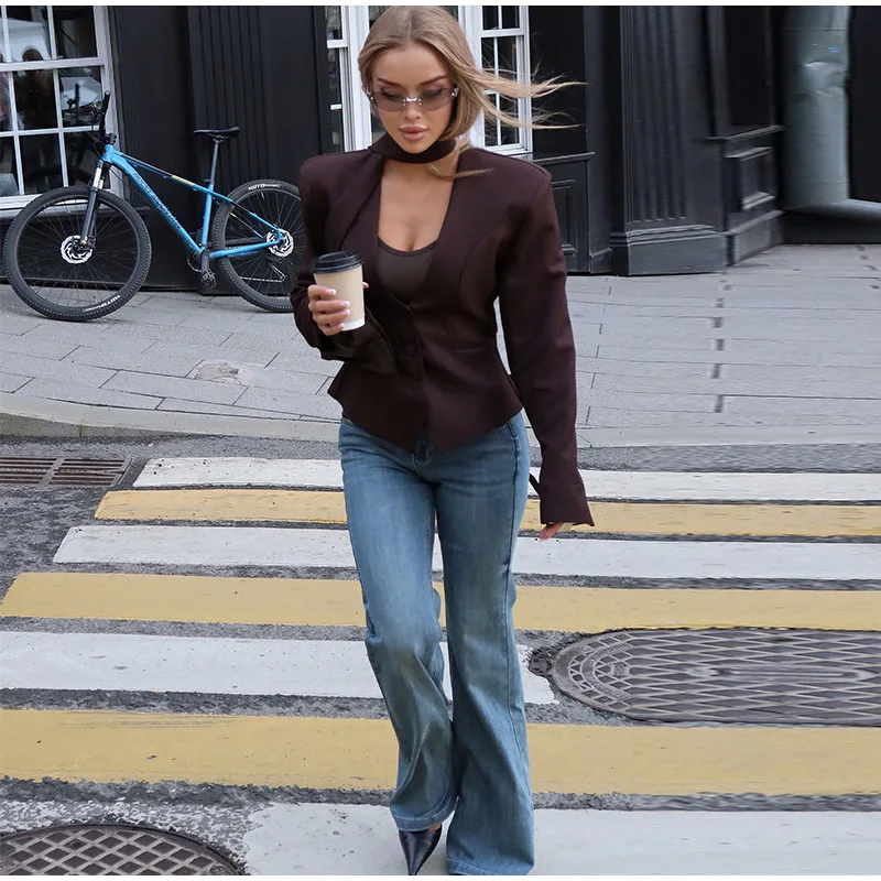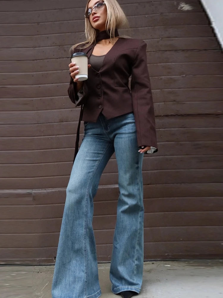 LIZAKOSHT  -  Elegant Ribbon Single Breasted Coat Women Fashion Solid V-neck Long Sleeve Pocket Jackets Female Autumn Chic Casual Streetwear