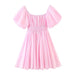 LIZAKOSHT - Elegant Sexy Square Collar Mini Dress Women Vintage Puff Short Sleeve Elastic Waist Summer Dresses Female Boho Vestidos