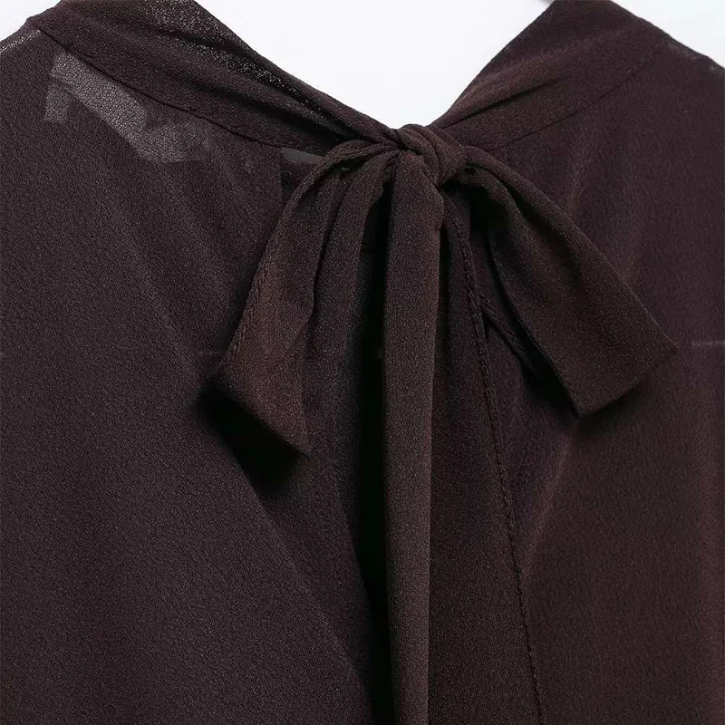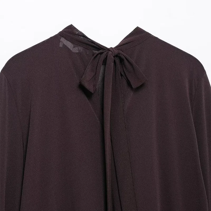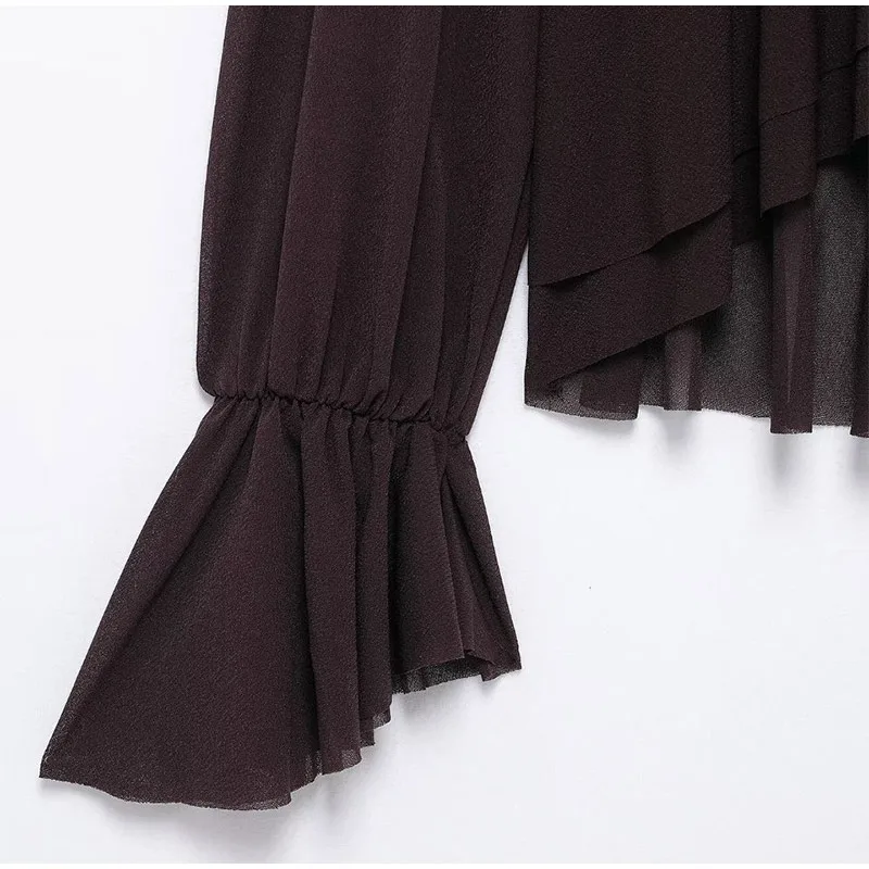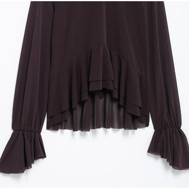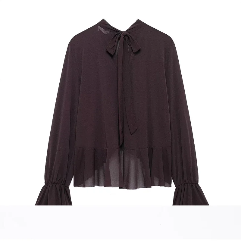 LIZAKOSHT - Elegant Shirts Women Loose Ruffles O Neck Long Sleeves Shirt Female 2025 Spring Summer Fashion Solid Soft Lace Up Chiffon Tops