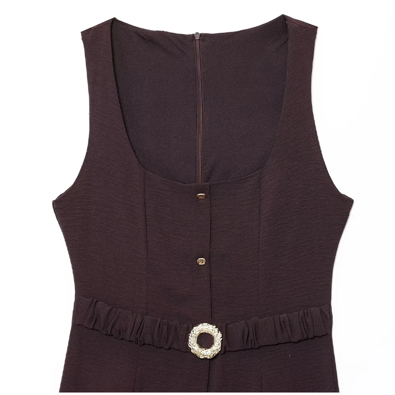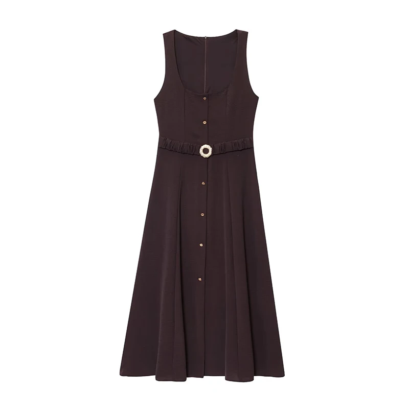 LIZAKOSHT - Elegant Single-Breasted Belt Sling Dress Women Fashion Sleeveless Waist-Cinching Pleated Robe 2025 Female Office New Dresses