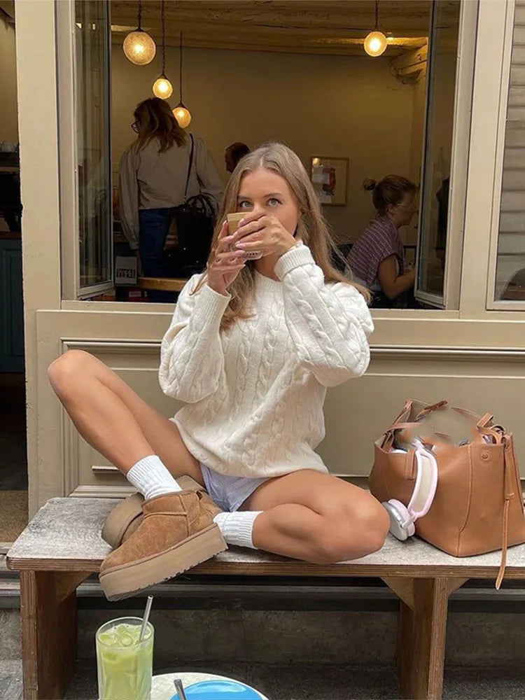 LIZAKOSHT - Elegant White Round Neck Knitted Pullover Autumn Women Casual Long Sleeve Slim Fit Jumpers New Lady Fashion High Streetwear