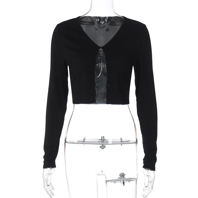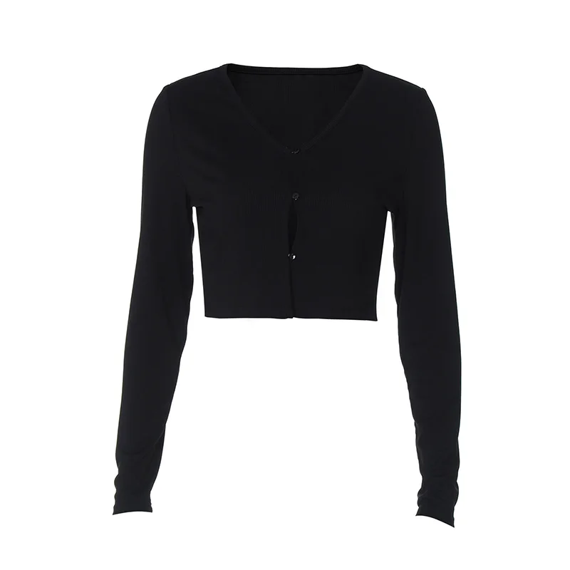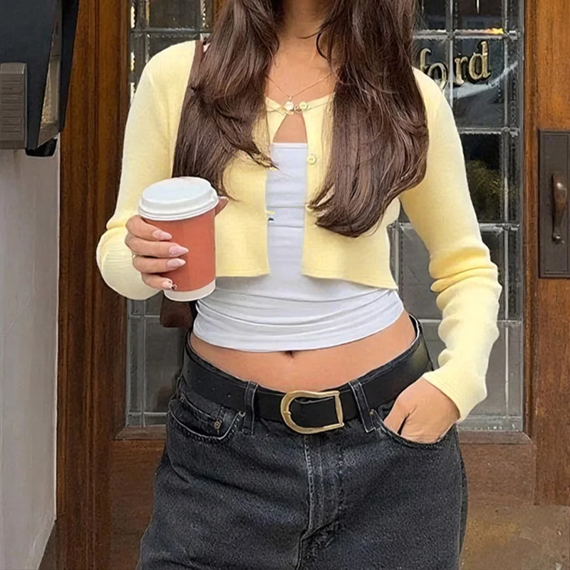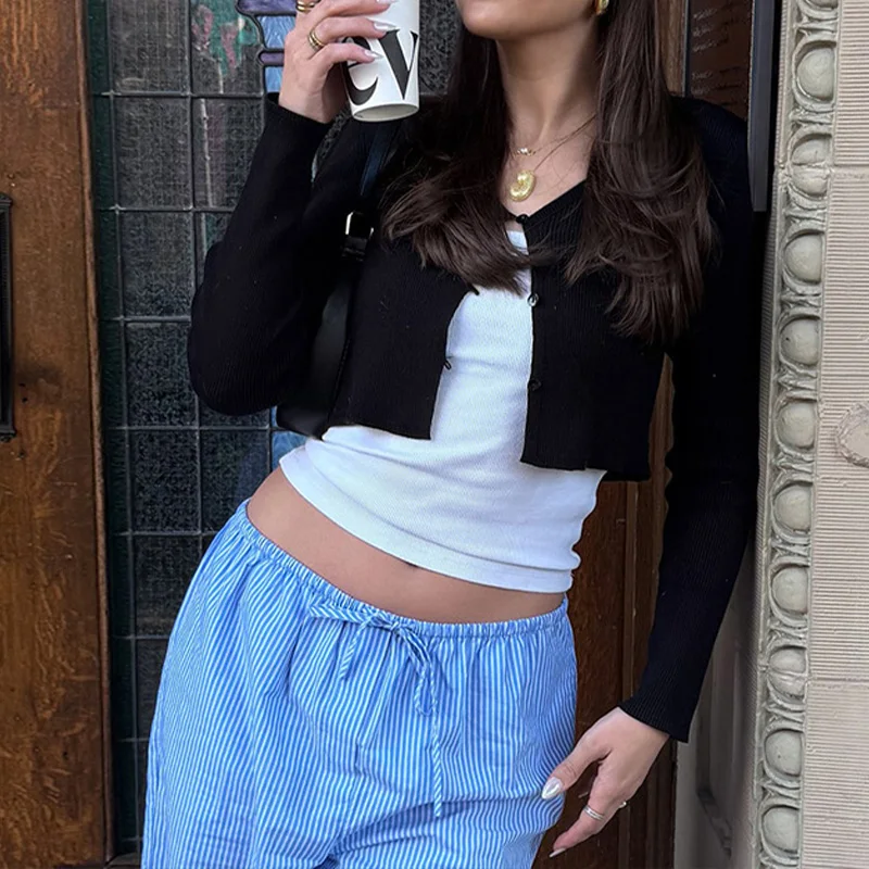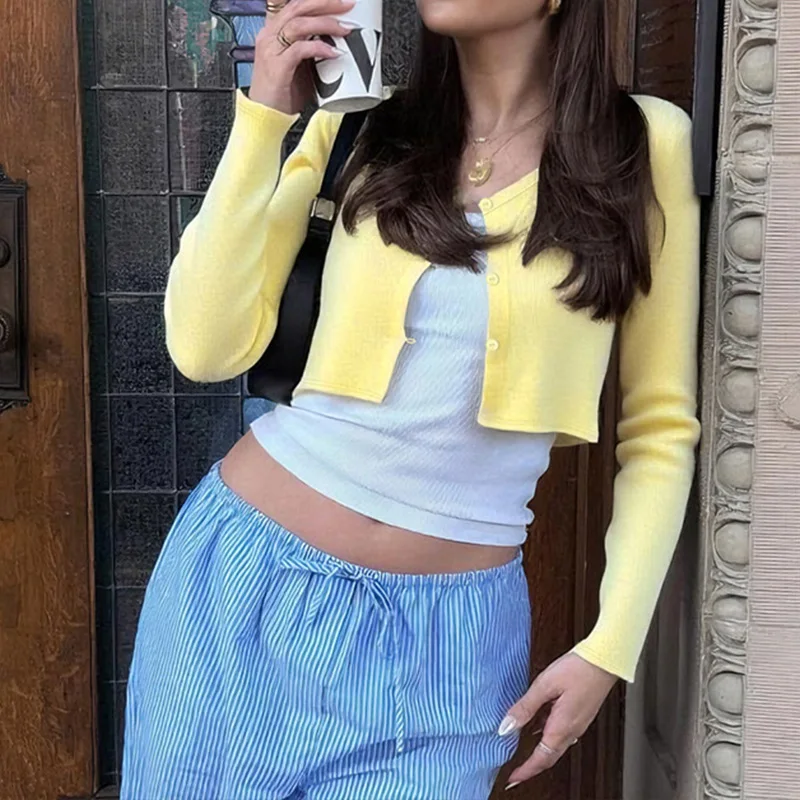 LIZAKOSHT  -  Elegant Women's Clothing 2025 Knitted Ribbed Early Autumn Long-sleeved Buttons Cardigan Cropped Cardigan Tops Outerwear