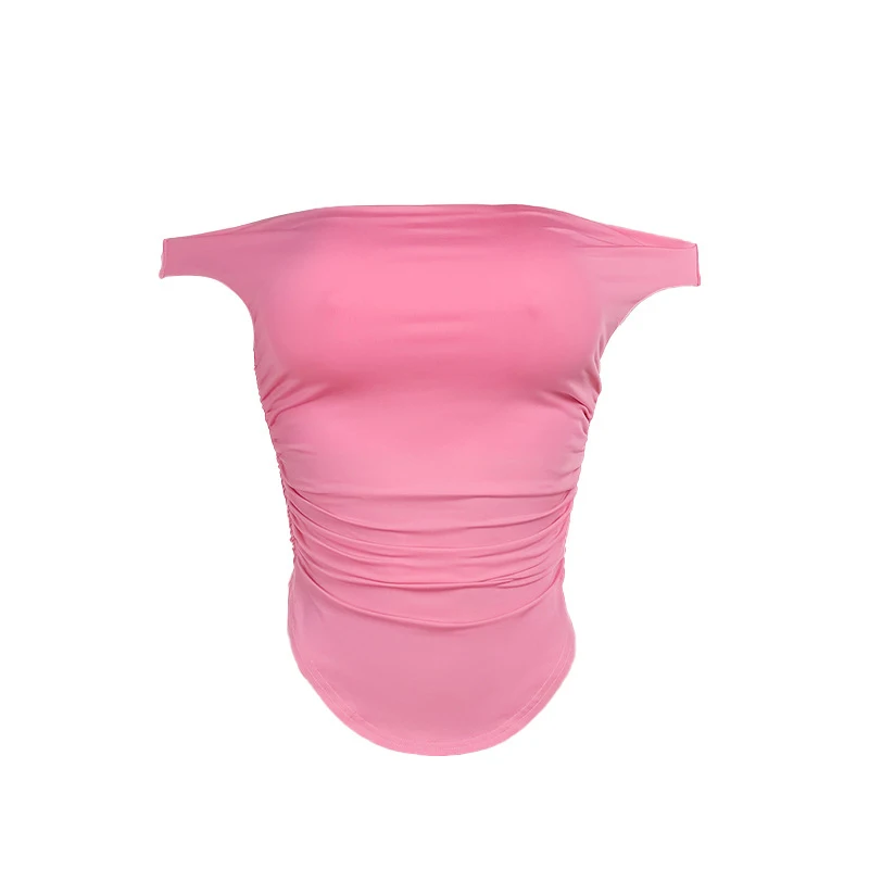LIZAKOSHT  -  Elegant Women's Clothing Off Shoulder Slash Neck Solid Irregular Pleated Summer Daily T-shirt Sleeveless Y2k Slim Tops
