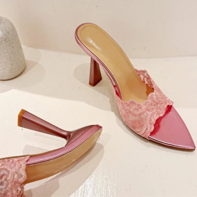 LIZAKOSHT - Embroidery Designer High Heels Slippers Women Sexy Pointed Toe Party Dress Shoes Summer Elegant Fashion Thin Heels Sandals Women