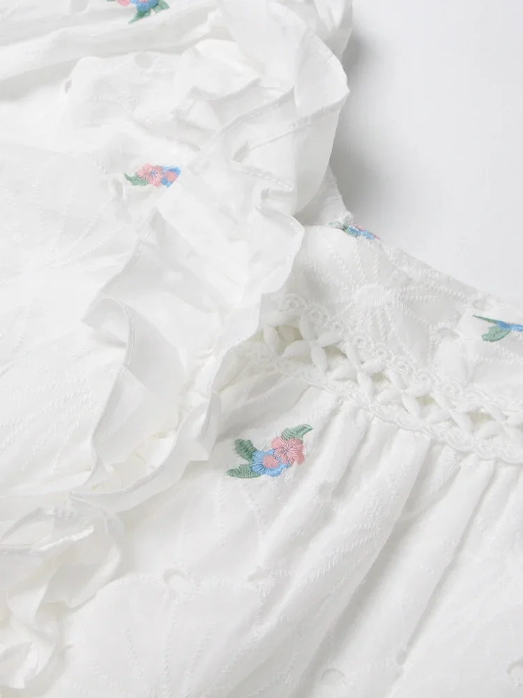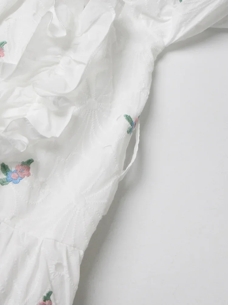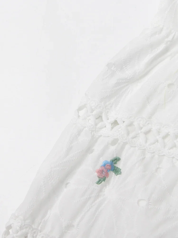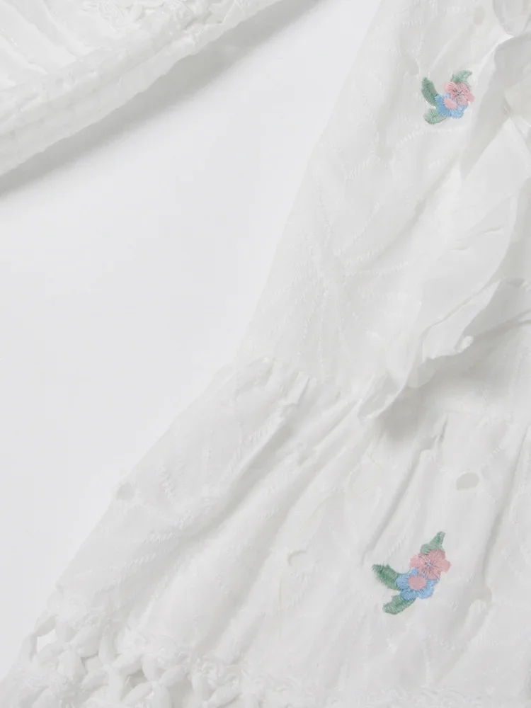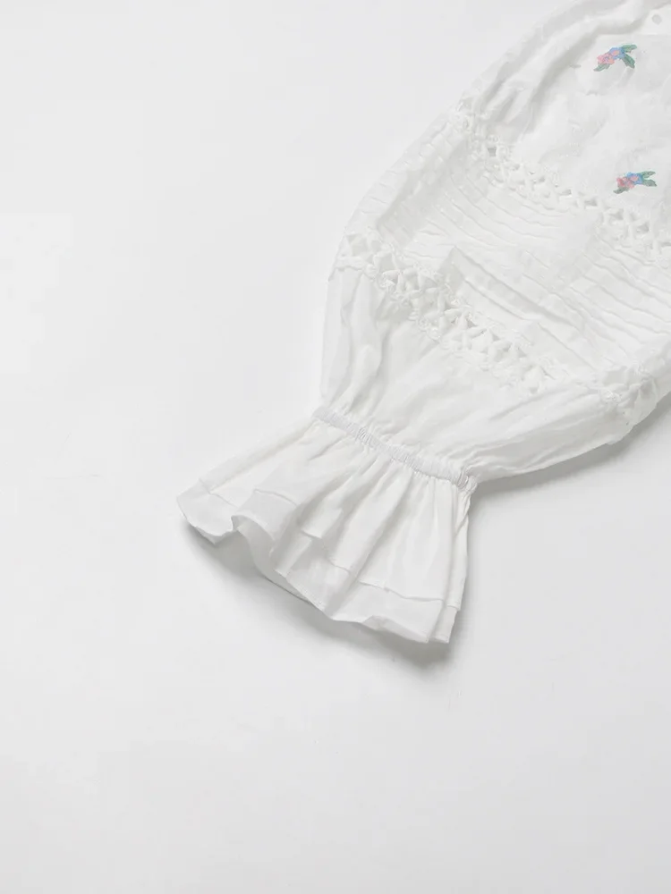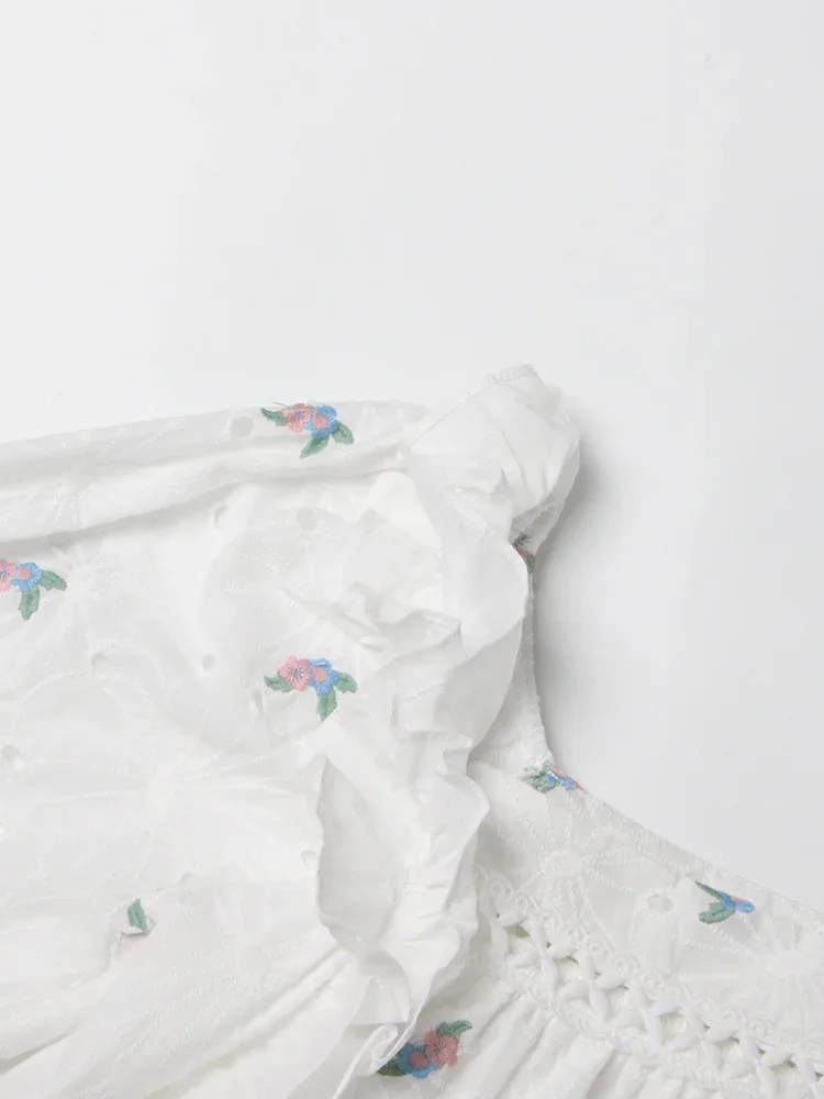LIZAKOSHT - Embroidery Hollow Out Mini Dresses For Women Square Collar Puff Sleeve High Waist Printing Lace Up Dress Female Summer