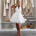 LIZAKOSHT  -  Embroidery Short Dress For Women 2025 Summer Elegant Female Dresses Halter Turn-down Collar Sleeveless Lace Backless Vestidos