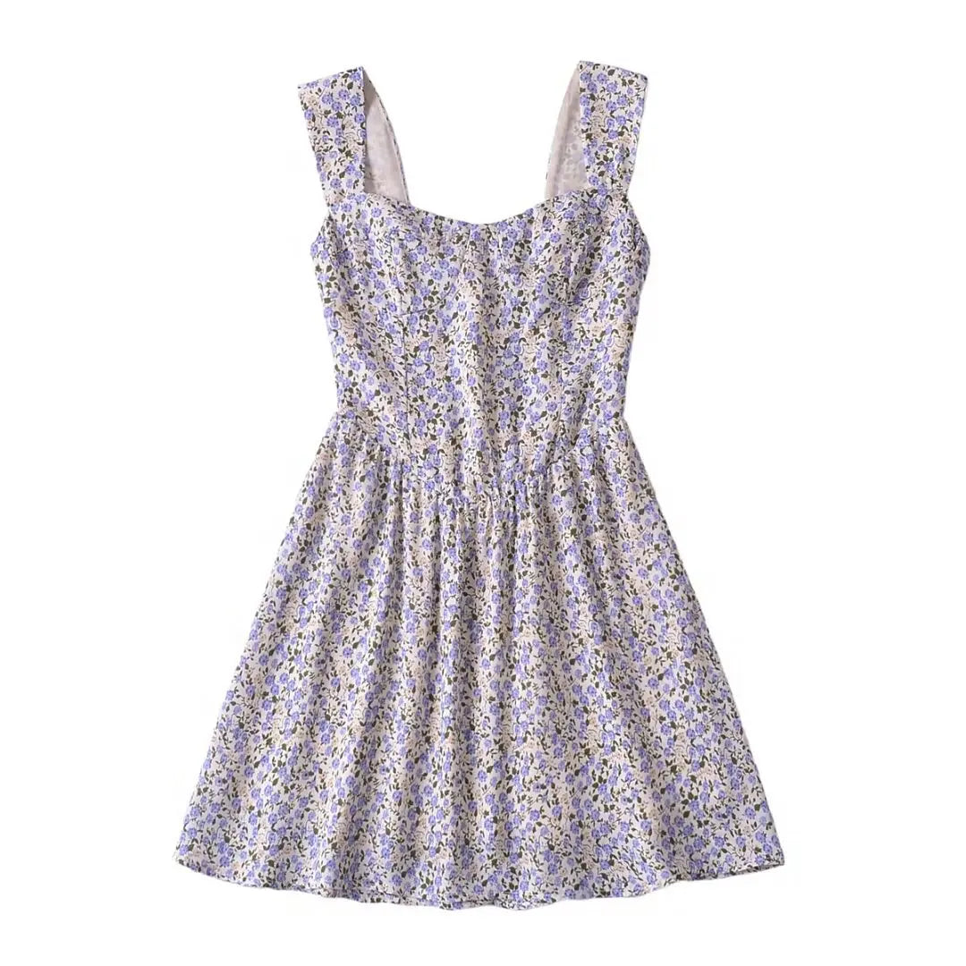 LIZAKOSHT - European and American Style Women's New Floral Print Heart-shaped Collar Waist Slim Strap Dress