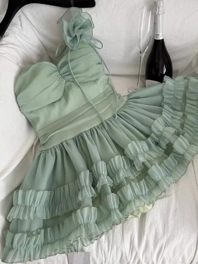 LIZAKOSHT - Fairy Dresses Summer French 3D Flower Sleeveless Strapless Fluffy Short Skirt Mesh Cake Dress for Women Vestidos