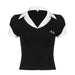 LIZAKOSHT - Fake Two Pieces Harajuku Contrast Color T-shirts Summer Casual Letter Embroidery Tops Women Y2k Aesthetic Slim Fit Grunge Tees