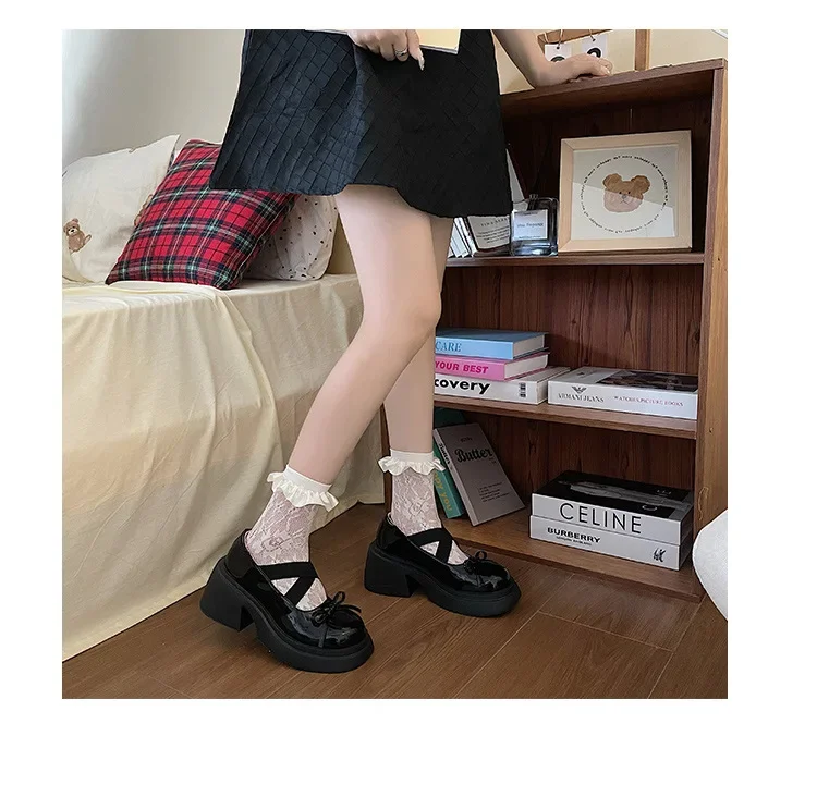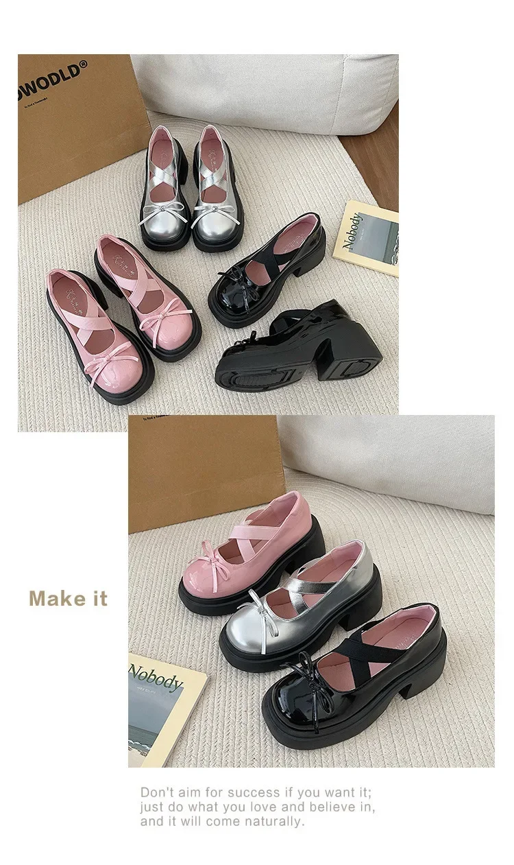LIZAKOSHT - Fashion Casual PU Leather Mary Janes Shoes for Women Summer Autumn Bow Platform Bow Designer Chunky Heel Ladies Shoes