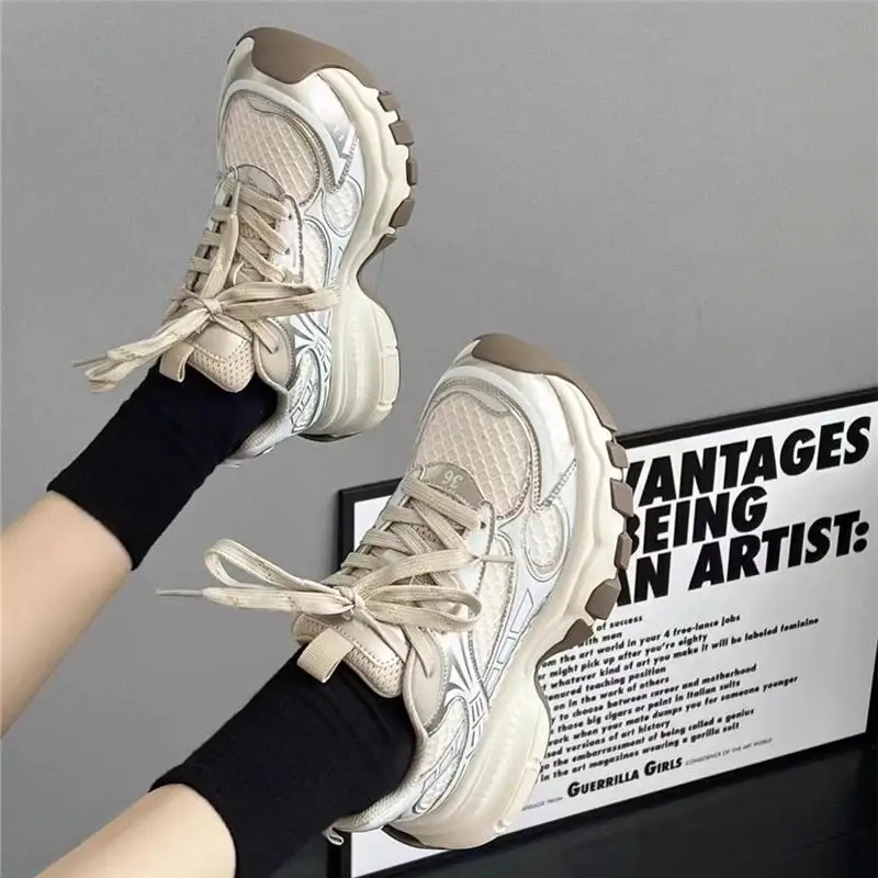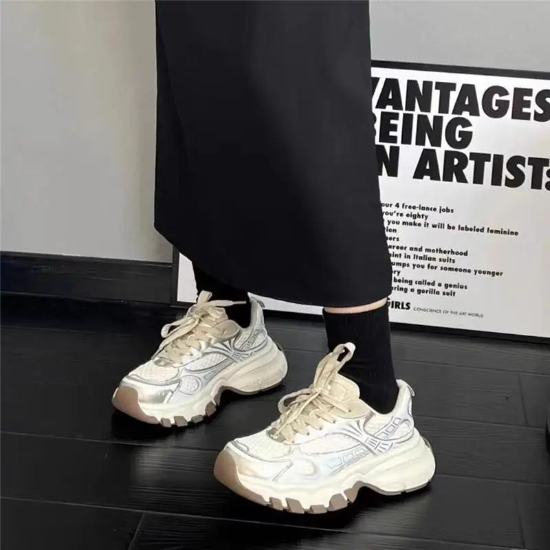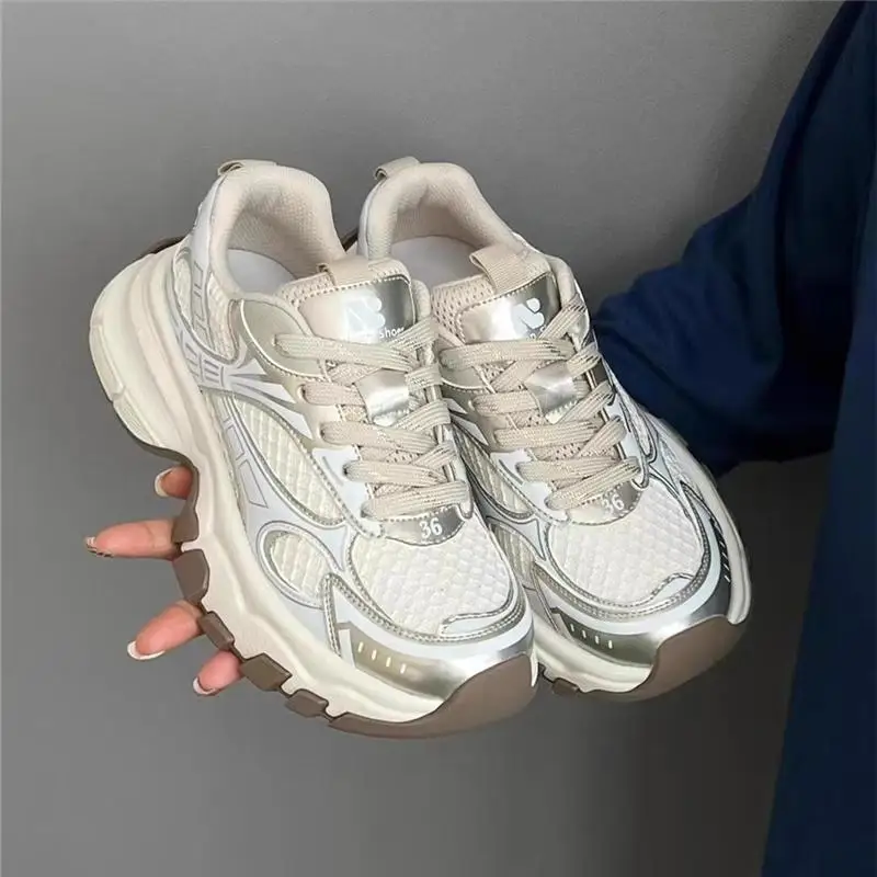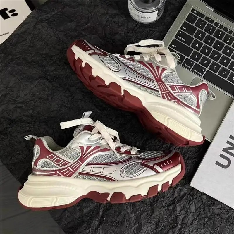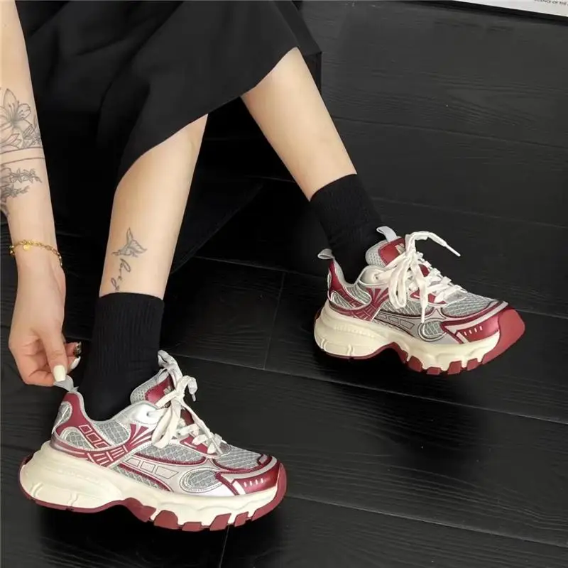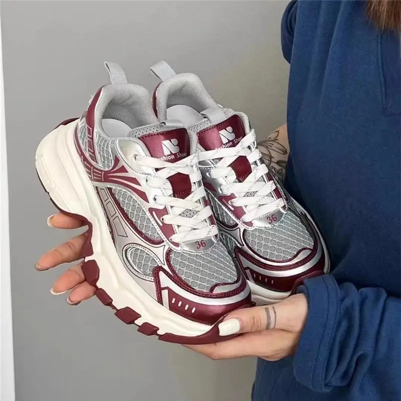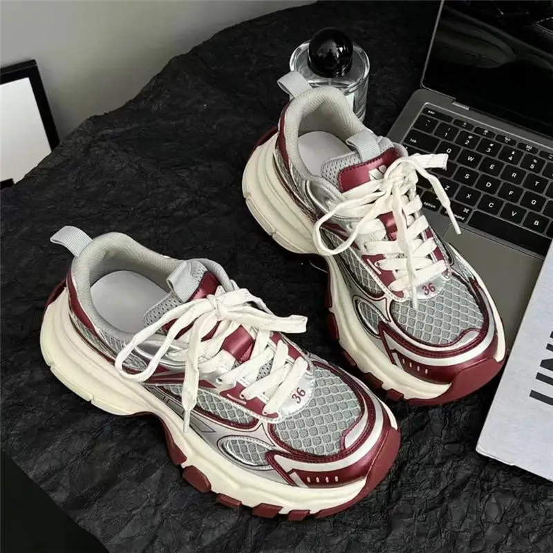 LIZAKOSHT - Fashion Design Mixed Color Patchwork Round Toe Women Sneakers Thick Sole Chunky Heels Lace Up Running Trainer New Western Shoes