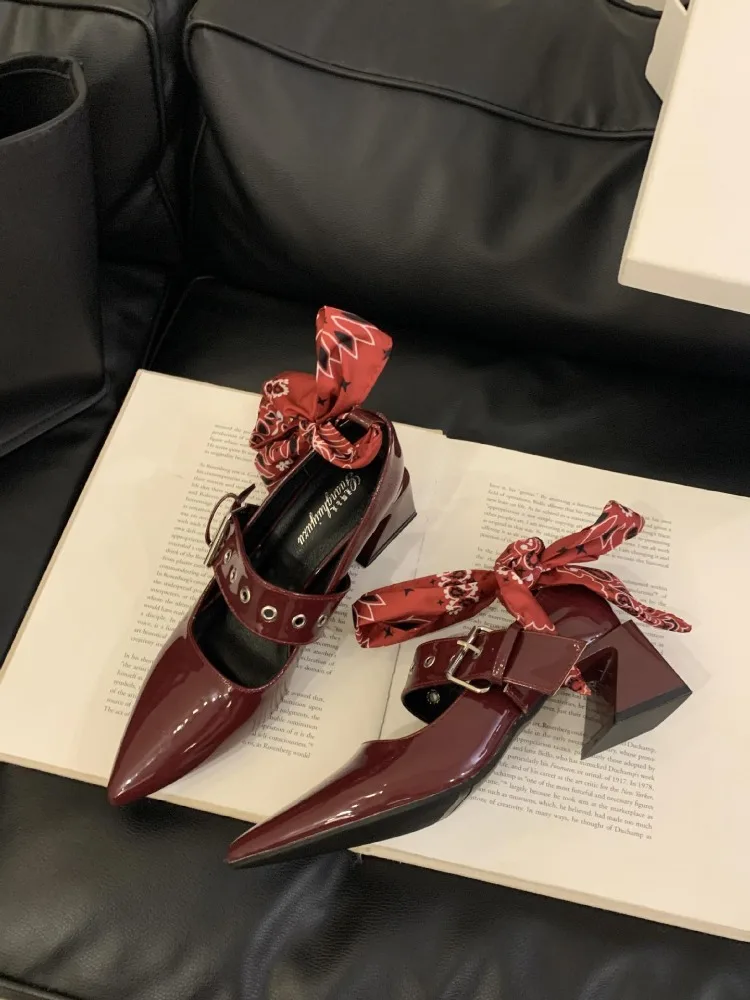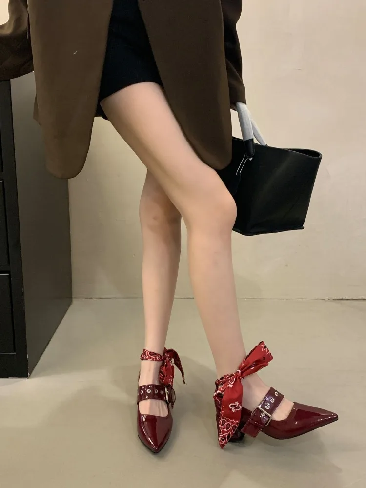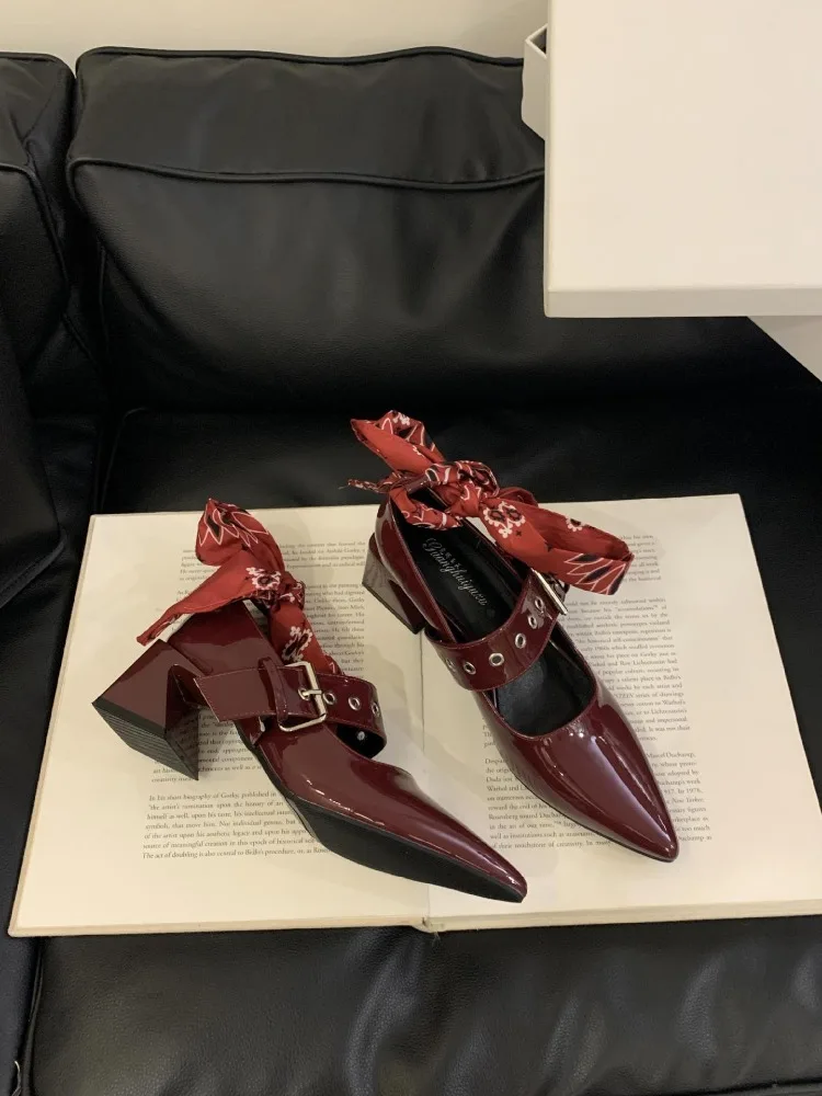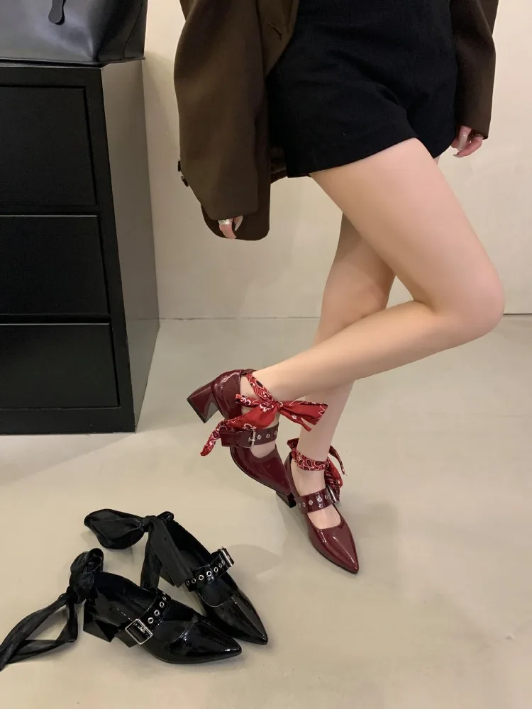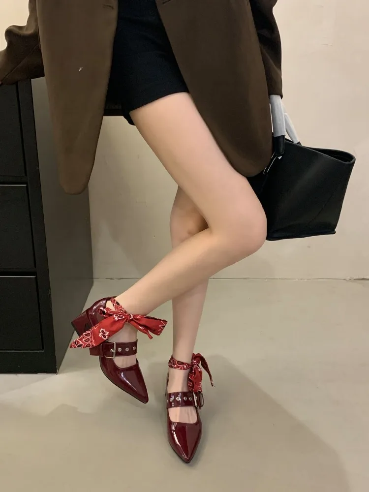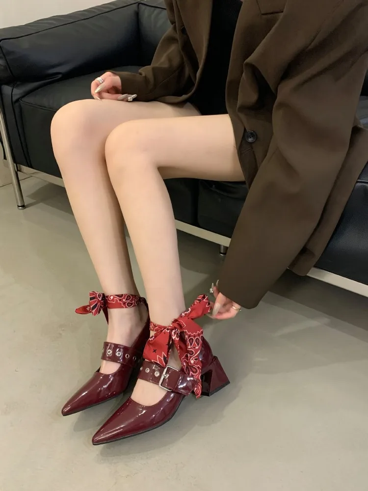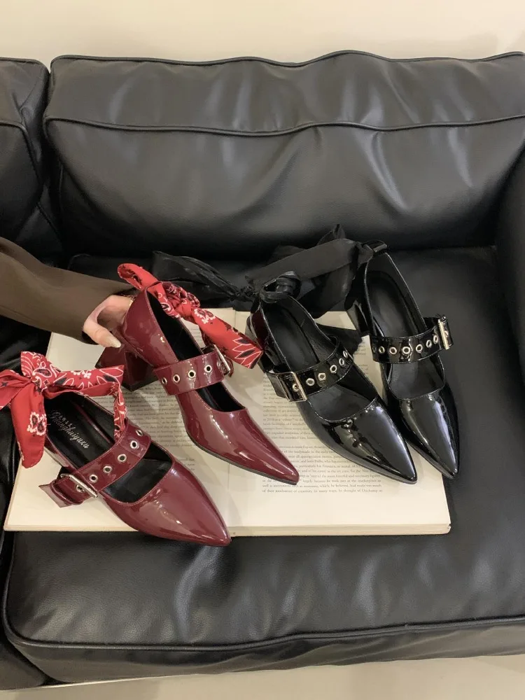 LIZAKOSHT  -  Fashion Designer Mary Jane Shoes Women Pointed Toe Chunky Retro Women Shoes Ankle Ribbon Belt Buckle Street Style Women Pumps