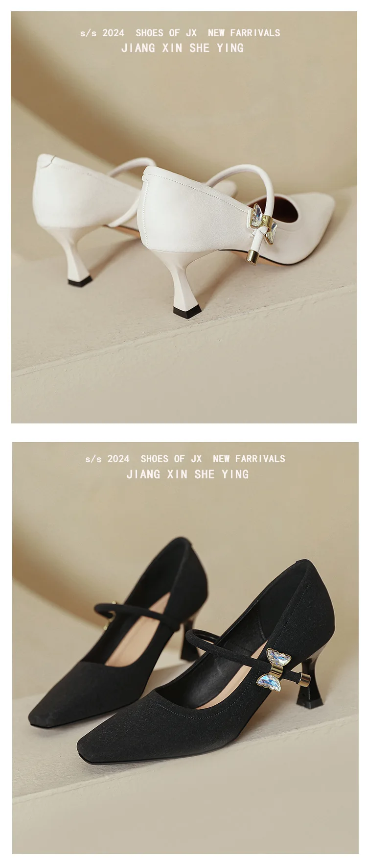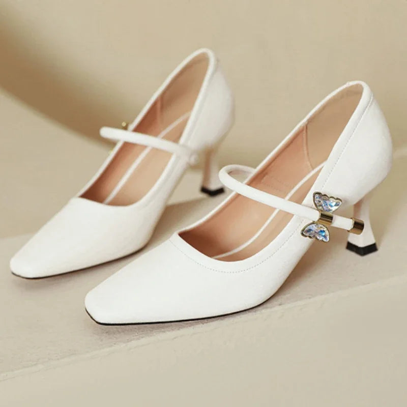 LIZAKOSHT  -  Fashion Elegant High Heels for Women Square Toe Thin Heels Office Shoes Fashion Shallow Diamond Bow Mary Jane Shoes Women Pumps