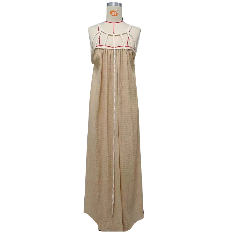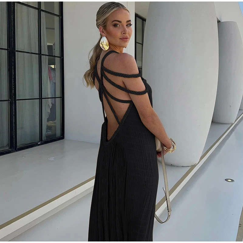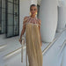 LIZAKOSHT - Fashion Halter Long Dress For Women Sleeveless Backless Draped Slip Lace Up Robe 2025 Summer Elegant Female Daily Beach Dresses