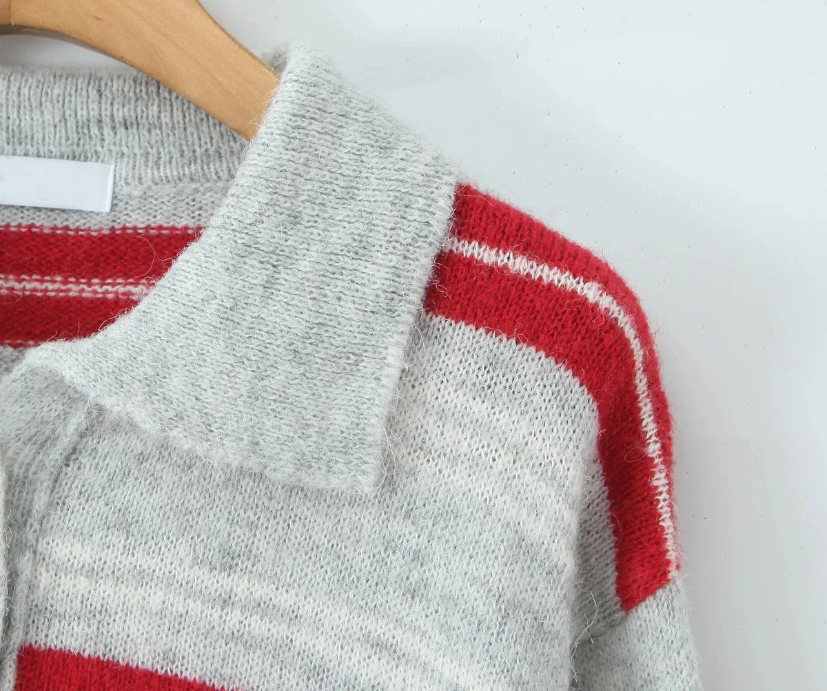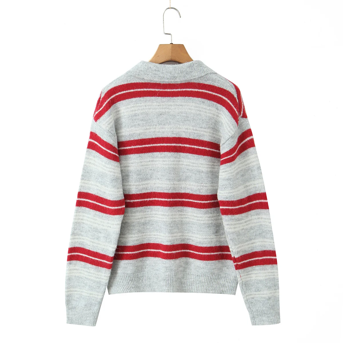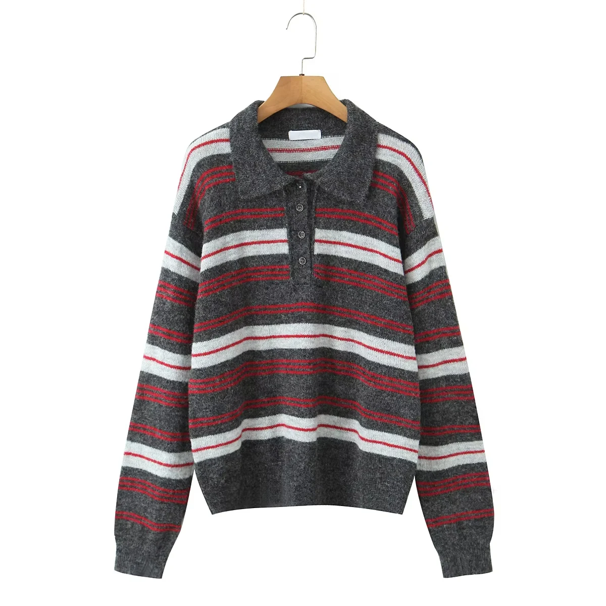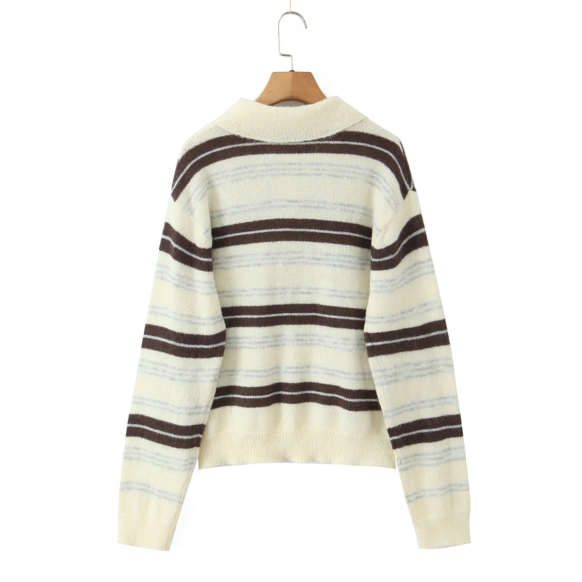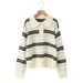LIZAKOSHT  -  Fashion Knitted Striped Sweater Women 2025 New Autumn Vintage Loose Turndown Collar Pullover Casual Buttons Up Elegant Knitwear