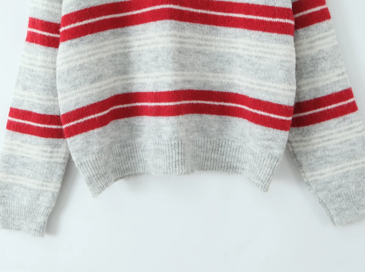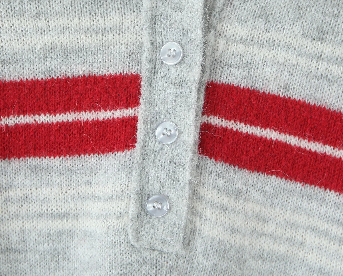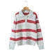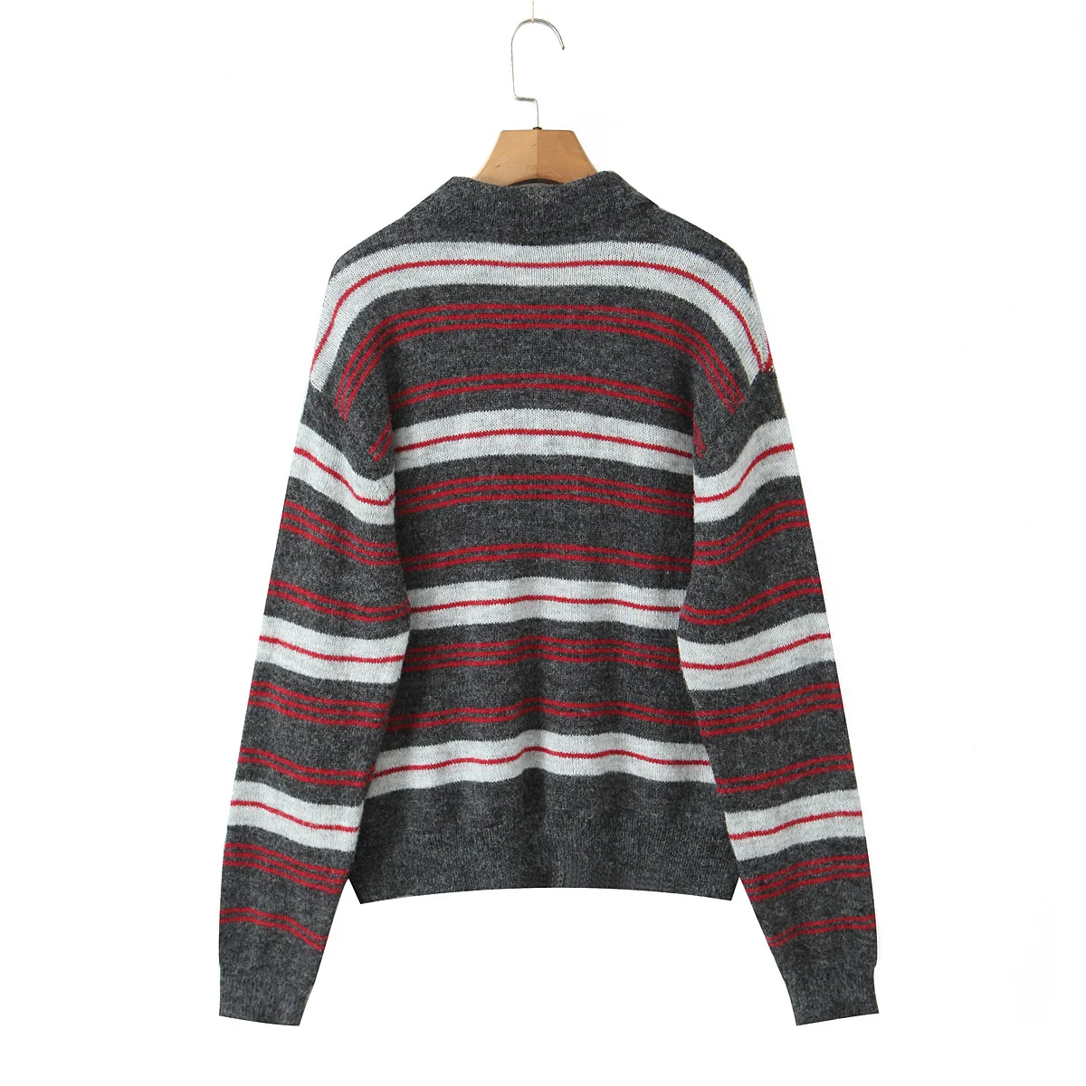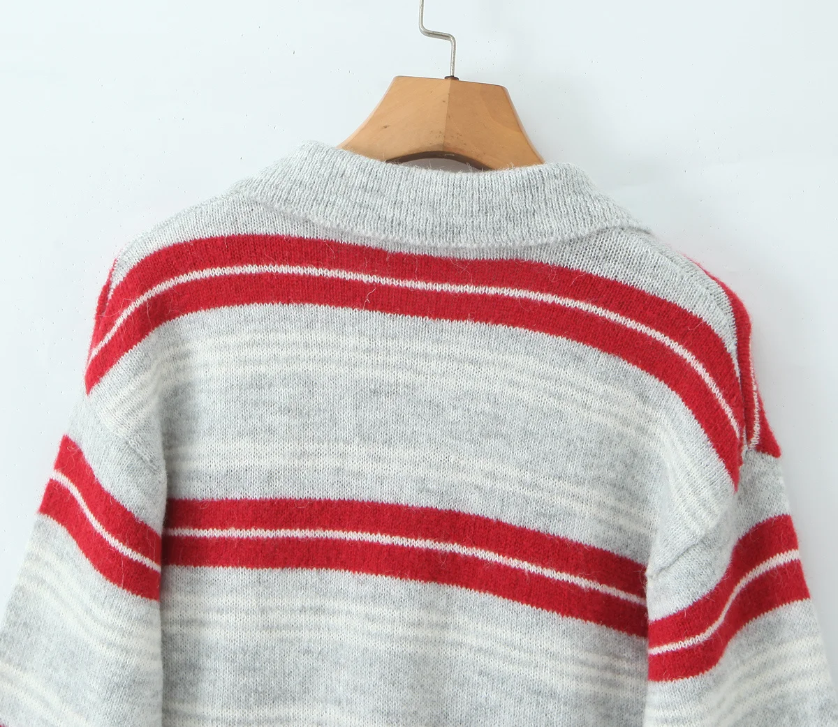 LIZAKOSHT  -  Fashion Knitted Striped Sweater Women 2025 New Autumn Vintage Loose Turndown Collar Pullover Casual Buttons Up Elegant Knitwear