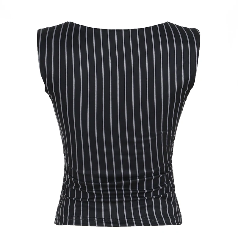 LIZAKOSHT - Fashion Lace-up Tank Top Striped or Polka Dot Print Women Sleeveless Crop Top Streetwear Summer Chic Fitted Vest