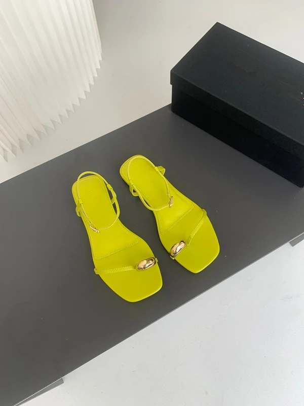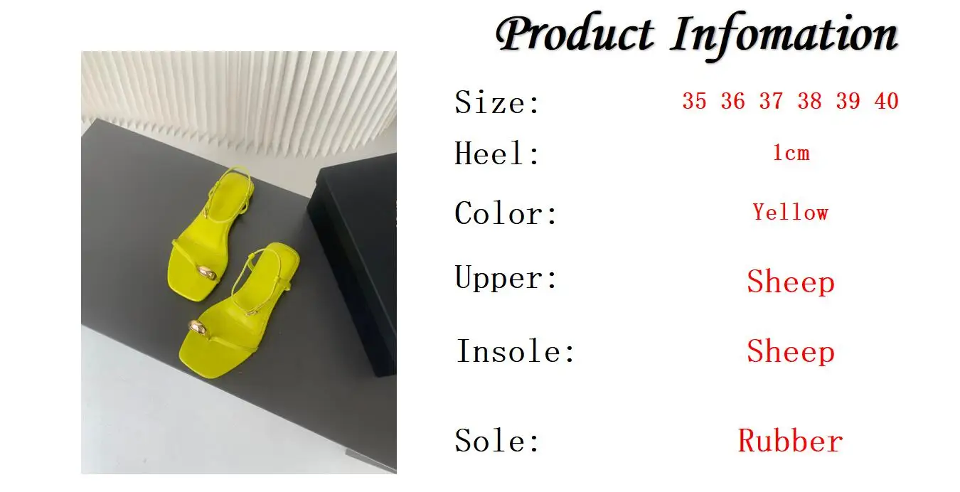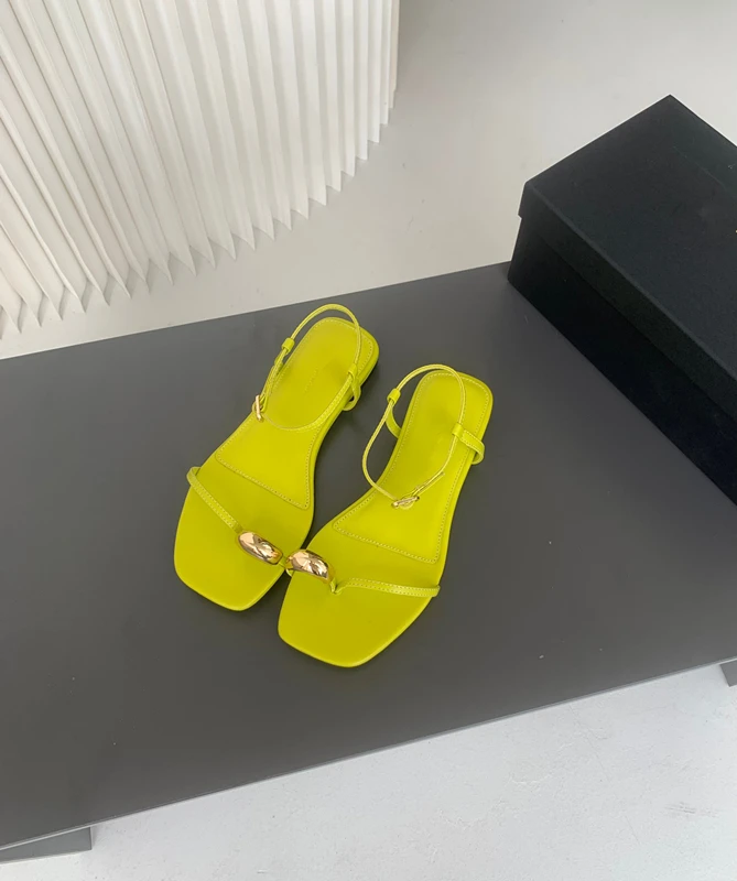 LIZAKOSHT - Fashion Ladies Slippers Blogger Yellow Ring Buckle Leather Flat Shoes Vacation Casual Sandals Women