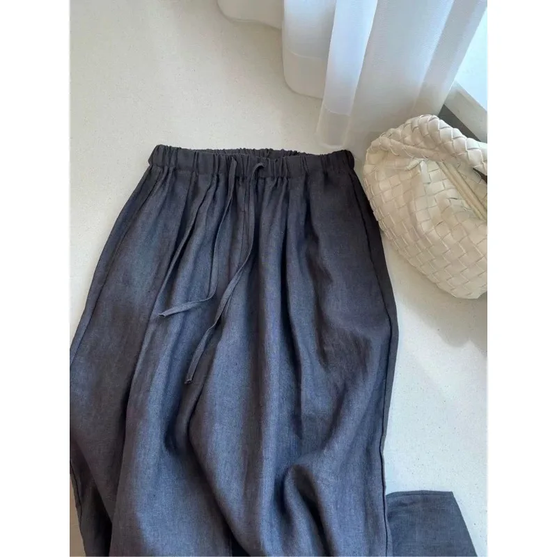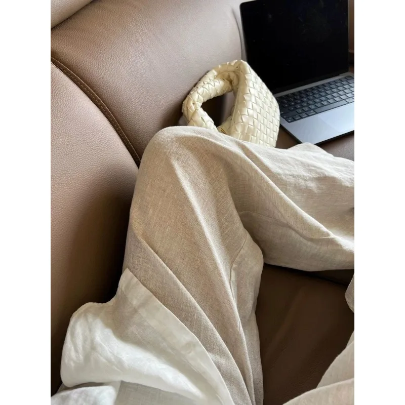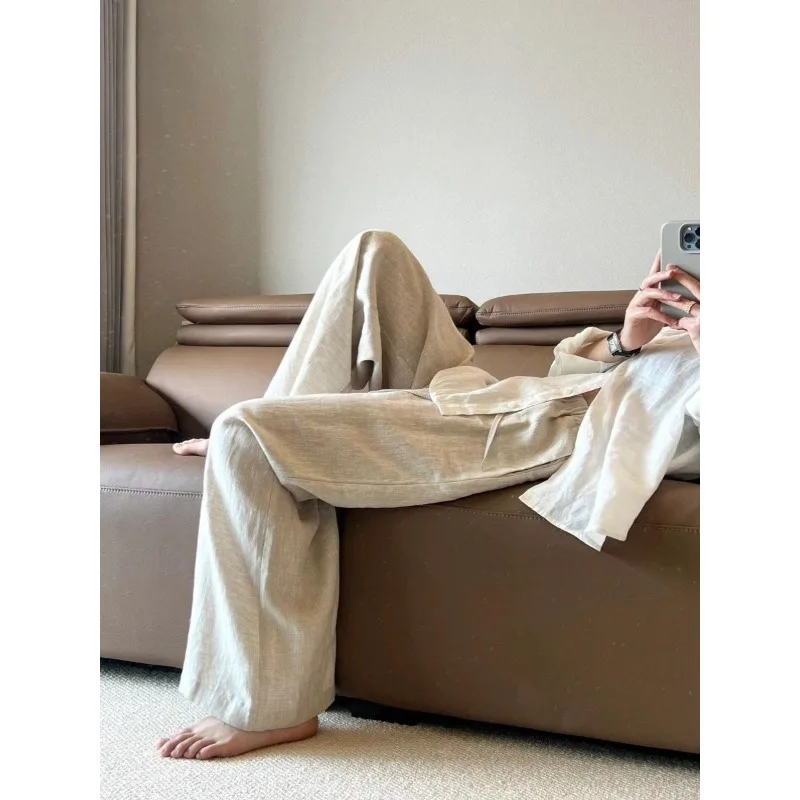LIZAKOSHT - Fashion New High Waist Linen Women Wide Leg Pants Summer Thin Loose Casual Pants Korean Solid All Match Straight Trousers