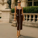 LIZAKOSHT - Fashion Patchwork Long Dress Women Square Collar Sleeveless Single Breasted Split Robe 2025 Summer Elegant Female Party Dresses