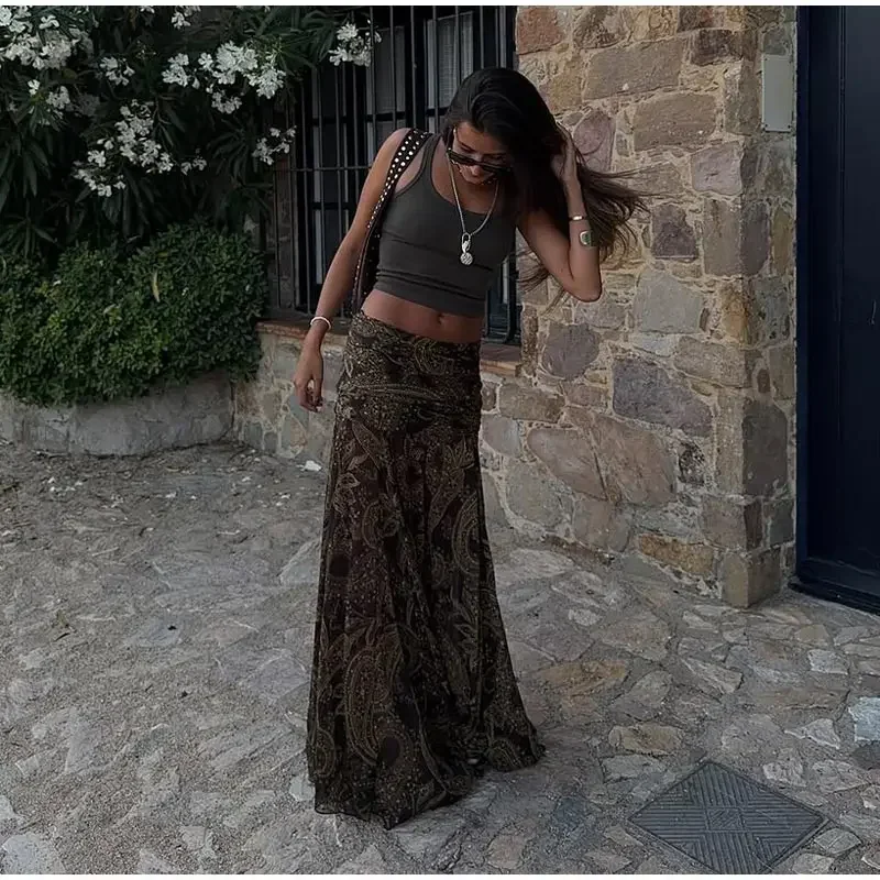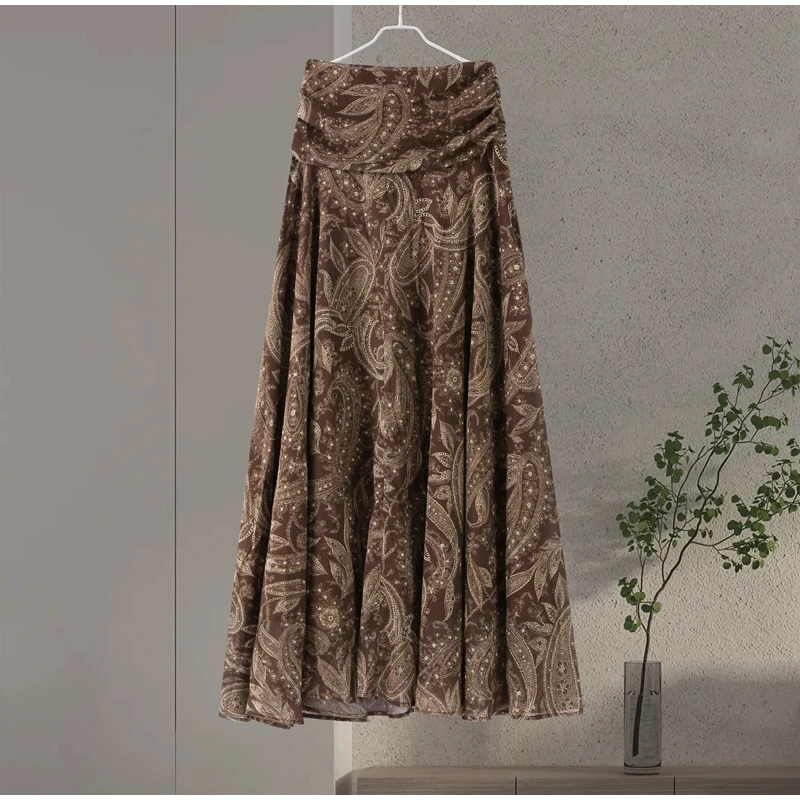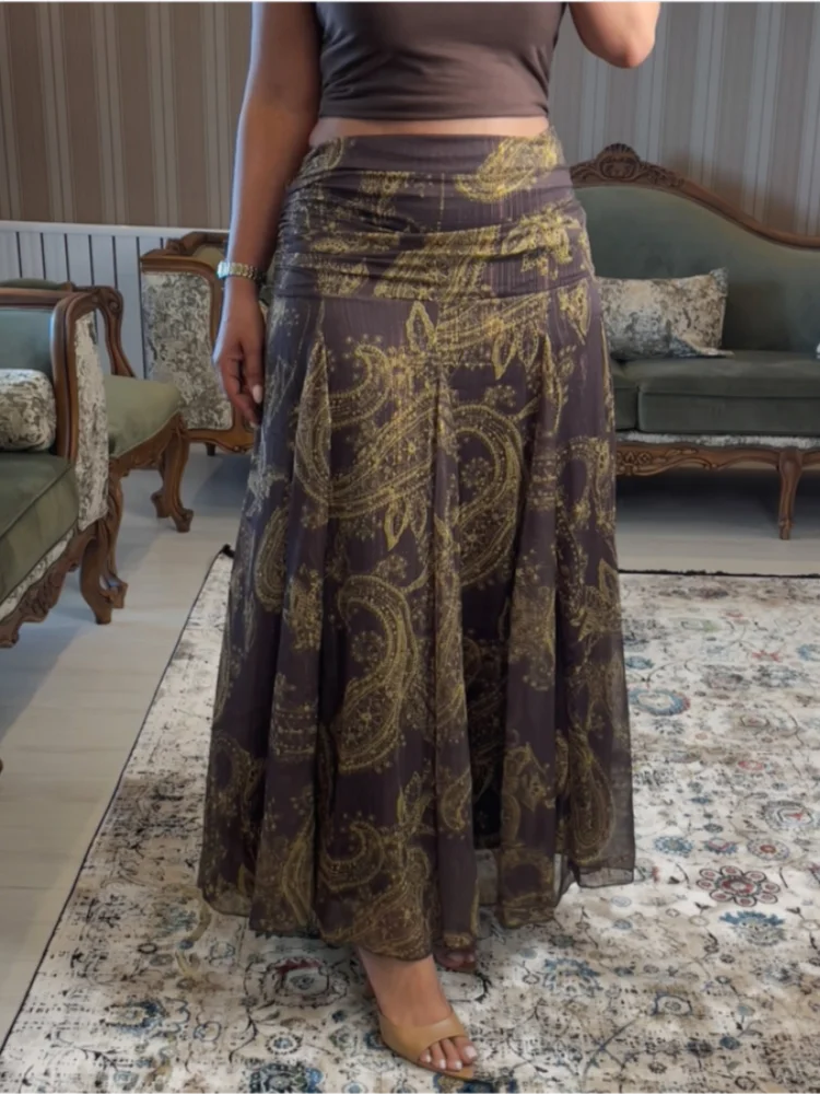 LIZAKOSHT - Fashion Print Long Skirt Women High Waist Ankle-length Loose Swing Skirt 2025 Summer Fashion Female Vacation Streewear Outerwear