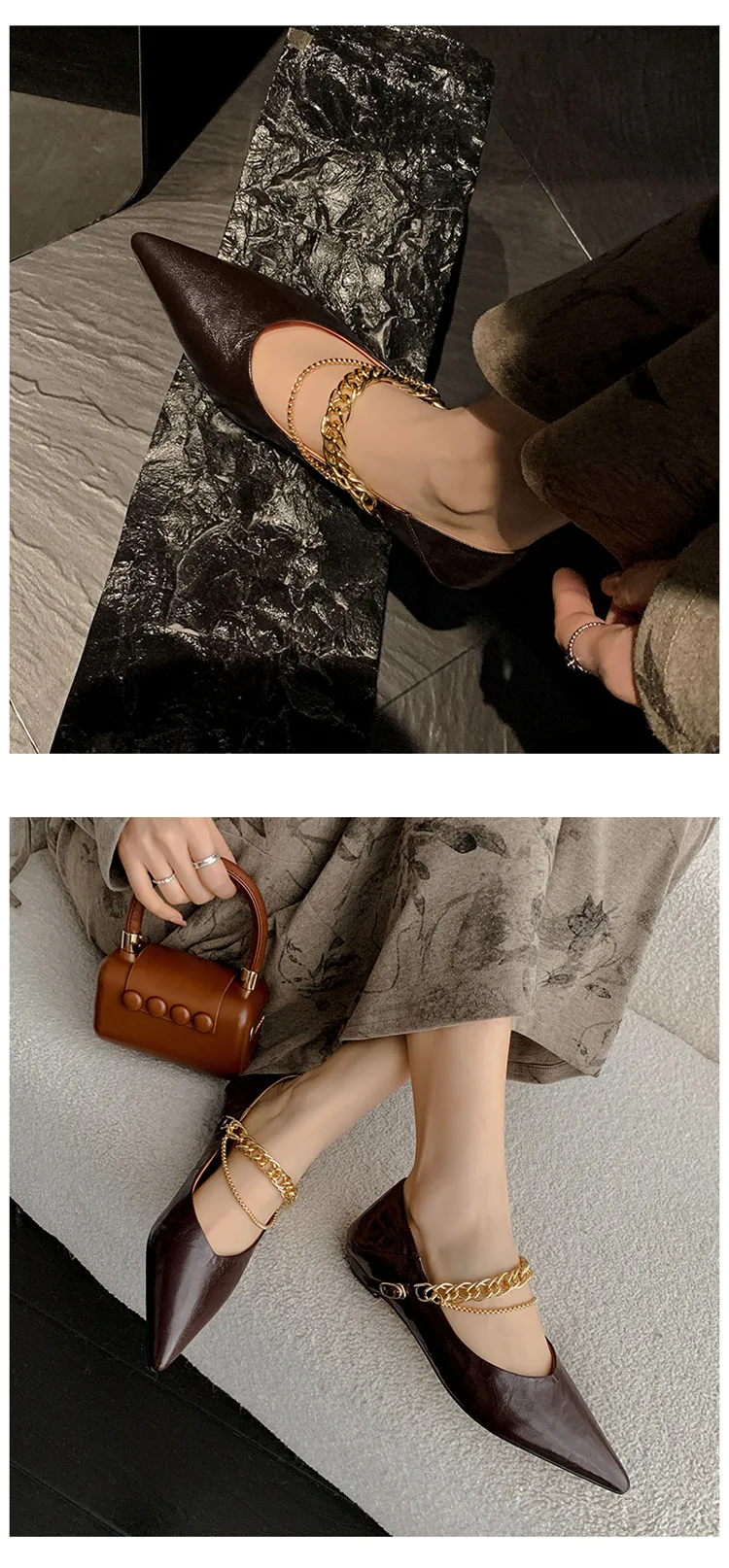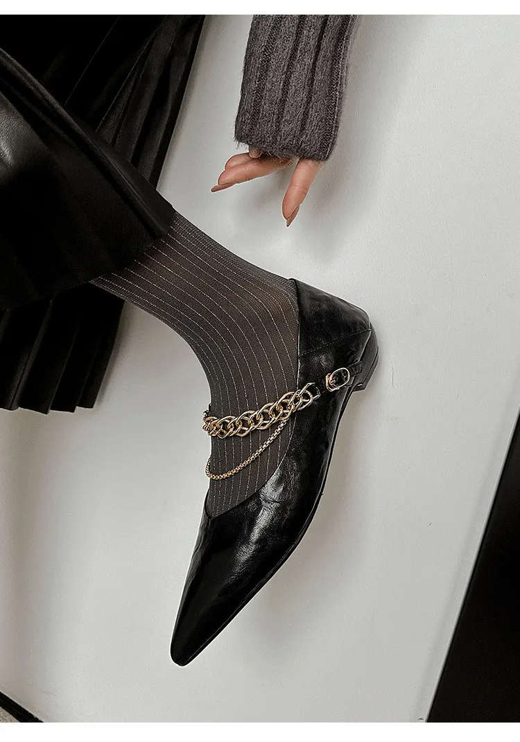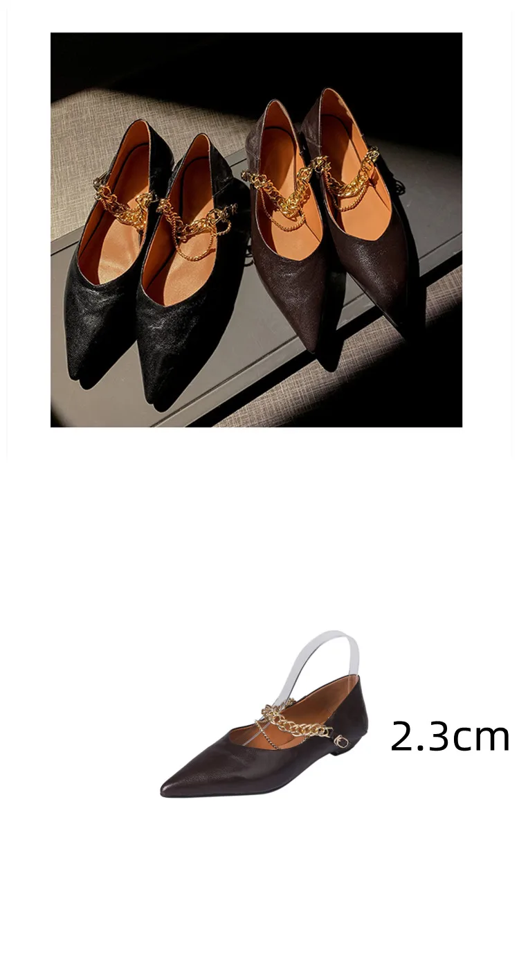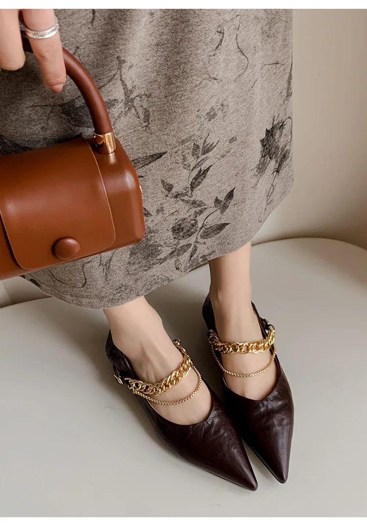 LIZAKOSHT - Fashion Pumps New High Quality Genuine Leather Chain Pointed Shallow Mouth Low Heel Women's Shoes Modern Commuter Shoes