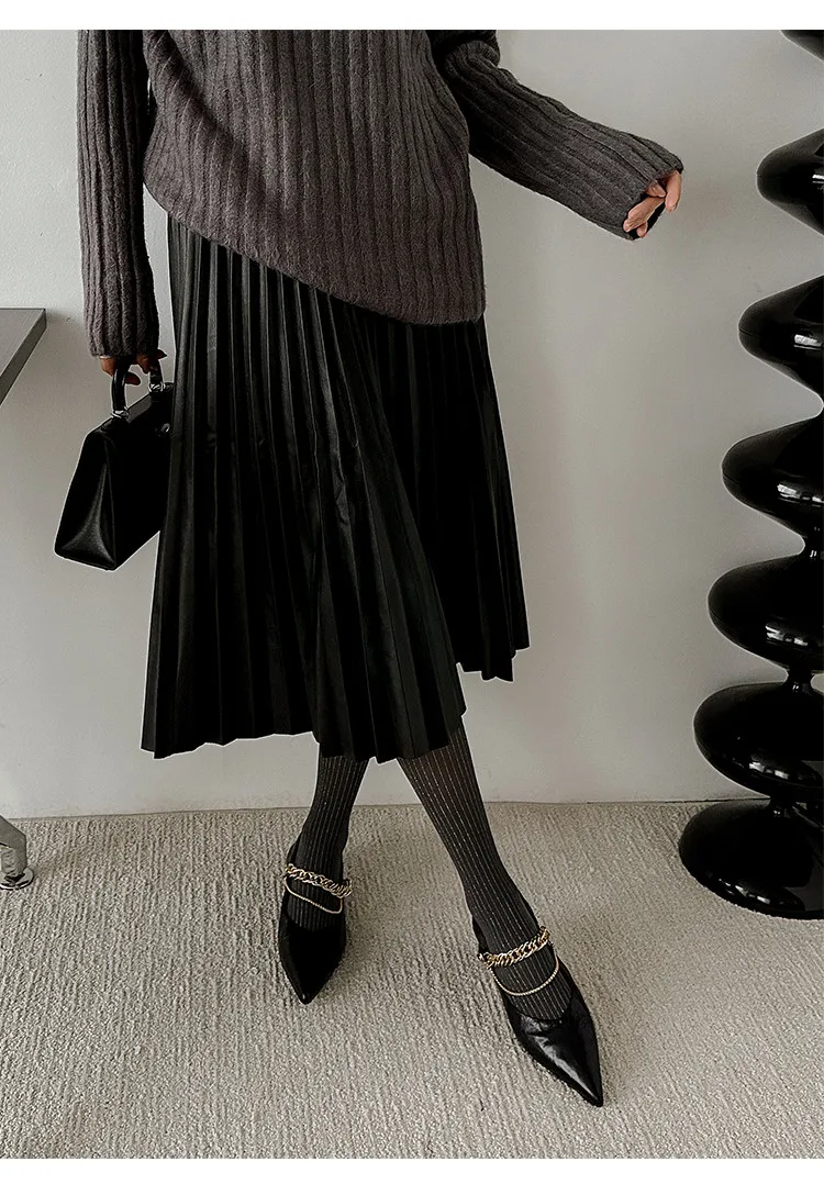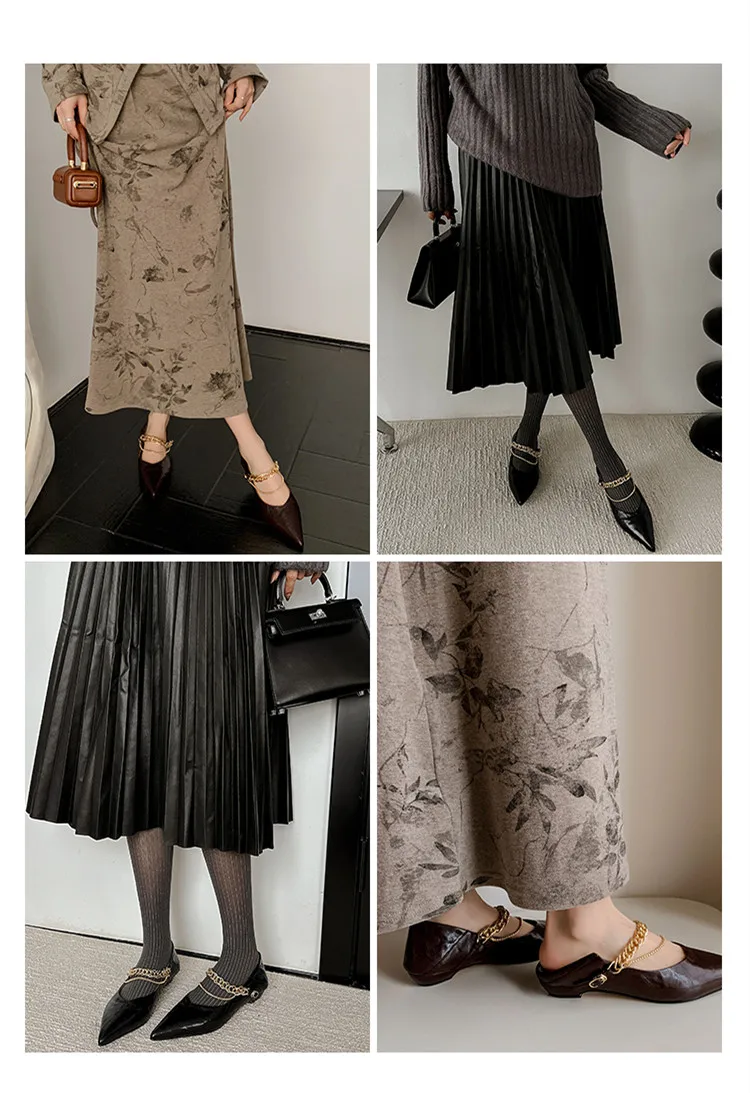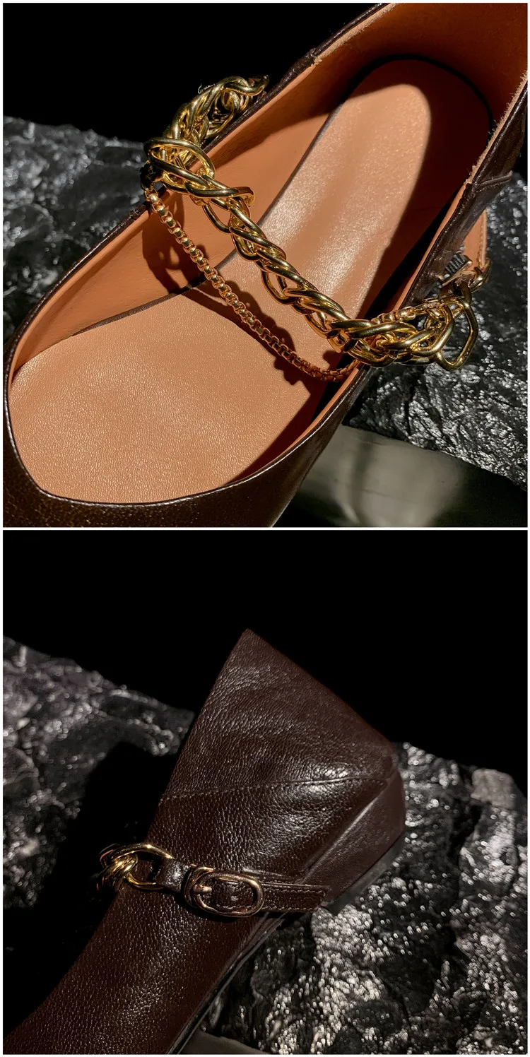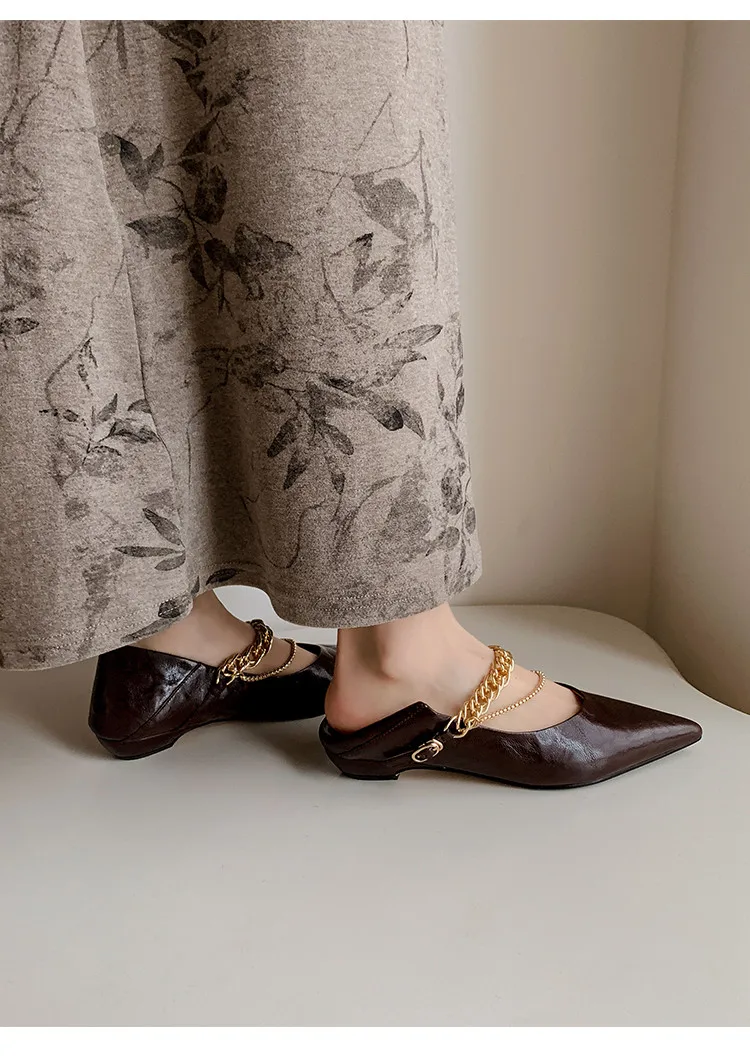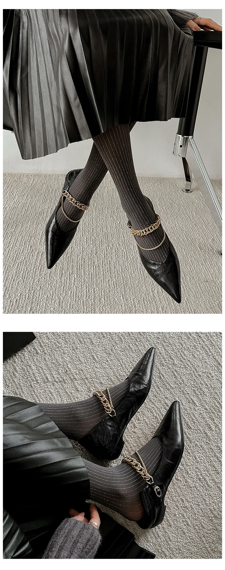 LIZAKOSHT - Fashion Pumps New High Quality Genuine Leather Chain Pointed Shallow Mouth Low Heel Women's Shoes Modern Commuter Shoes