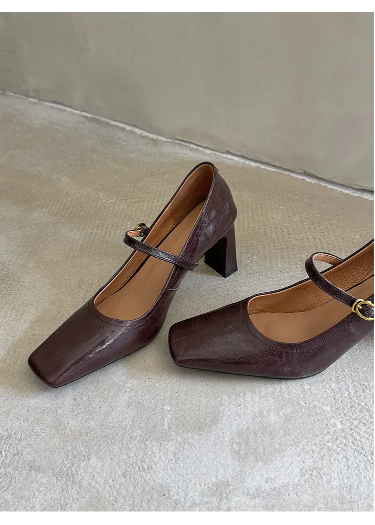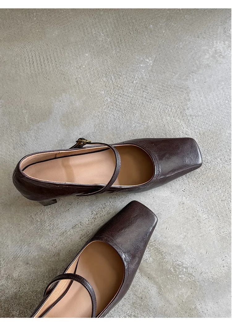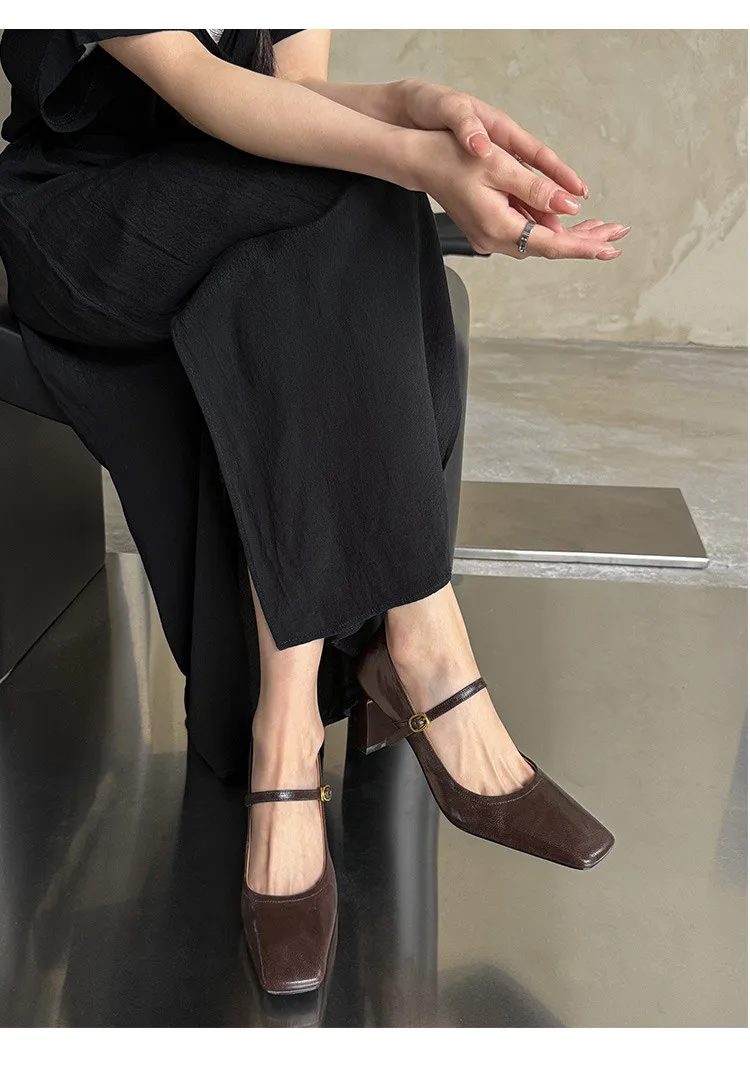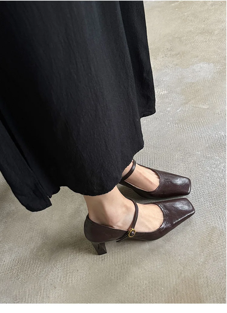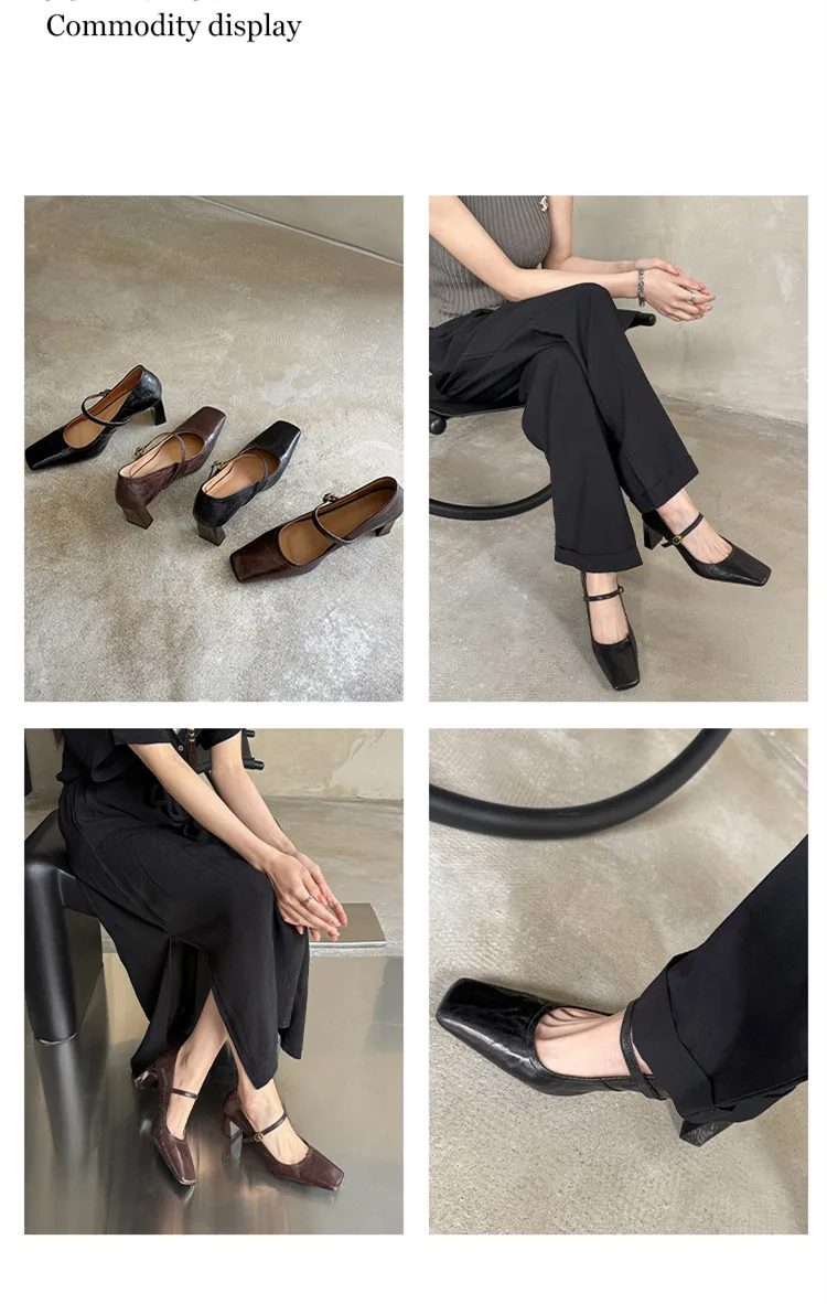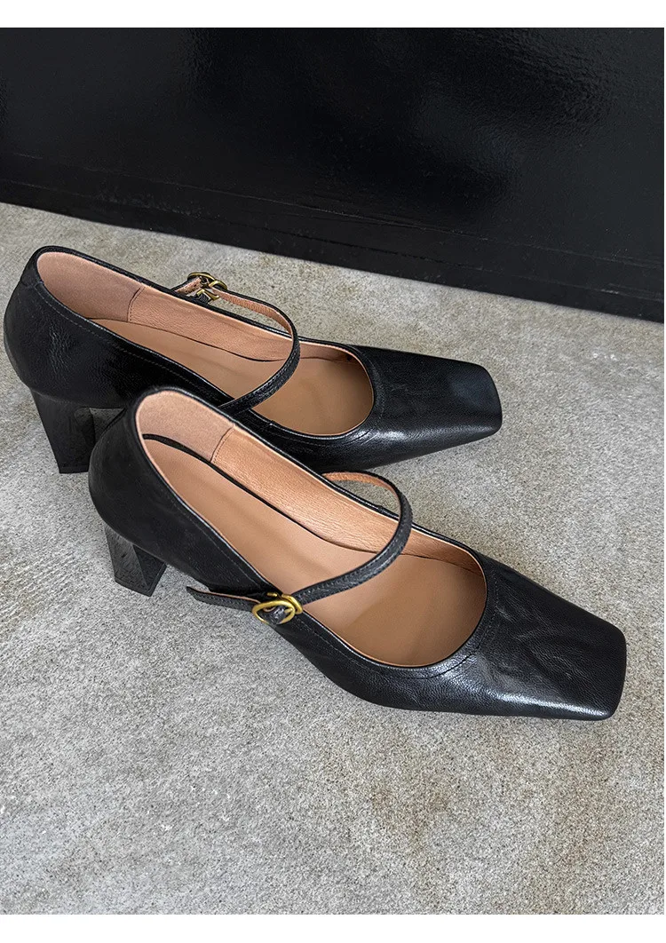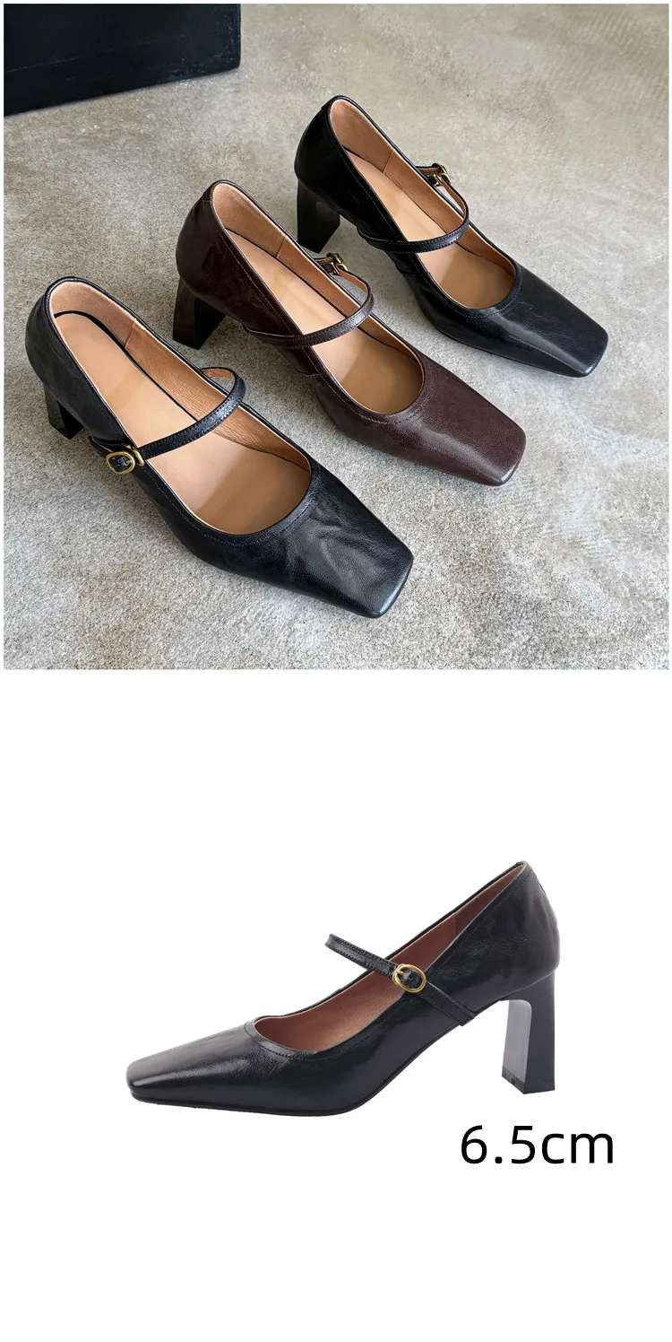 LIZAKOSHT - Fashion Pumps New High Quality True Leather Square Head Shallow Mouth High Heels Mary Jane Shoes Commuter Women's Shoes