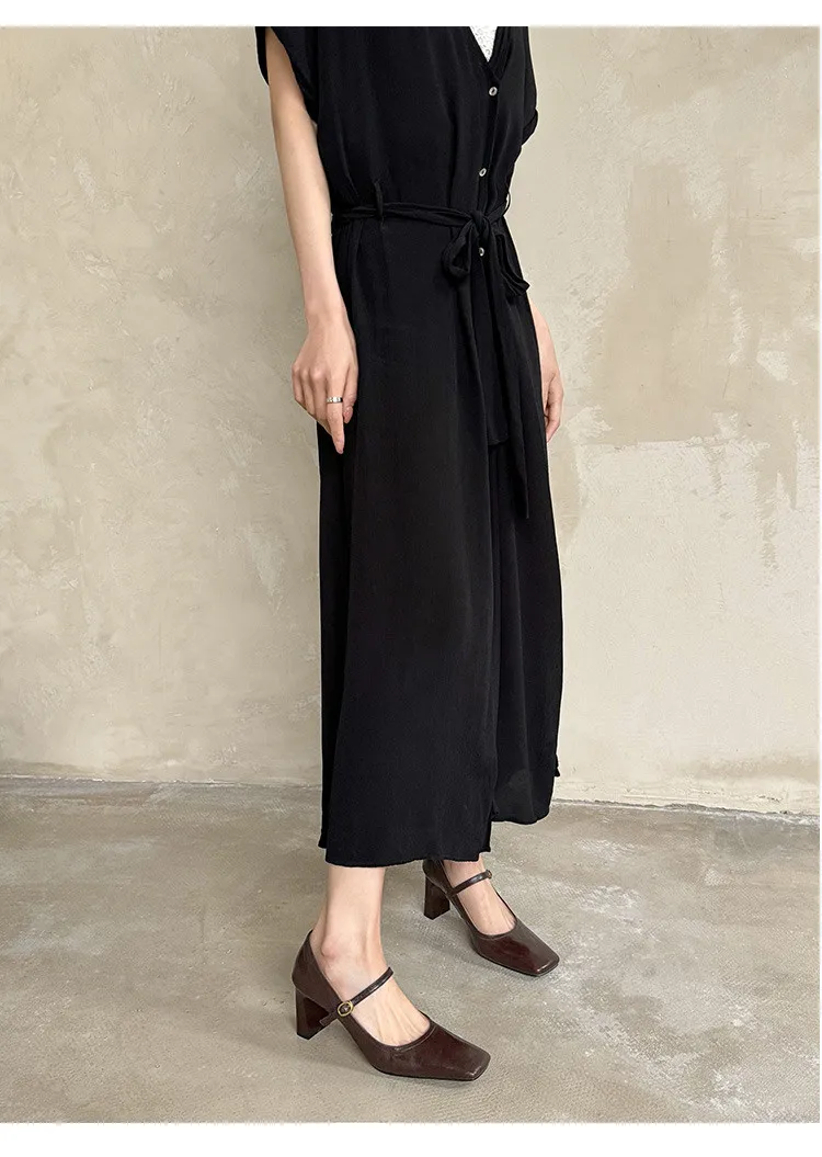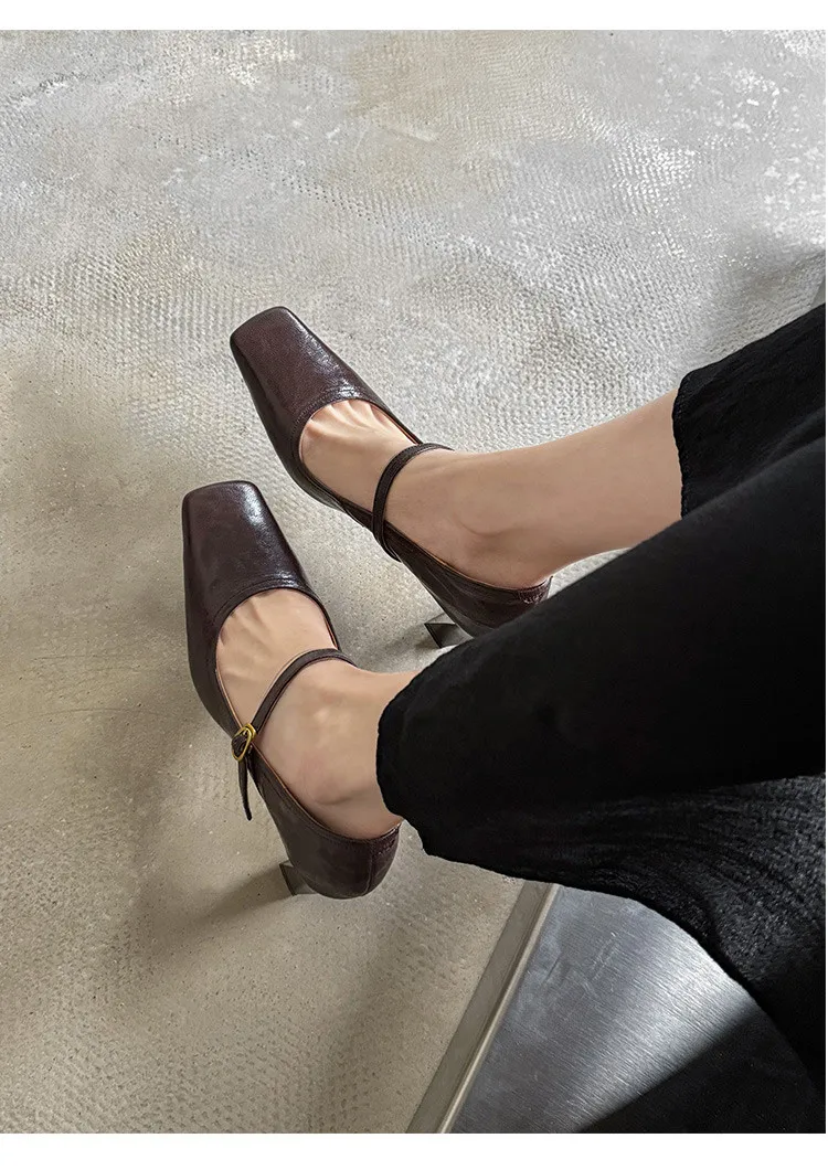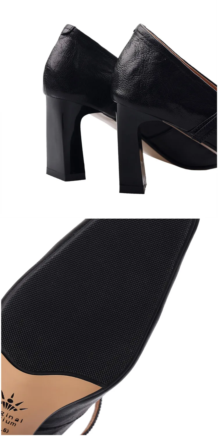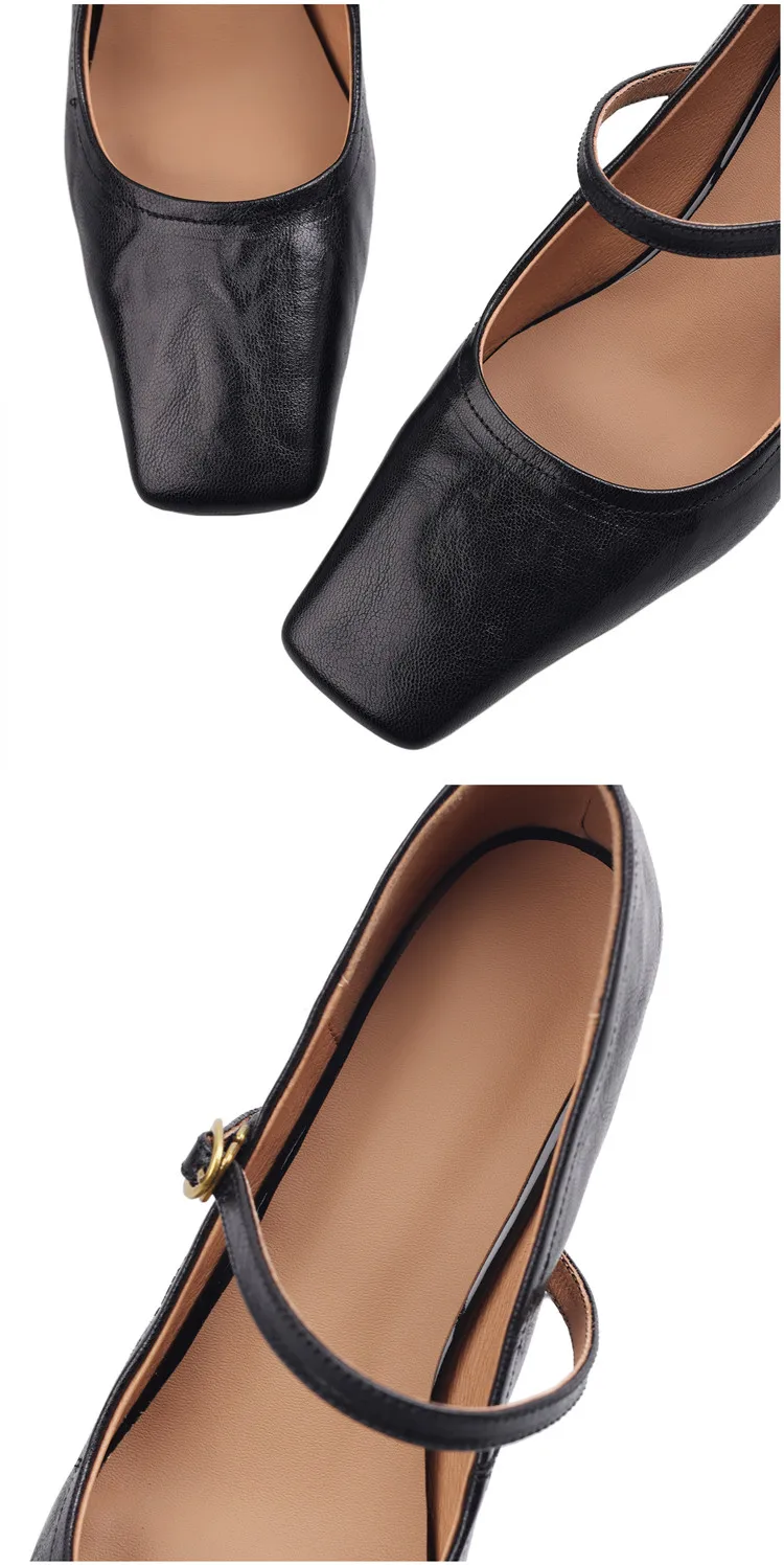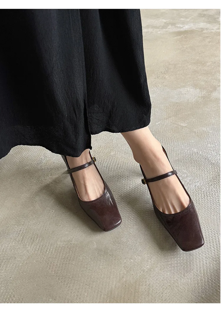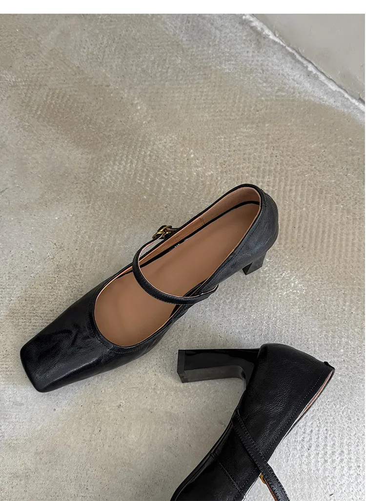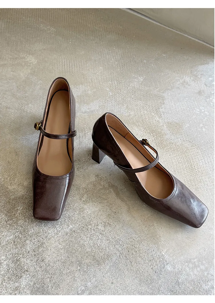 LIZAKOSHT - Fashion Pumps New High Quality True Leather Square Head Shallow Mouth High Heels Mary Jane Shoes Commuter Women's Shoes