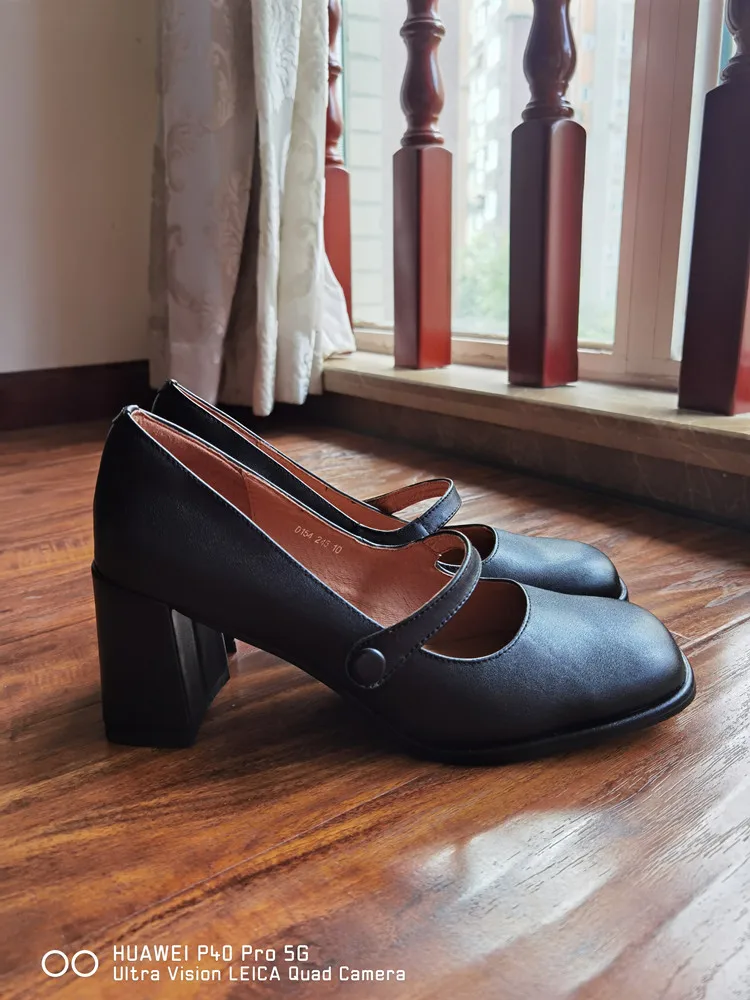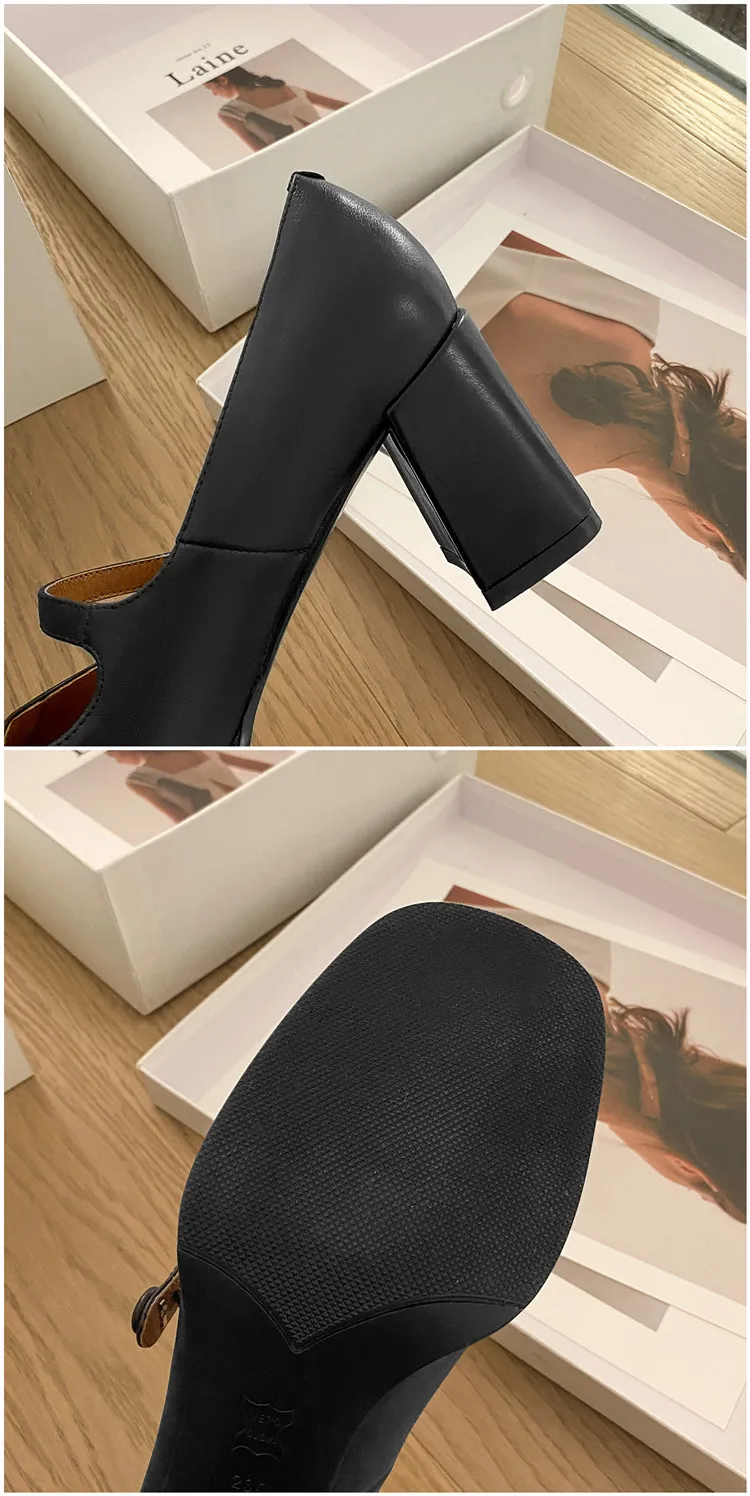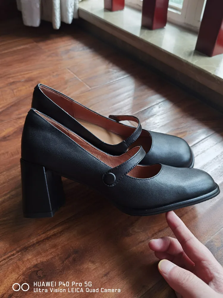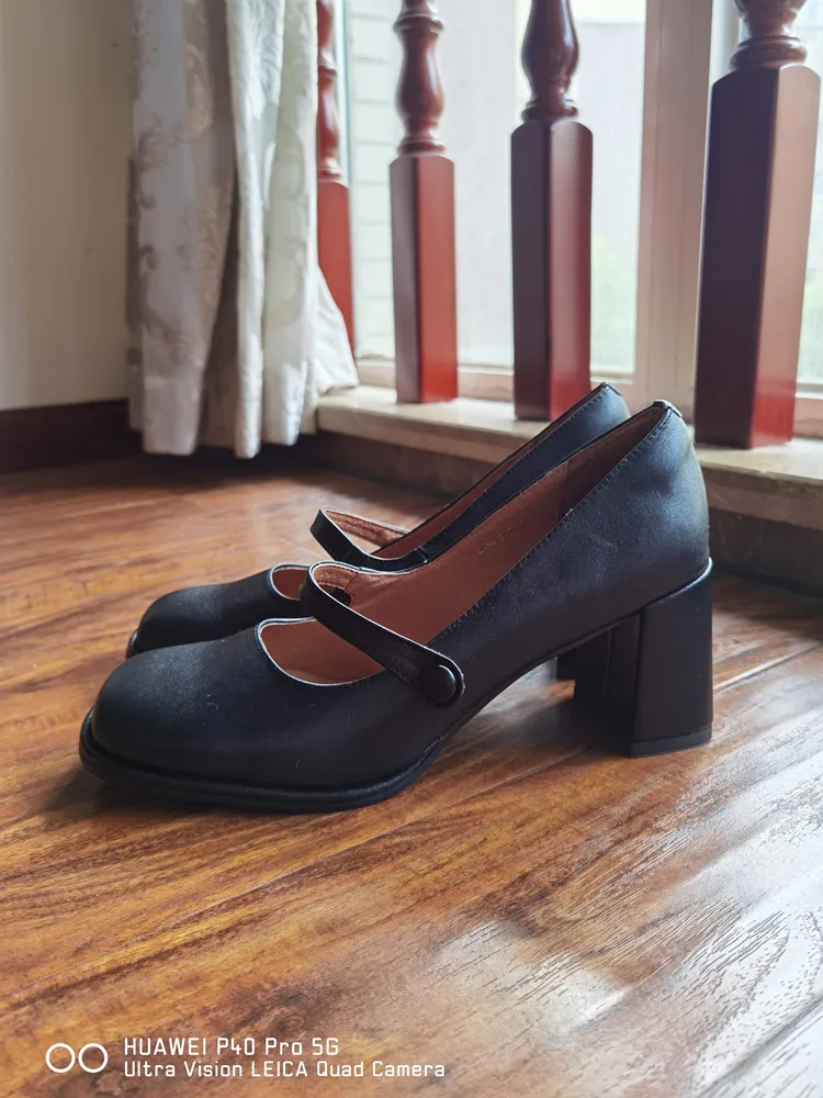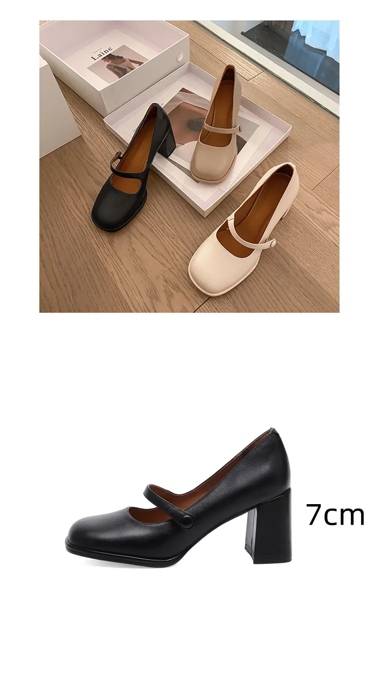 LIZAKOSHT - Fashion Pumps New Women's Heels High Quality Genuine Leather Round Toe Shallow Mouth High Heel Mary Janes Women's Shoes