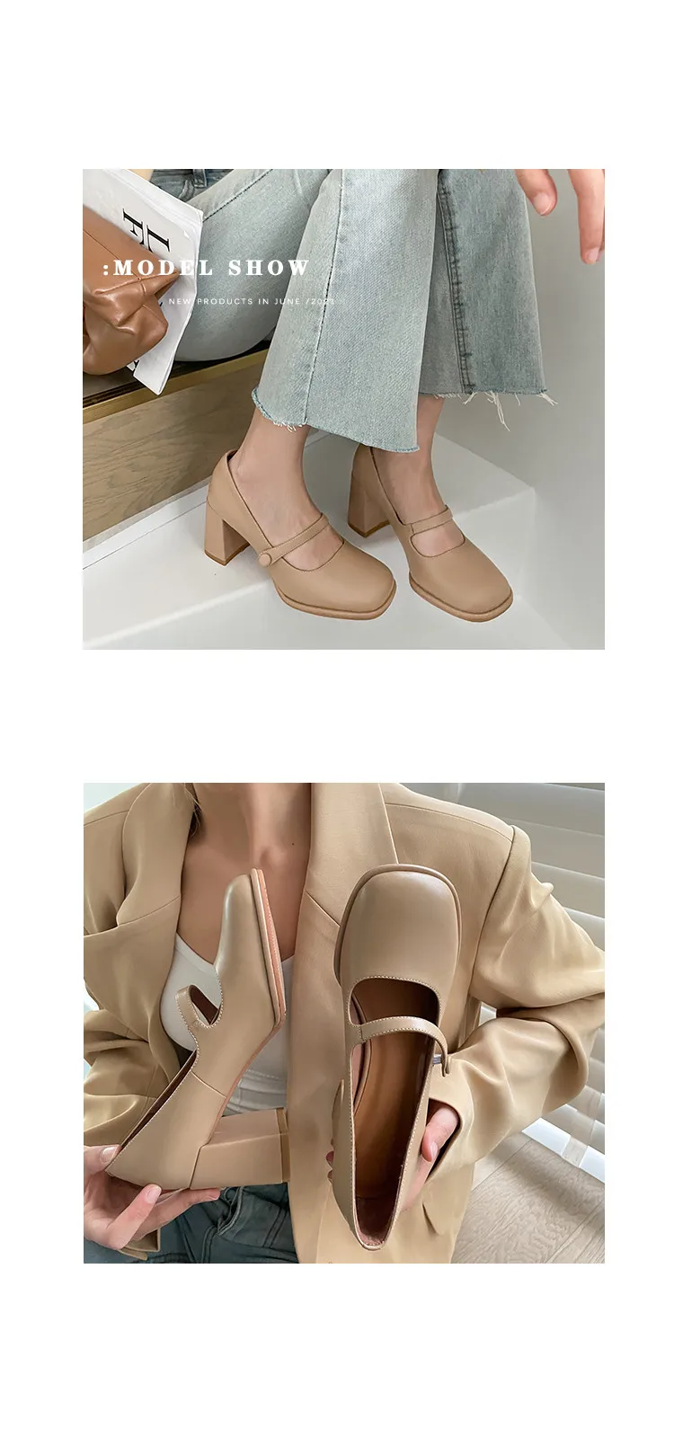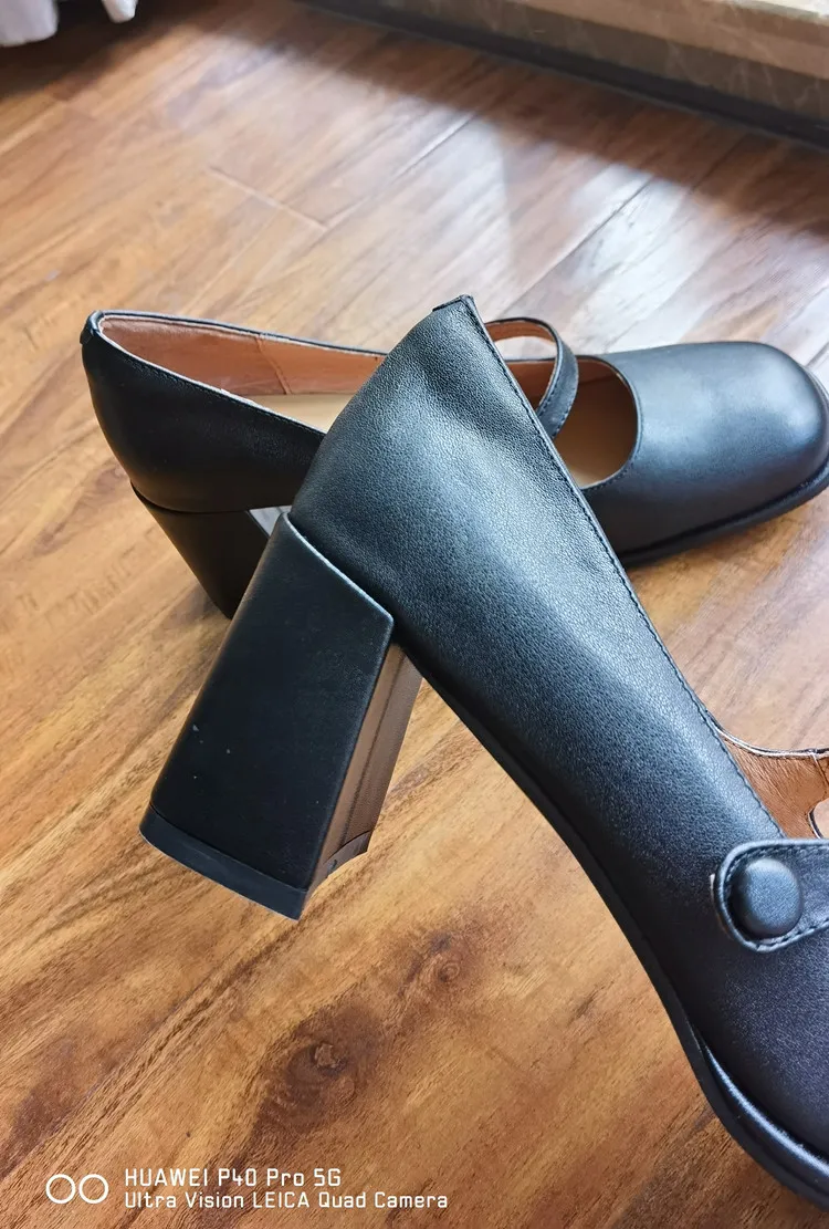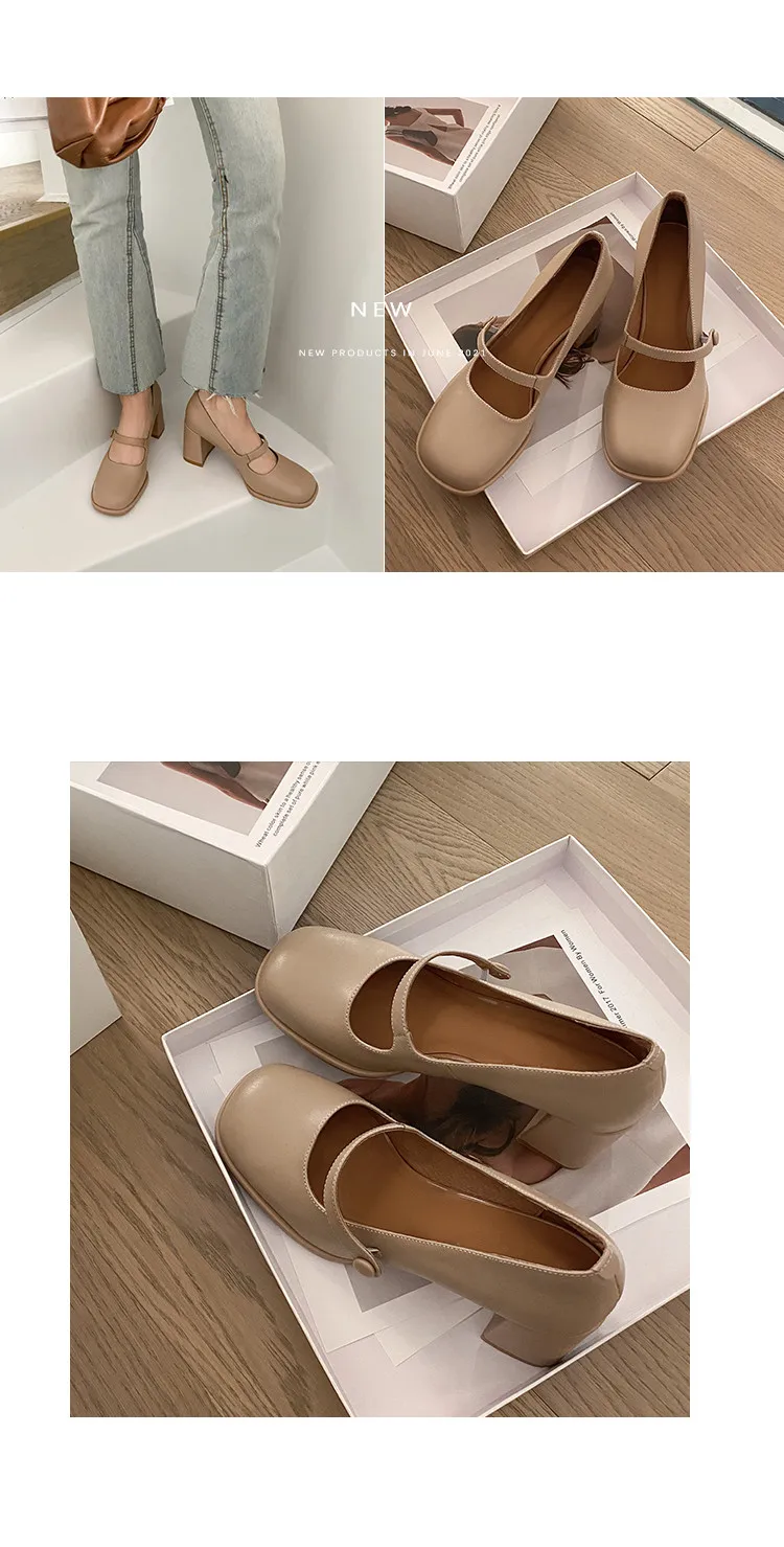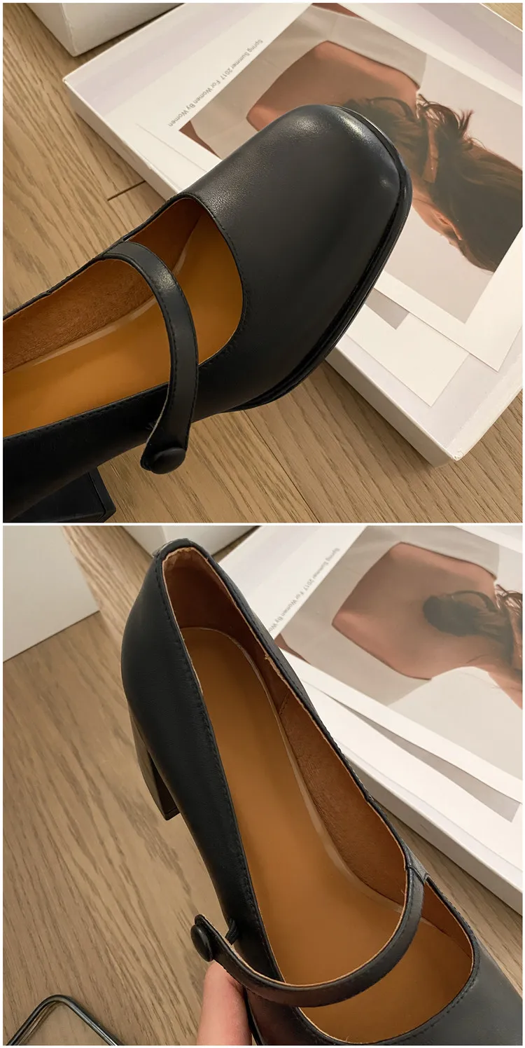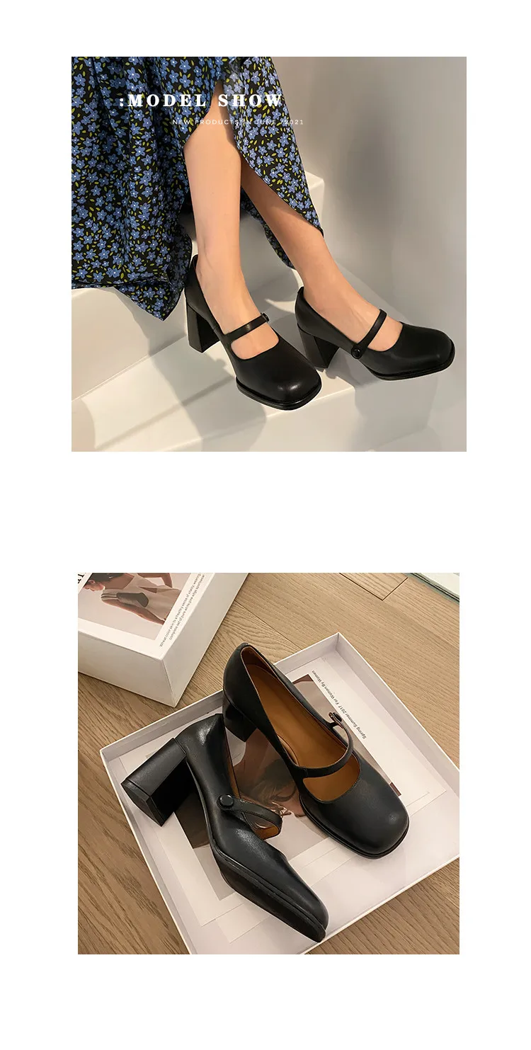 LIZAKOSHT - Fashion Pumps New Women's Heels High Quality Genuine Leather Round Toe Shallow Mouth High Heel Mary Janes Women's Shoes