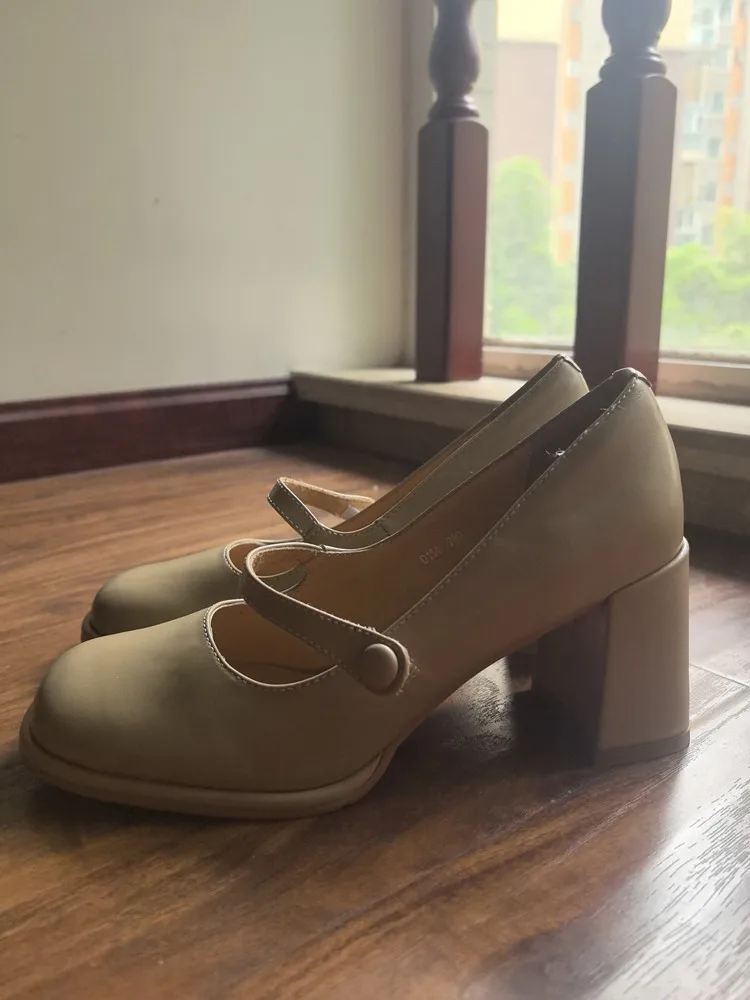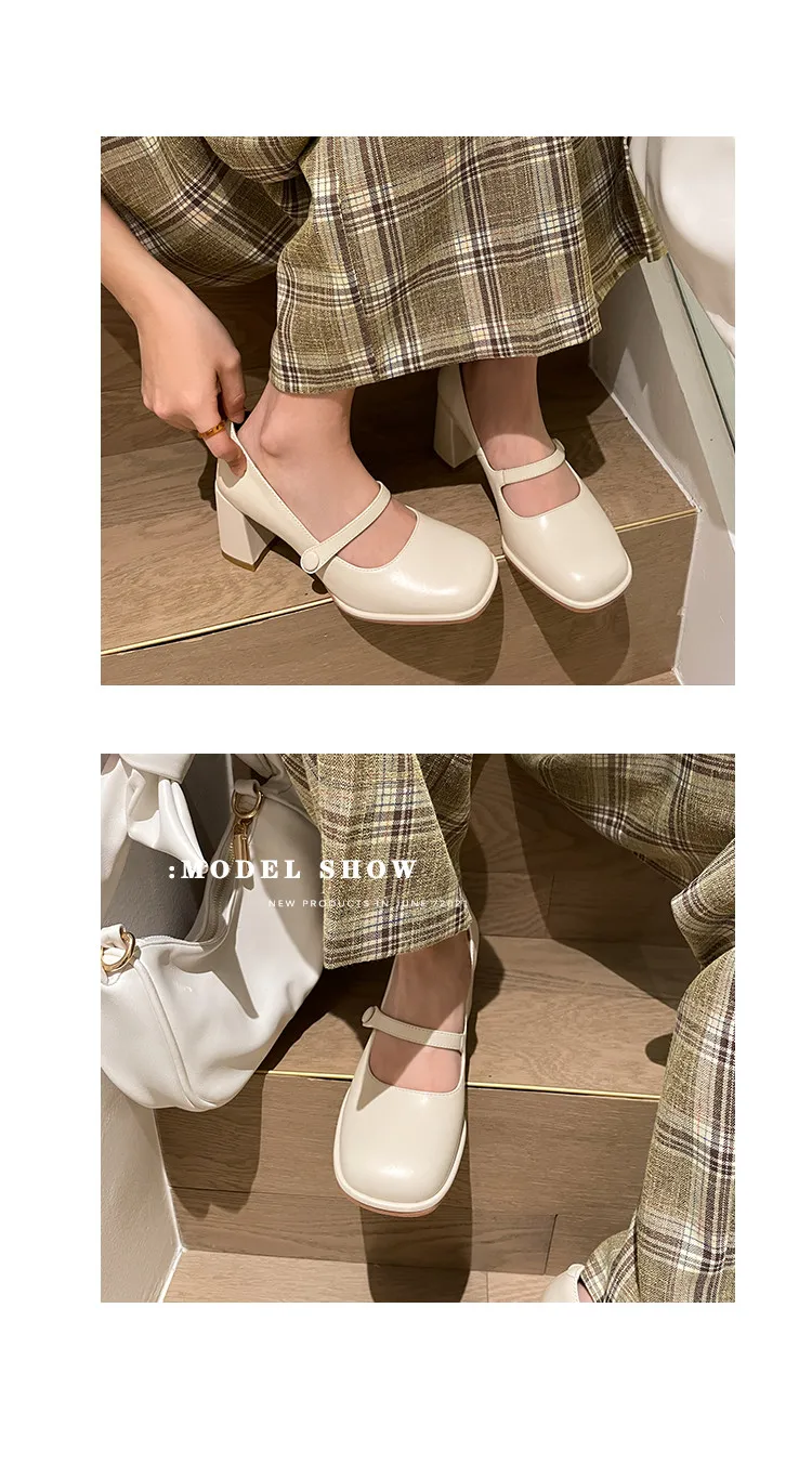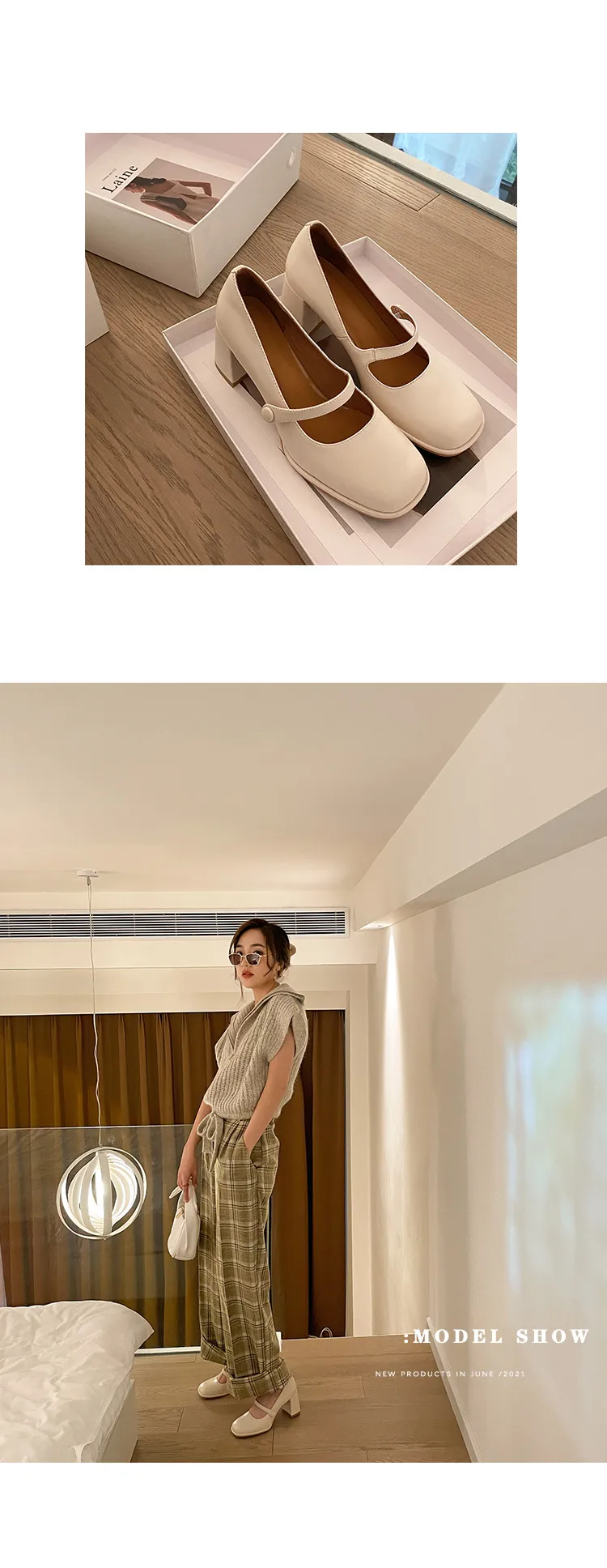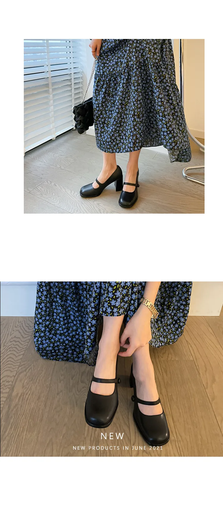 LIZAKOSHT - Fashion Pumps New Women's Heels High Quality Genuine Leather Round Toe Shallow Mouth High Heel Mary Janes Women's Shoes