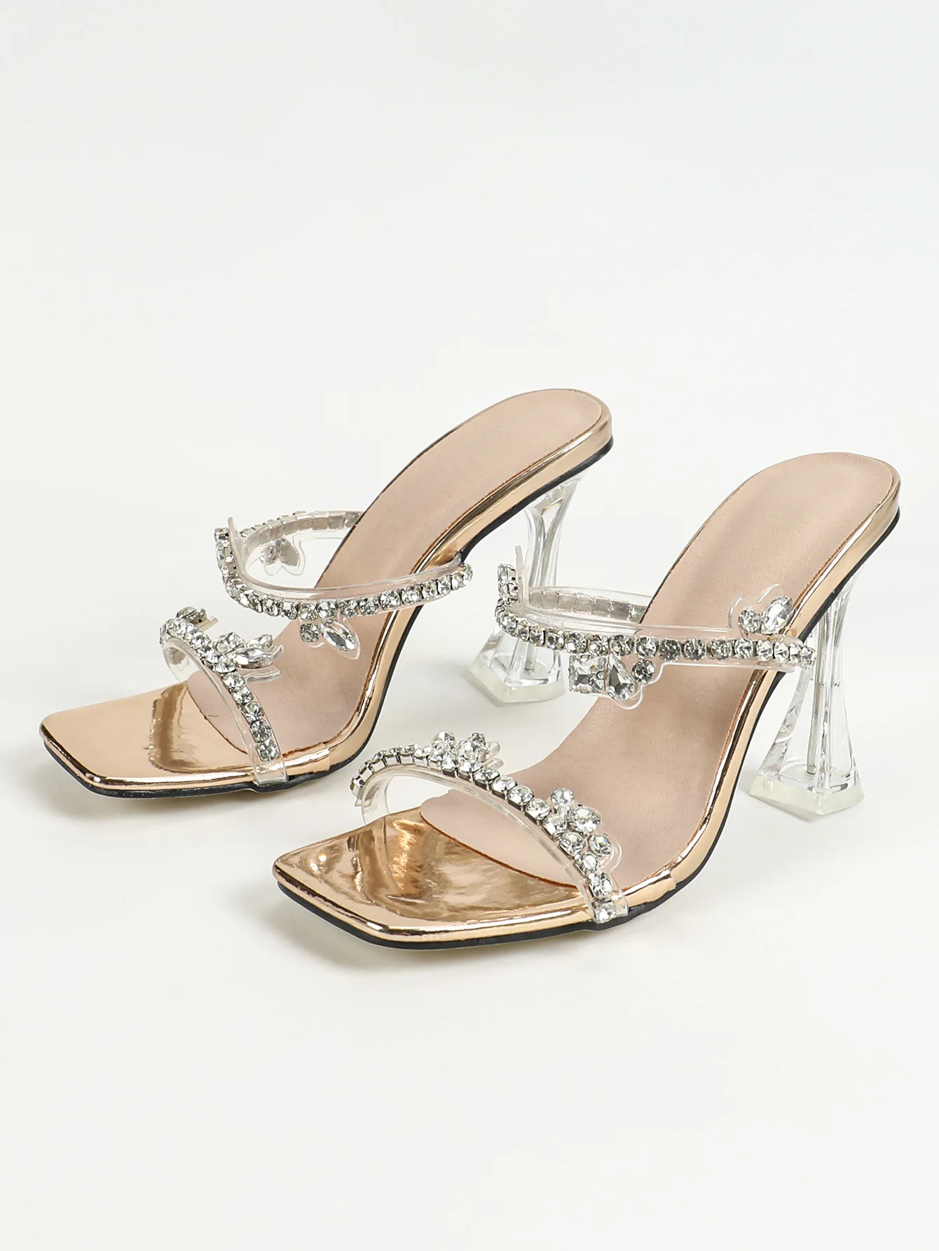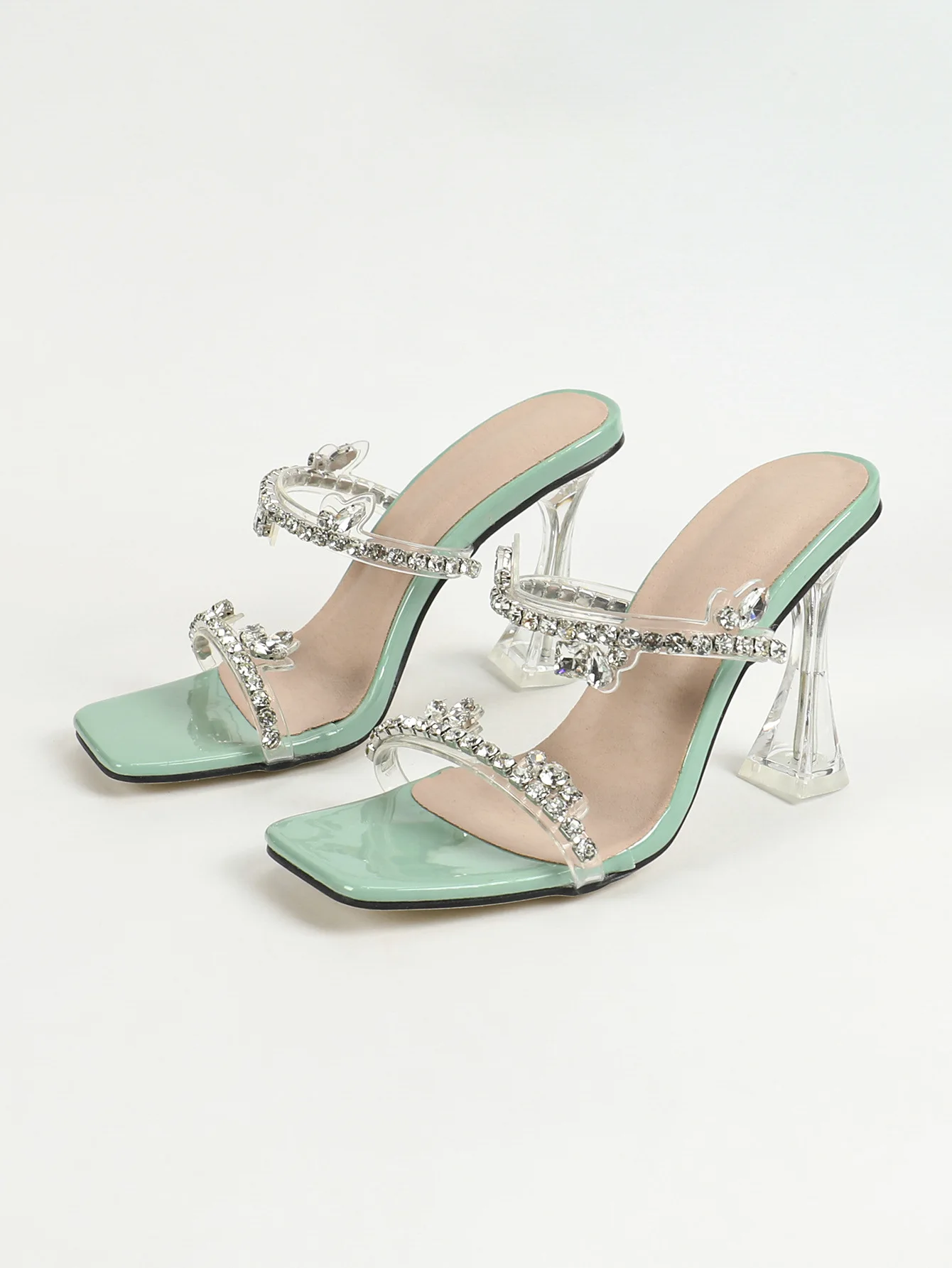 LIZAKOSHT  -  Fashion Rhinestone Slippers For Women's 2025 Summer New Crystal Thick Heel Transparent Sandals Full Diamond Shoulder Bag Set