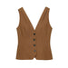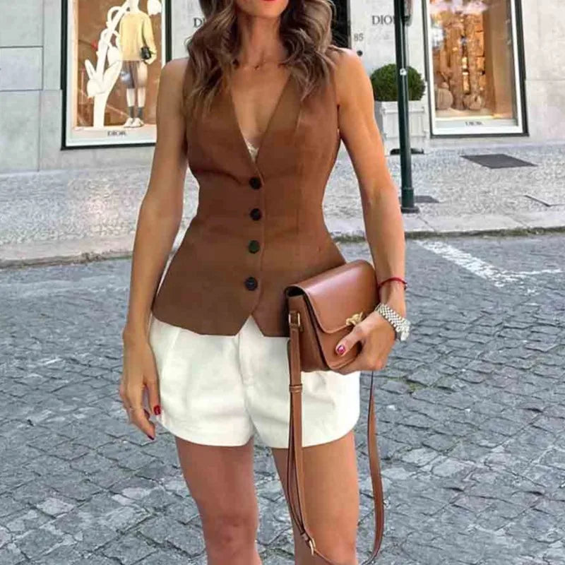 LIZAKOSHT  -  Fashion Slim Vest For Women Summer 2025 New Brown Single Breasted V-neck Sleeveless Waistcoat Sleeveless Office Casual Solid Top