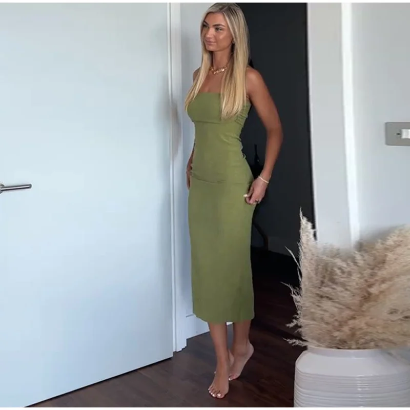 LIZAKOSHT  -  Fashion Slip Long Dress For Women Strapless Sleeveless Waist Cinching A-line Robe 2025 Summer Elegant Lady Evening Party Dresses
