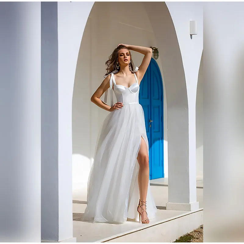 Lizakosht Fashion Solid Mesh Patchwork Women's Sling Dress Summer Female Backless Bandage Split Dresses Female White Wedding Party Dress