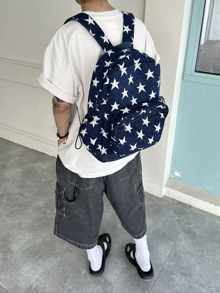 LIZAKOSHT - Fashion Stars Striped Large Capacity Backpack Casual Schoolbag Handbag Student Leisure Travel Backpack
