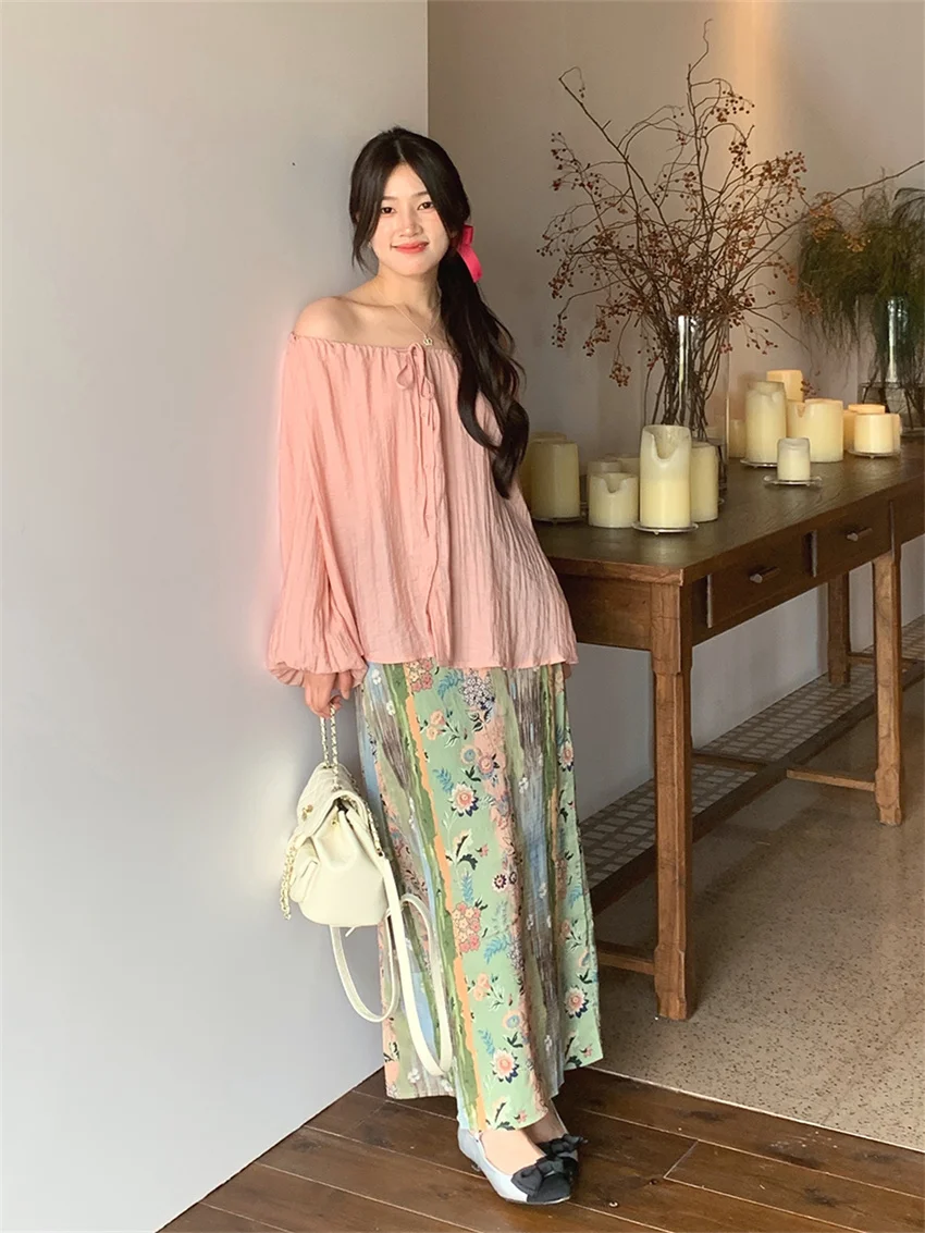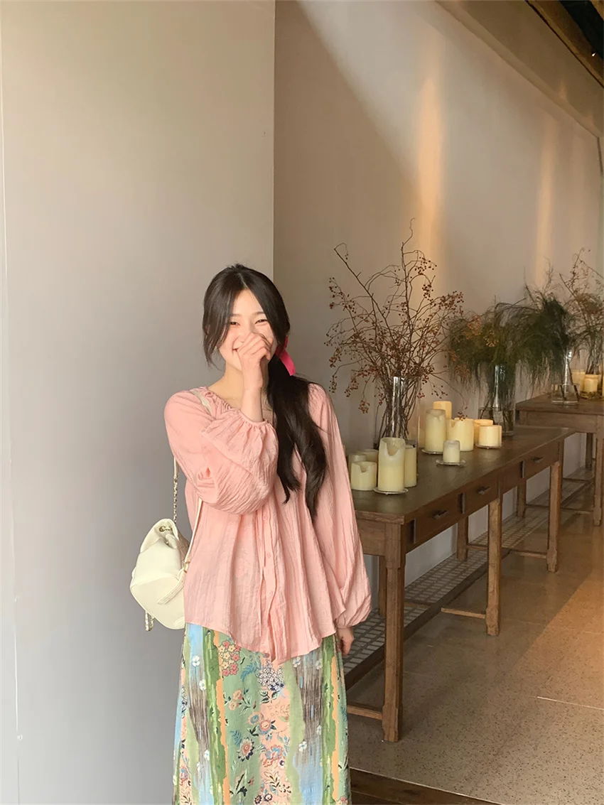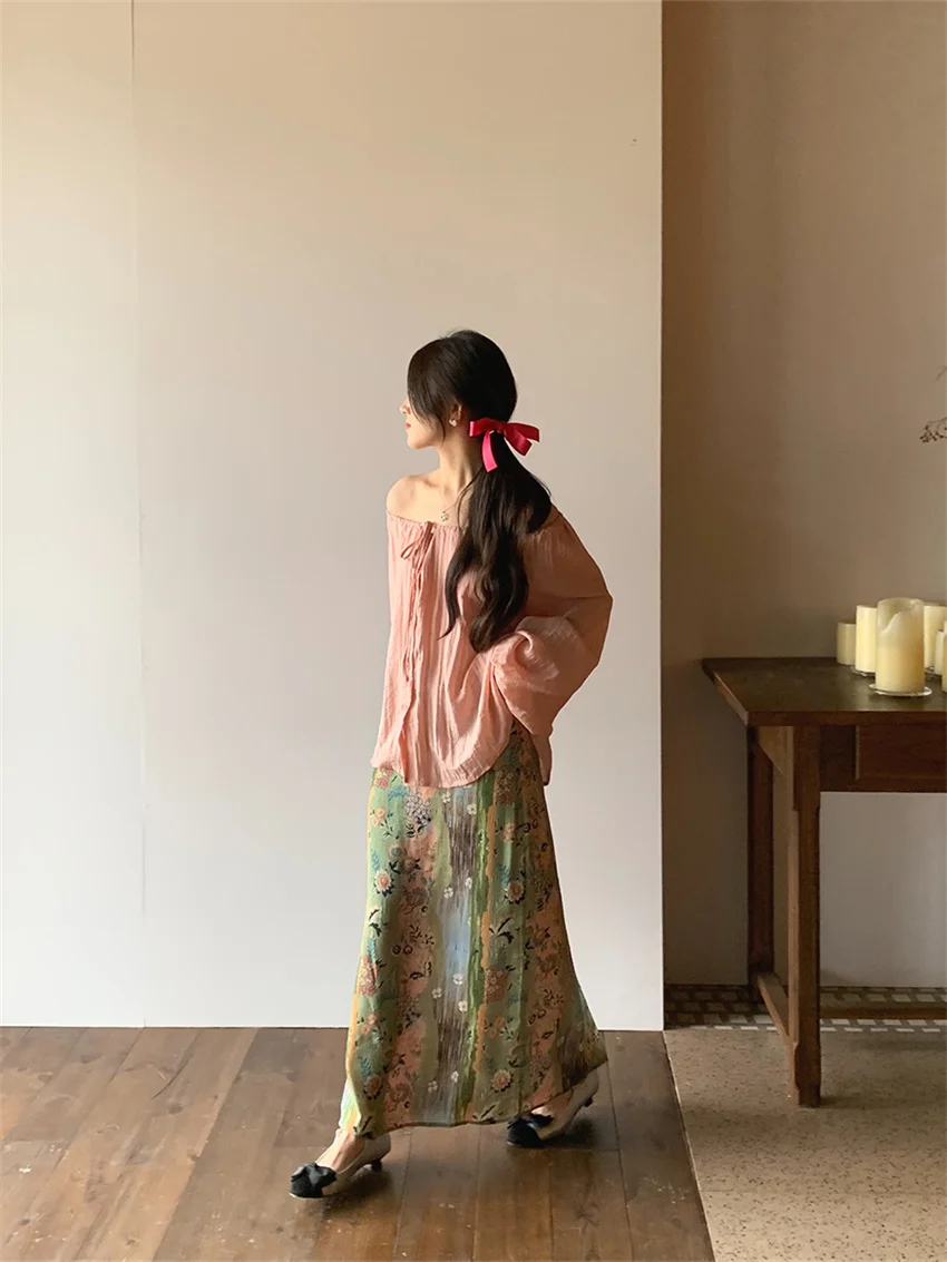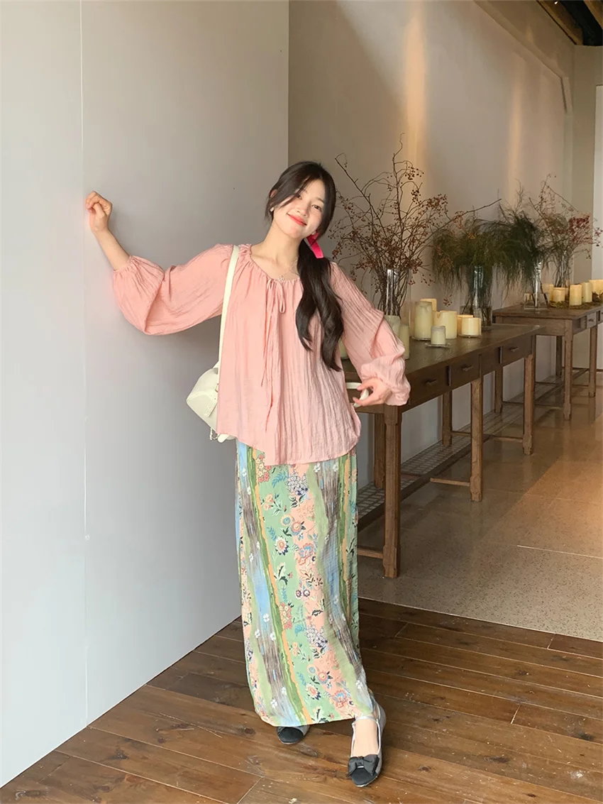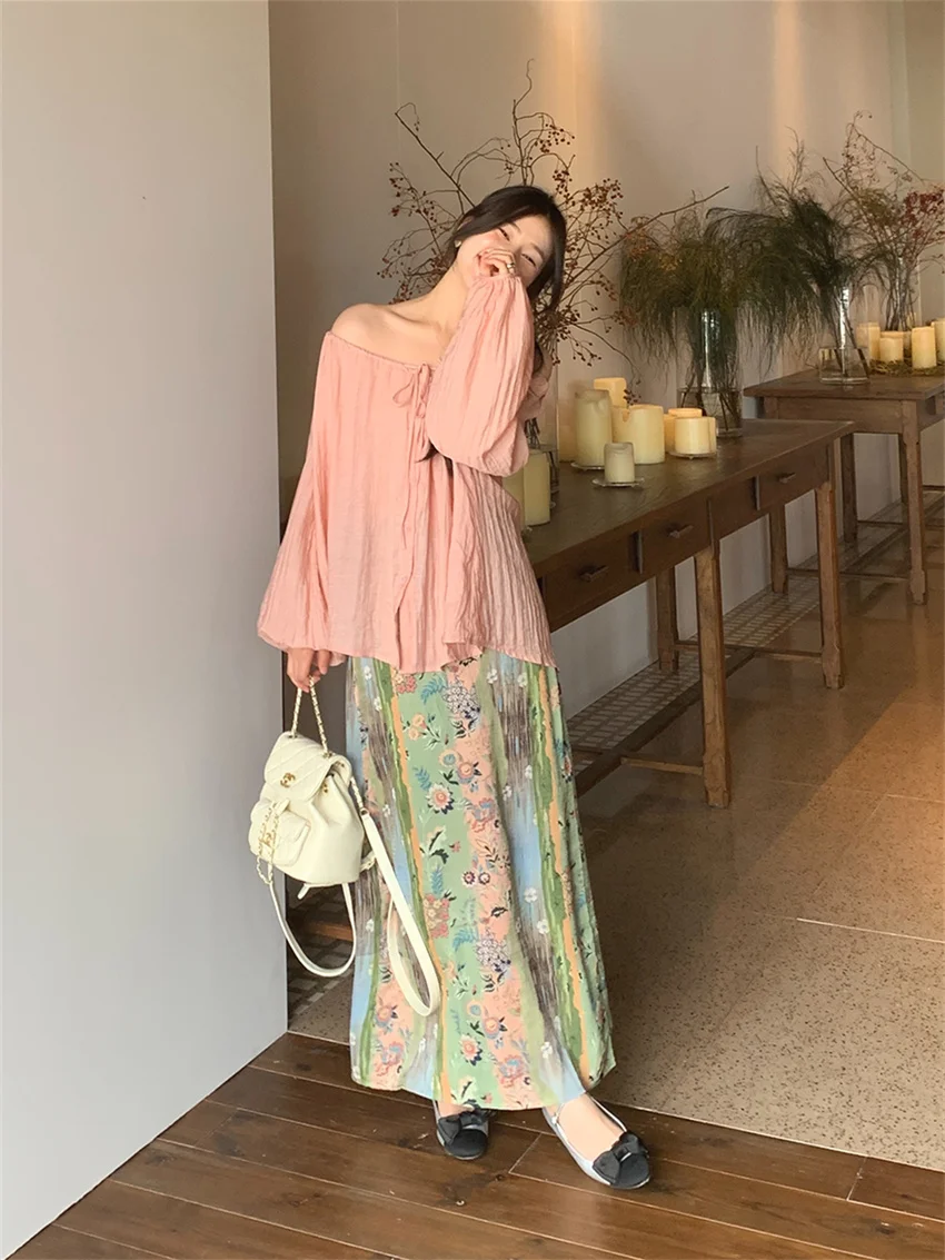 LIZAKOSHT - Fashion Sweet Vacation Blouses Women Sunscreen Loose 2024 Printed Maxi Skirts Florals Summer Chic Casual Office Lady